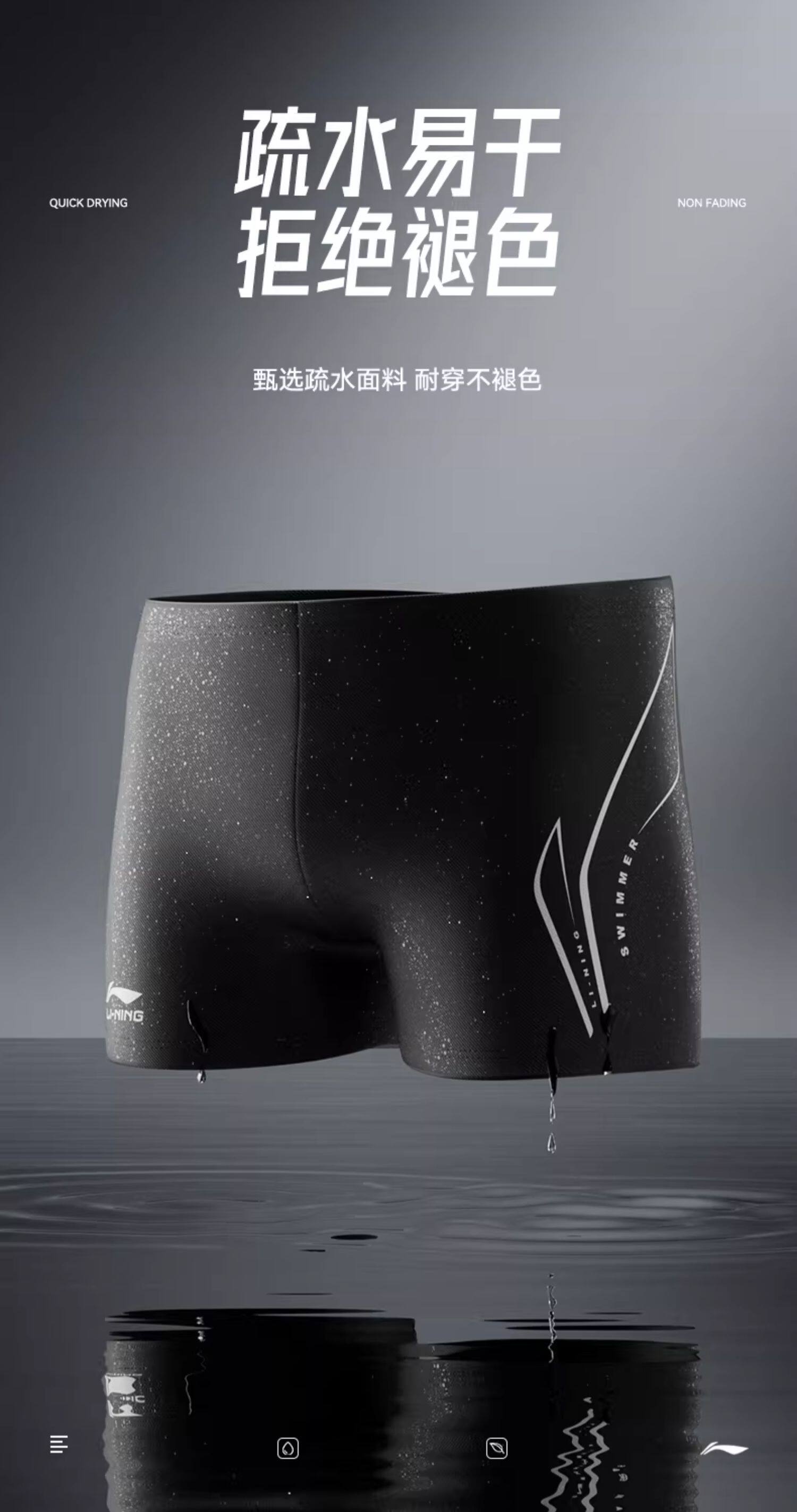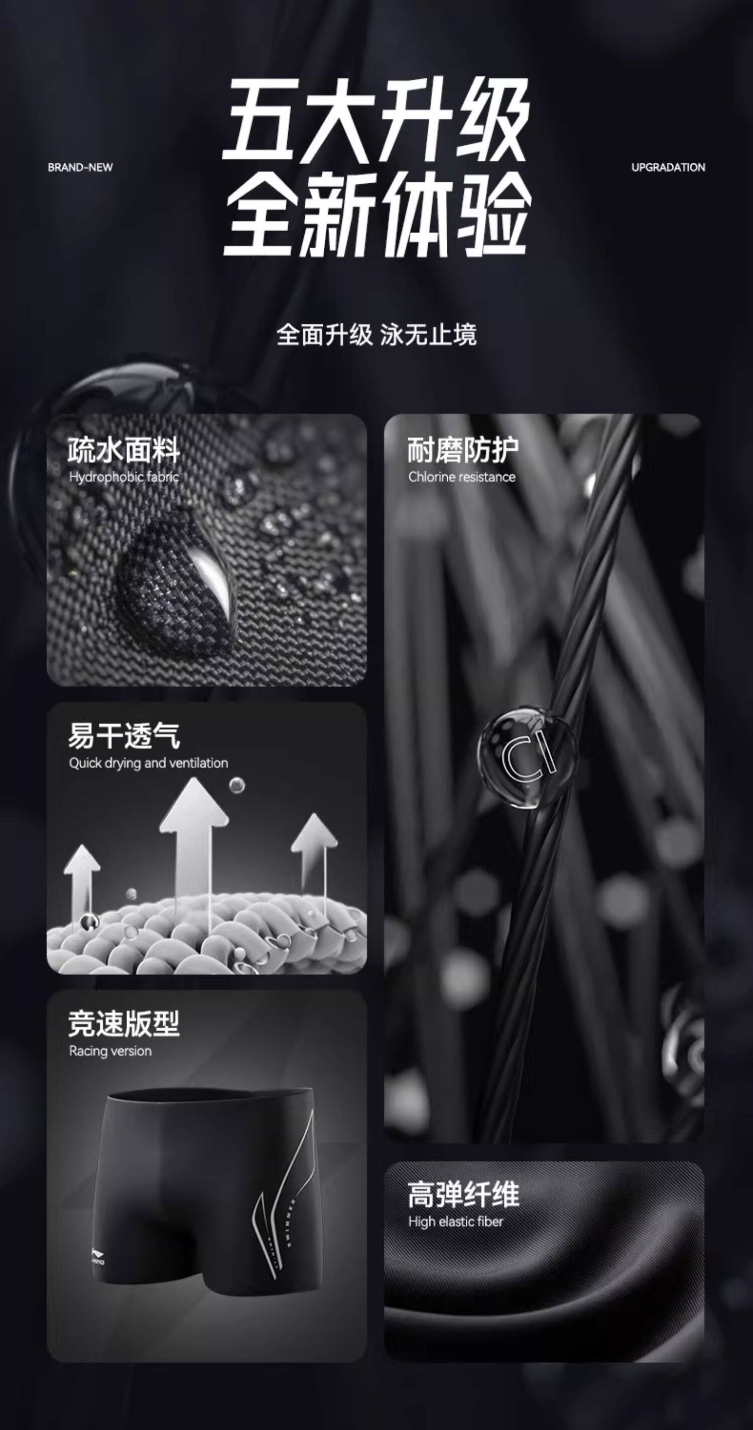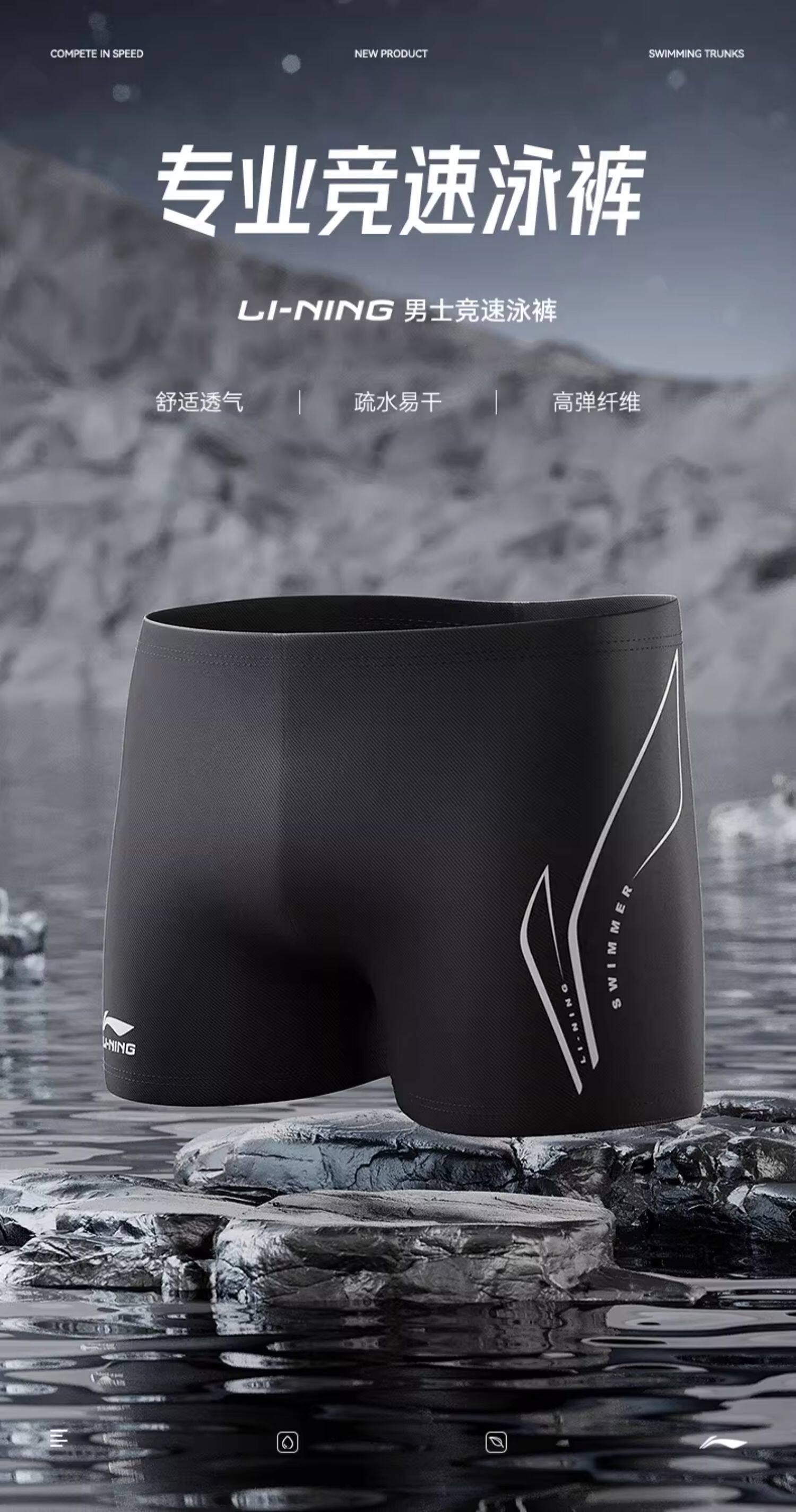 Li-Ning Men's Swim Trunks 2025 New Model Anti-Embarrassment Youth Adult Swim Cap Swim Goggles Five-Point Length Hot Spring Professional
