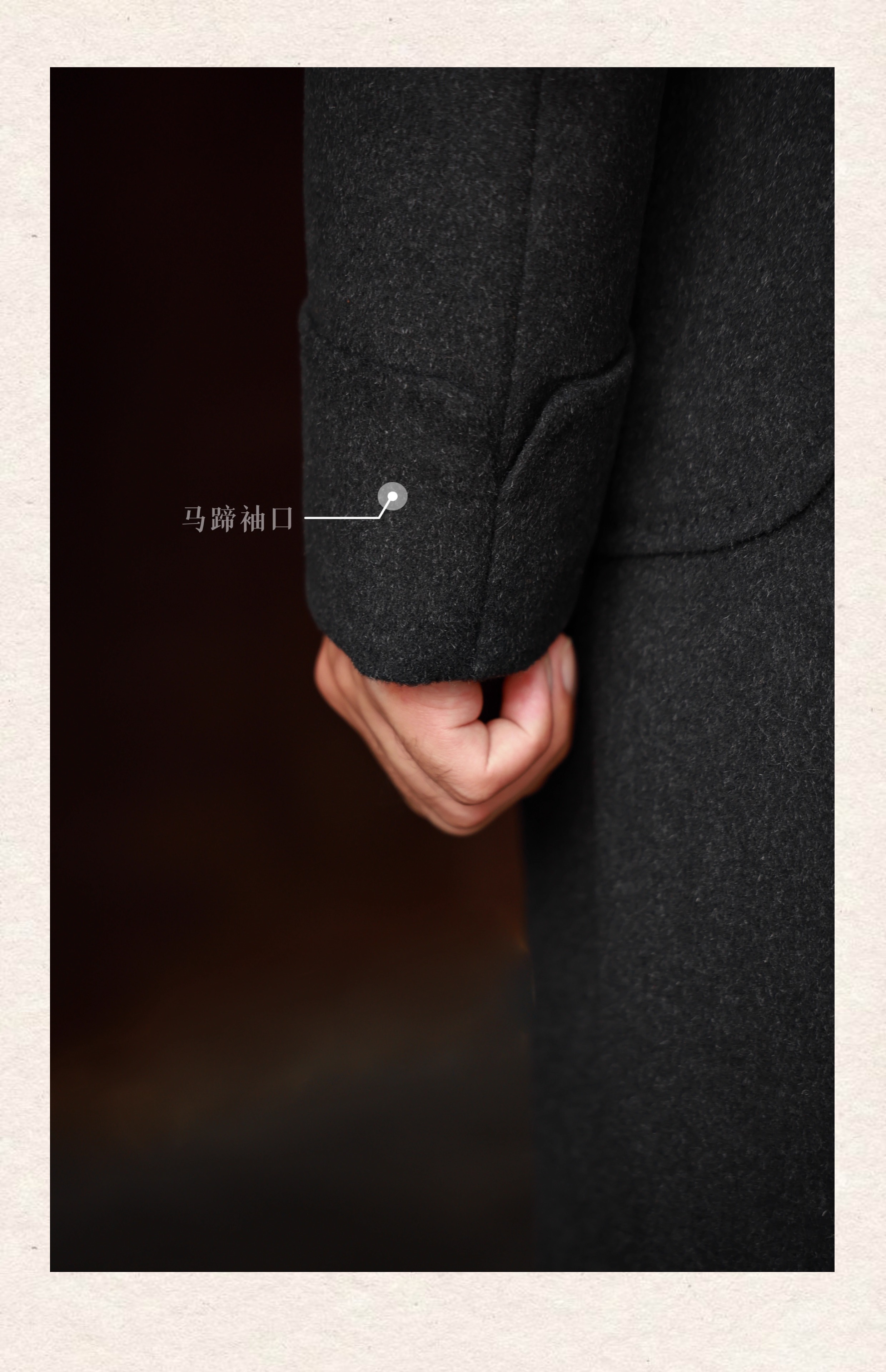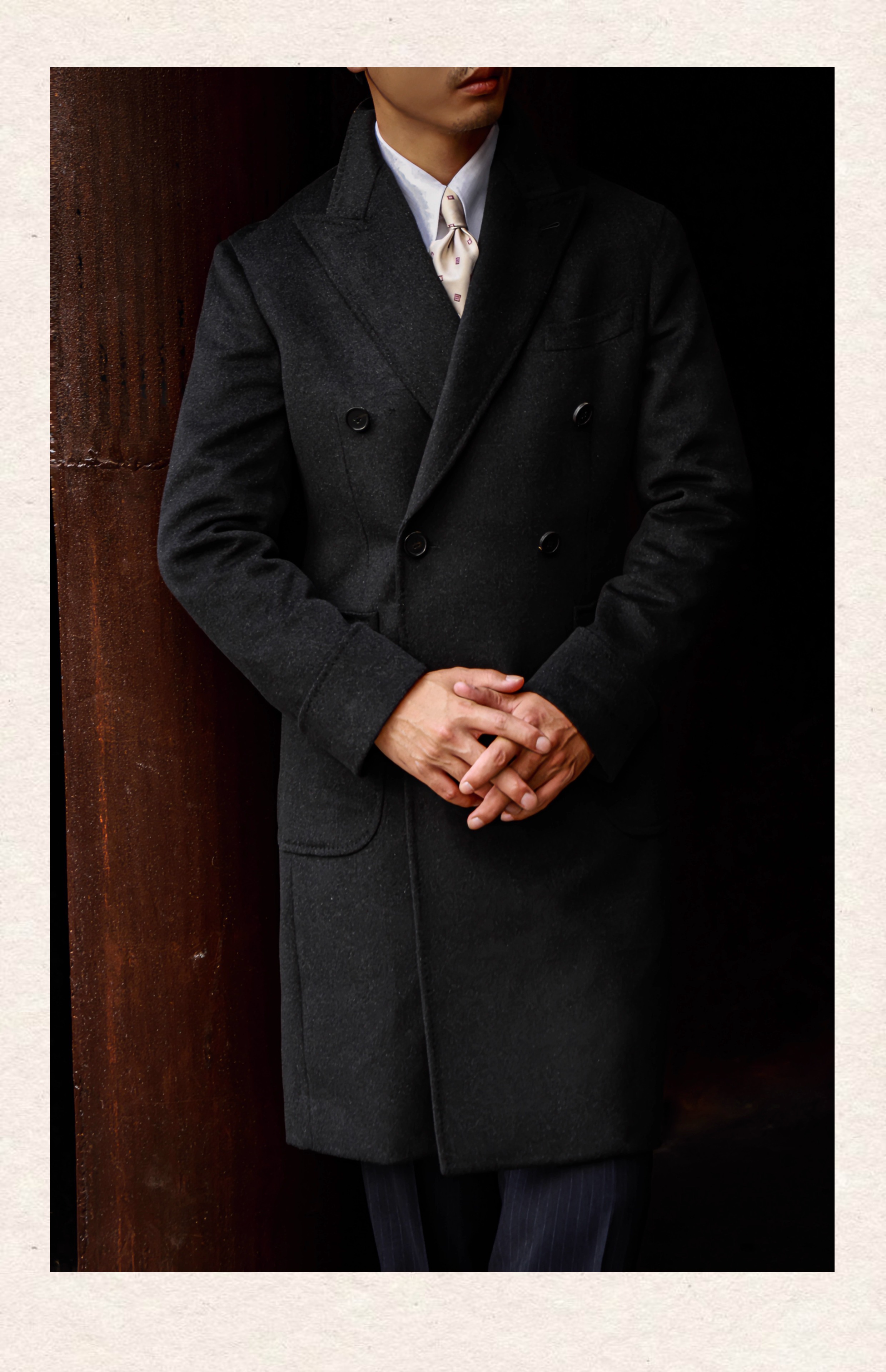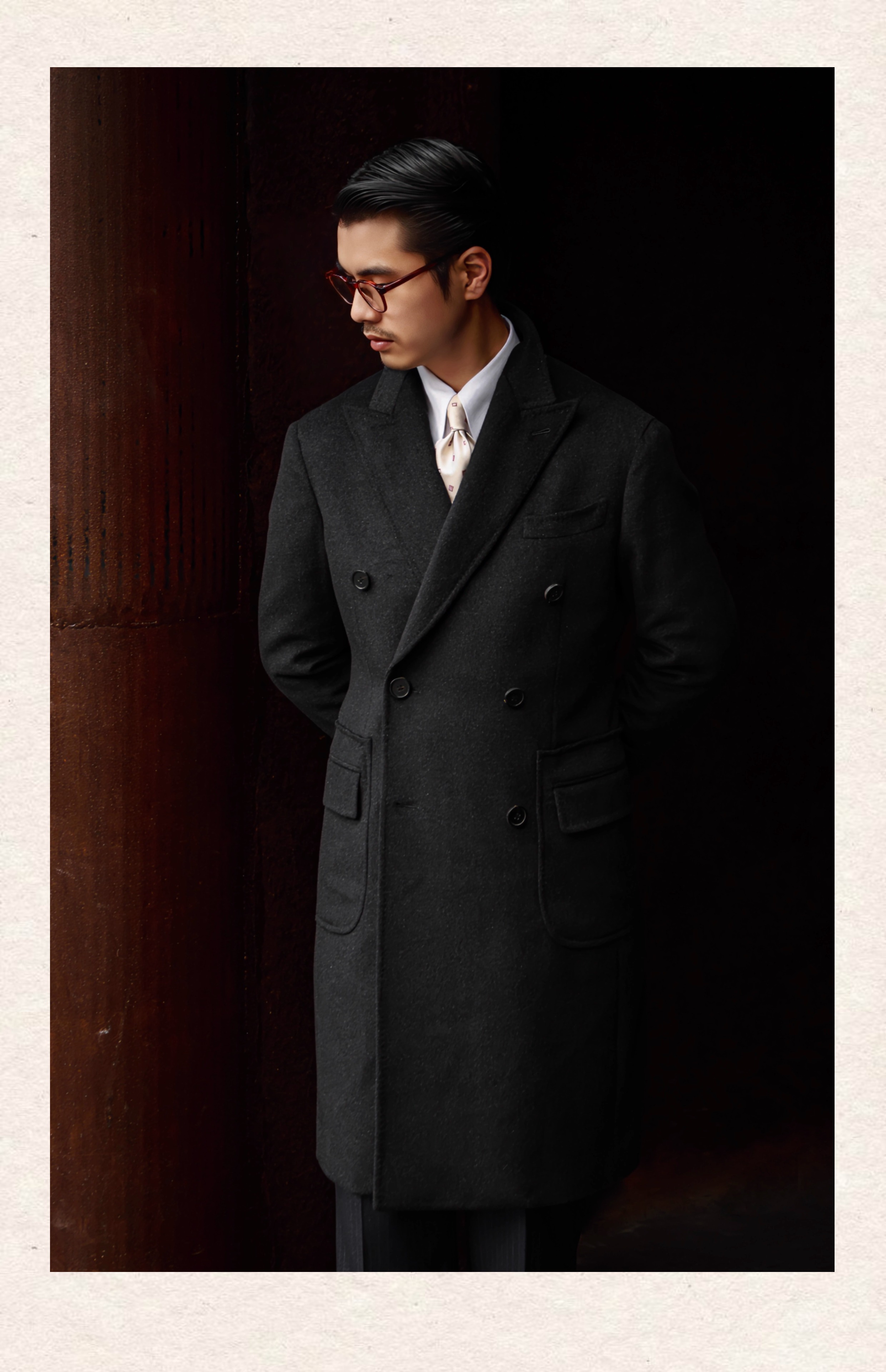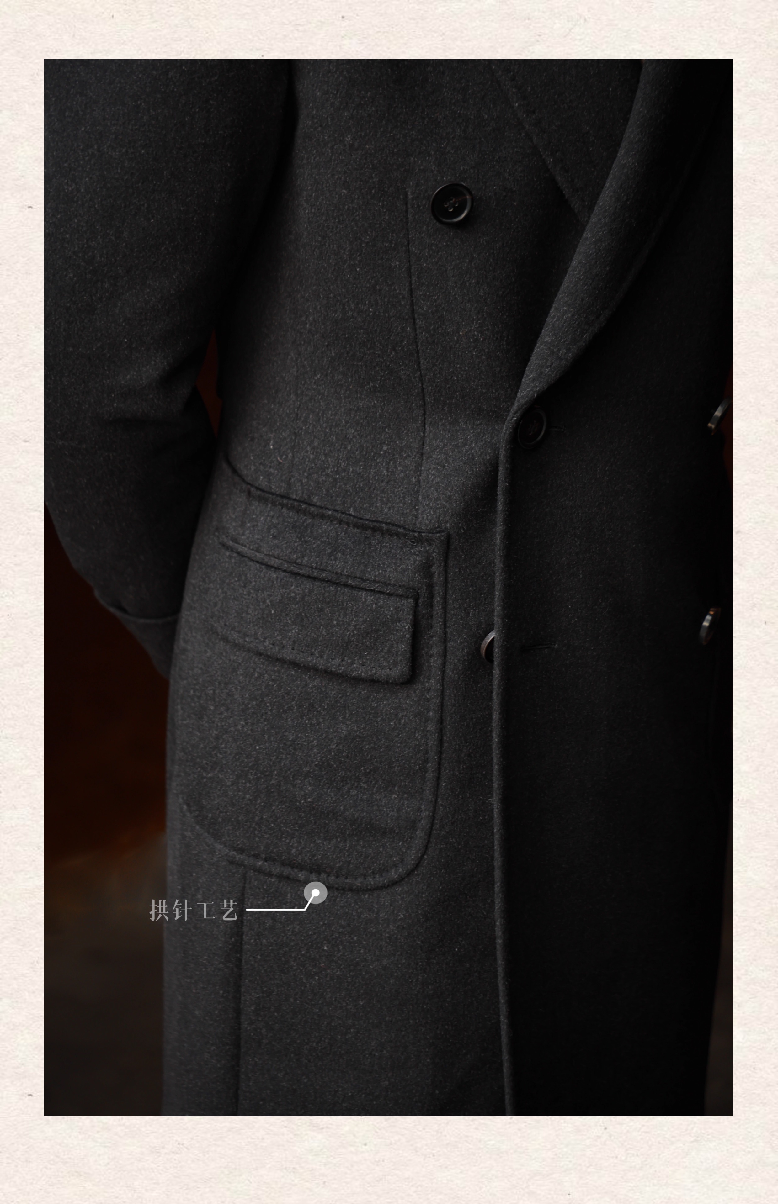 Ug Men's Winter Half-Linen Lined Handmade Milan Eye Ridge Gray Cashmere Double-Breasted Notch Lapel Polo Coat