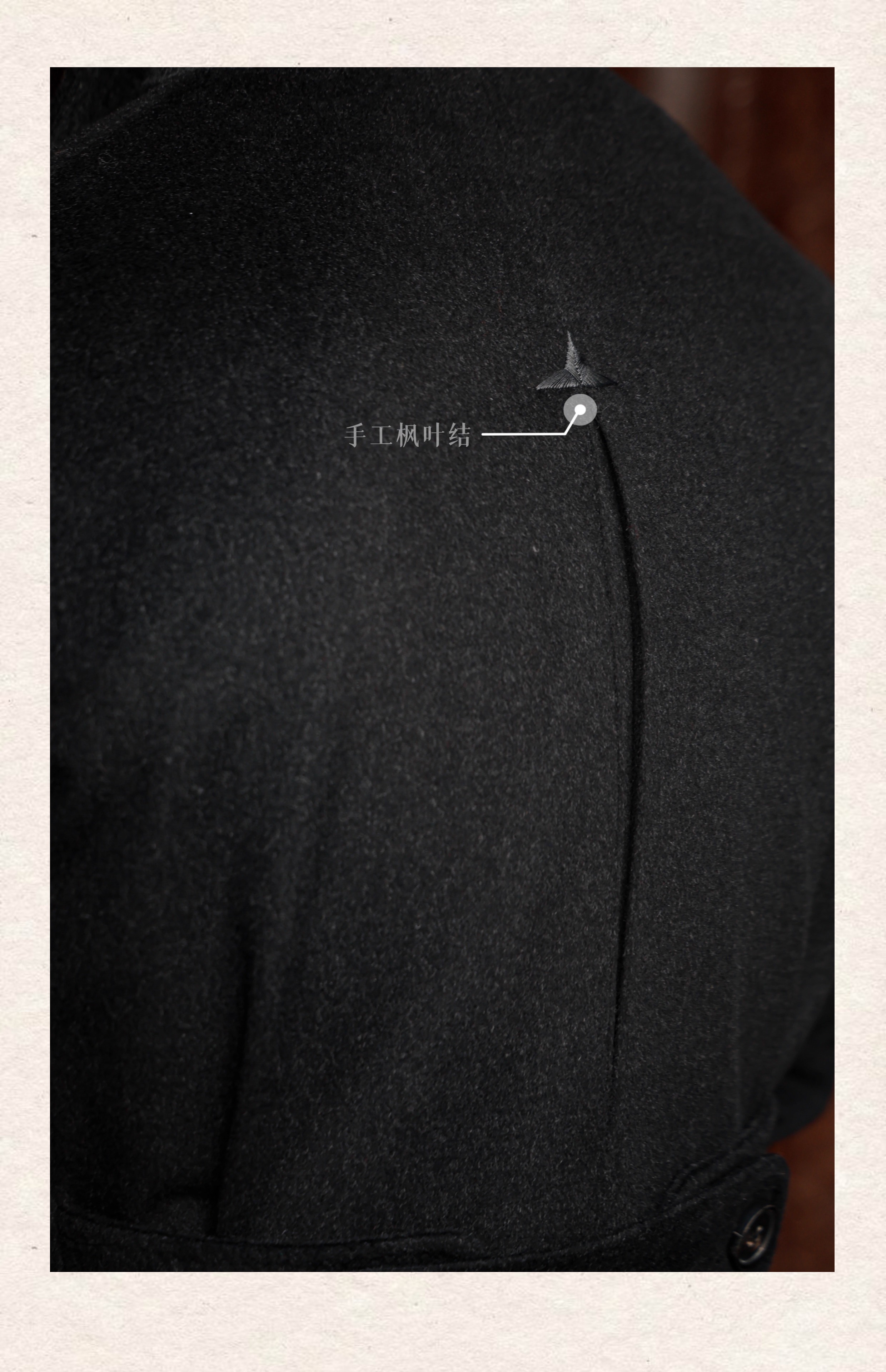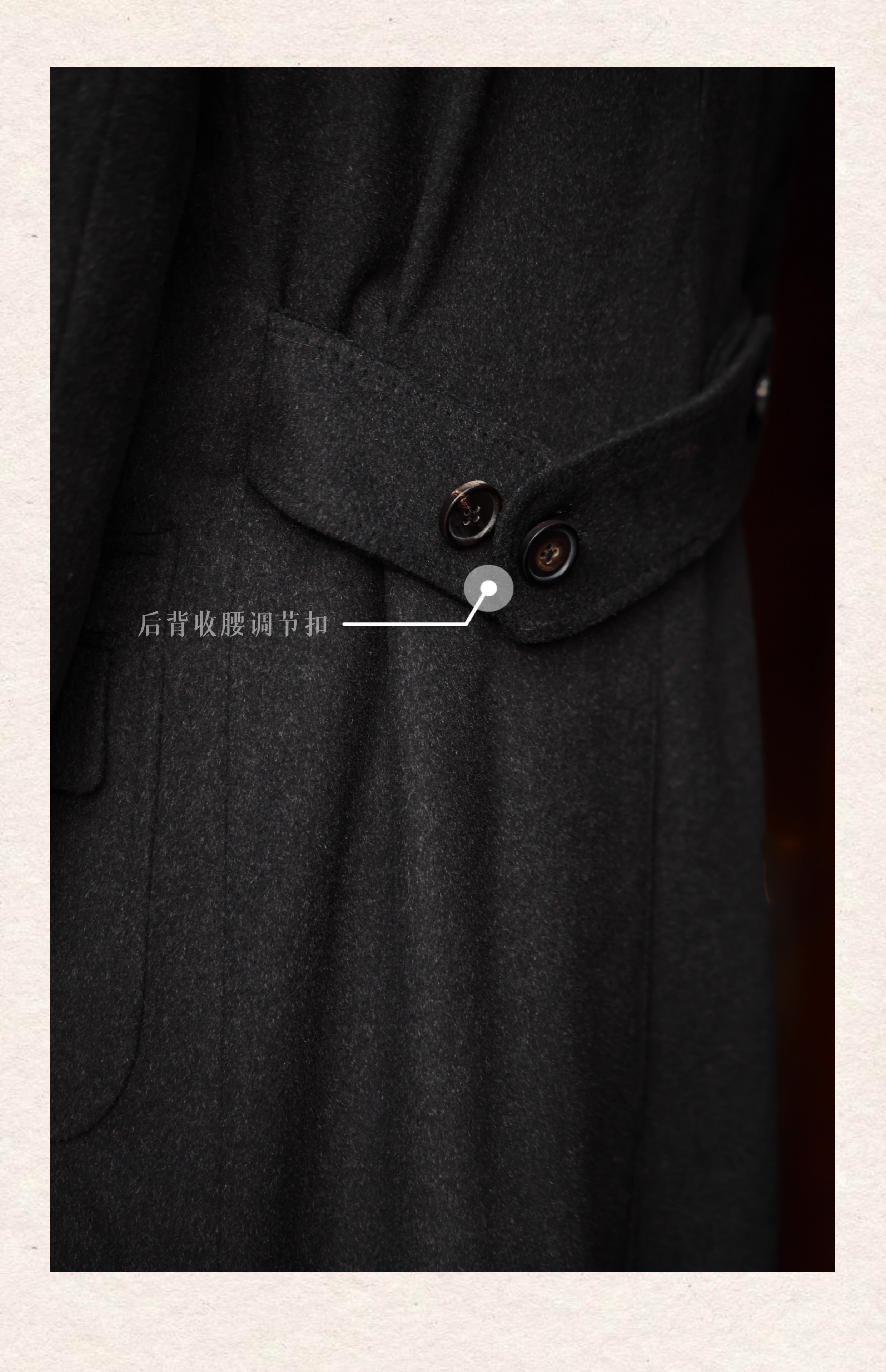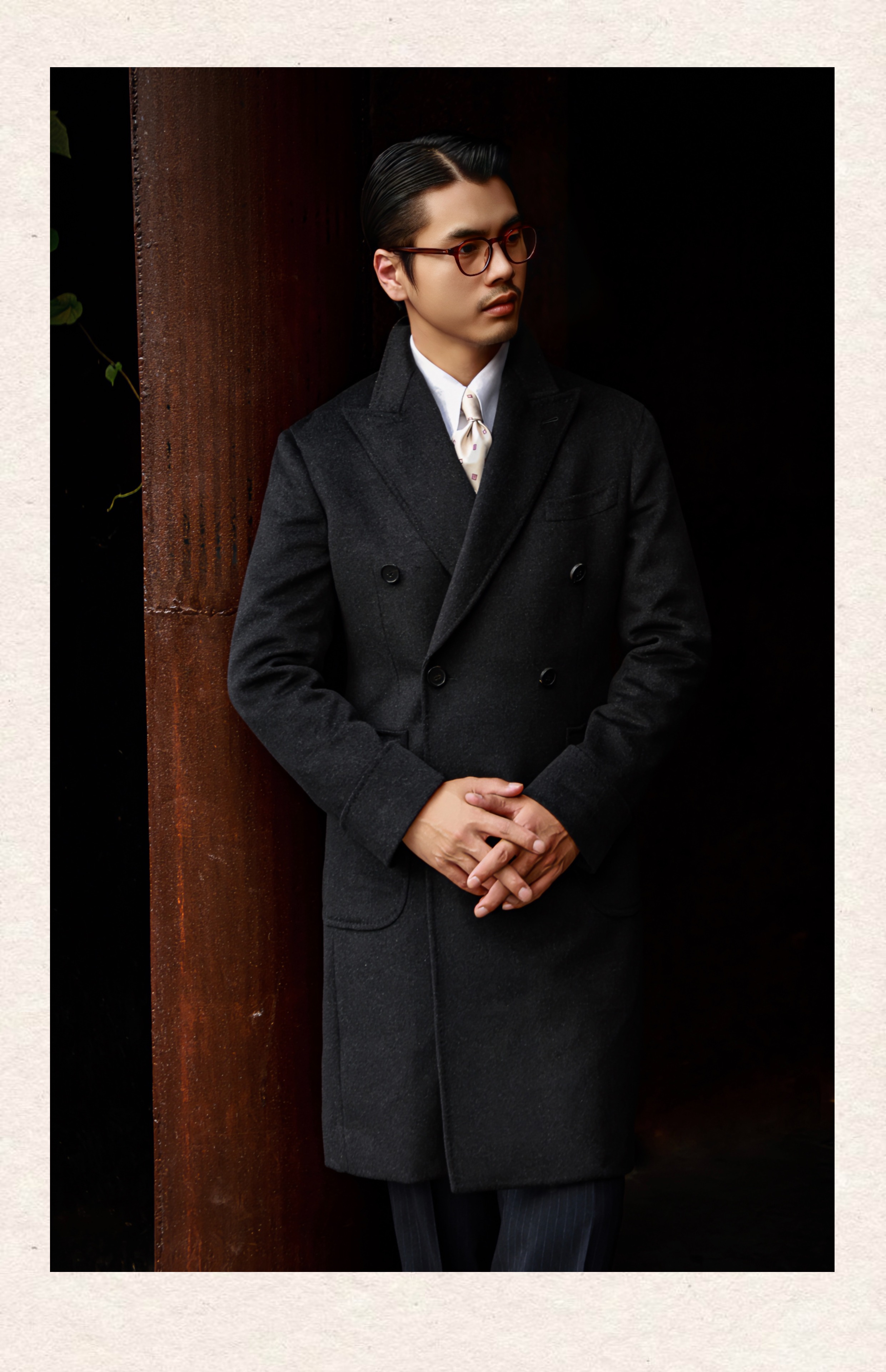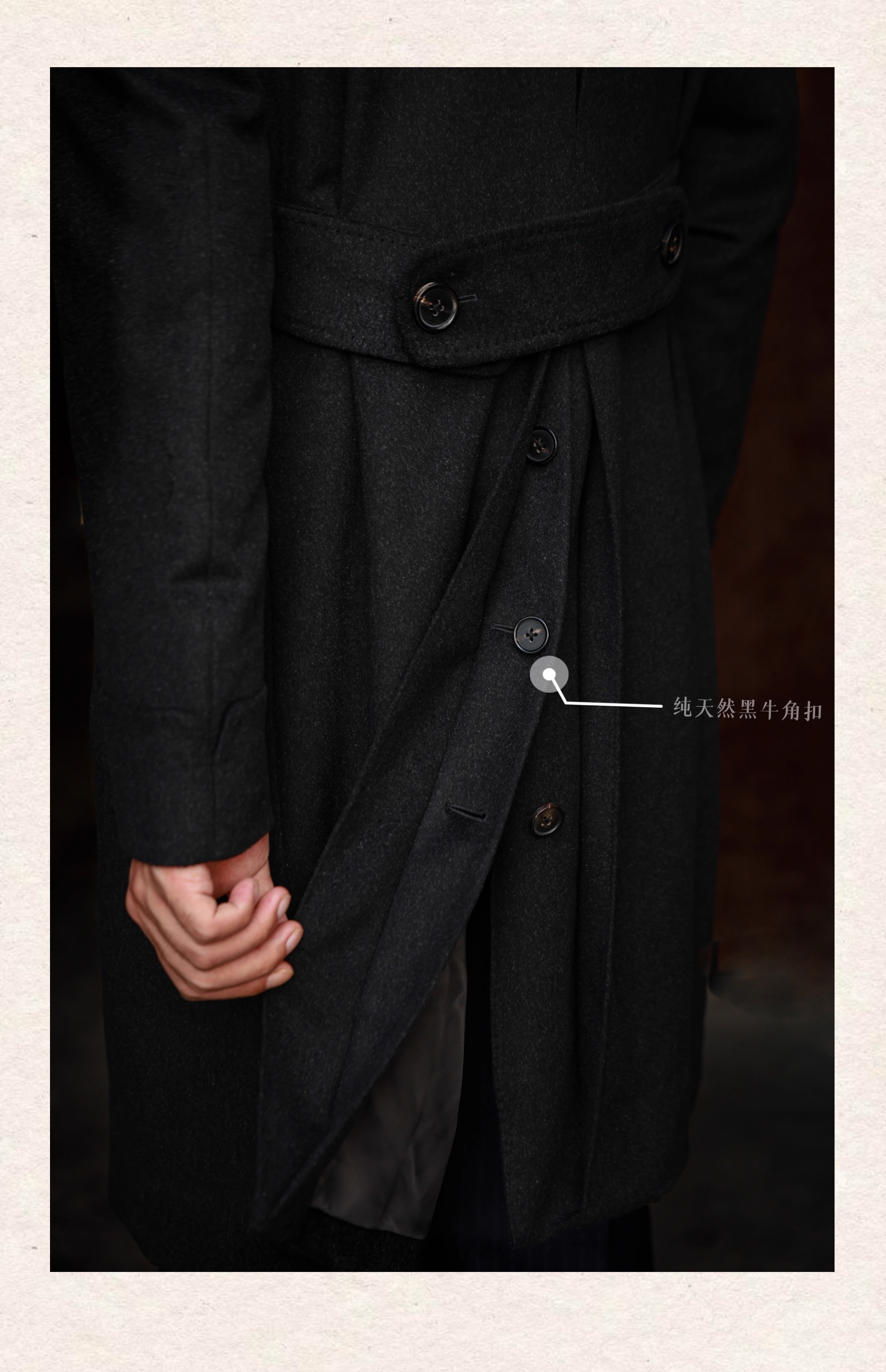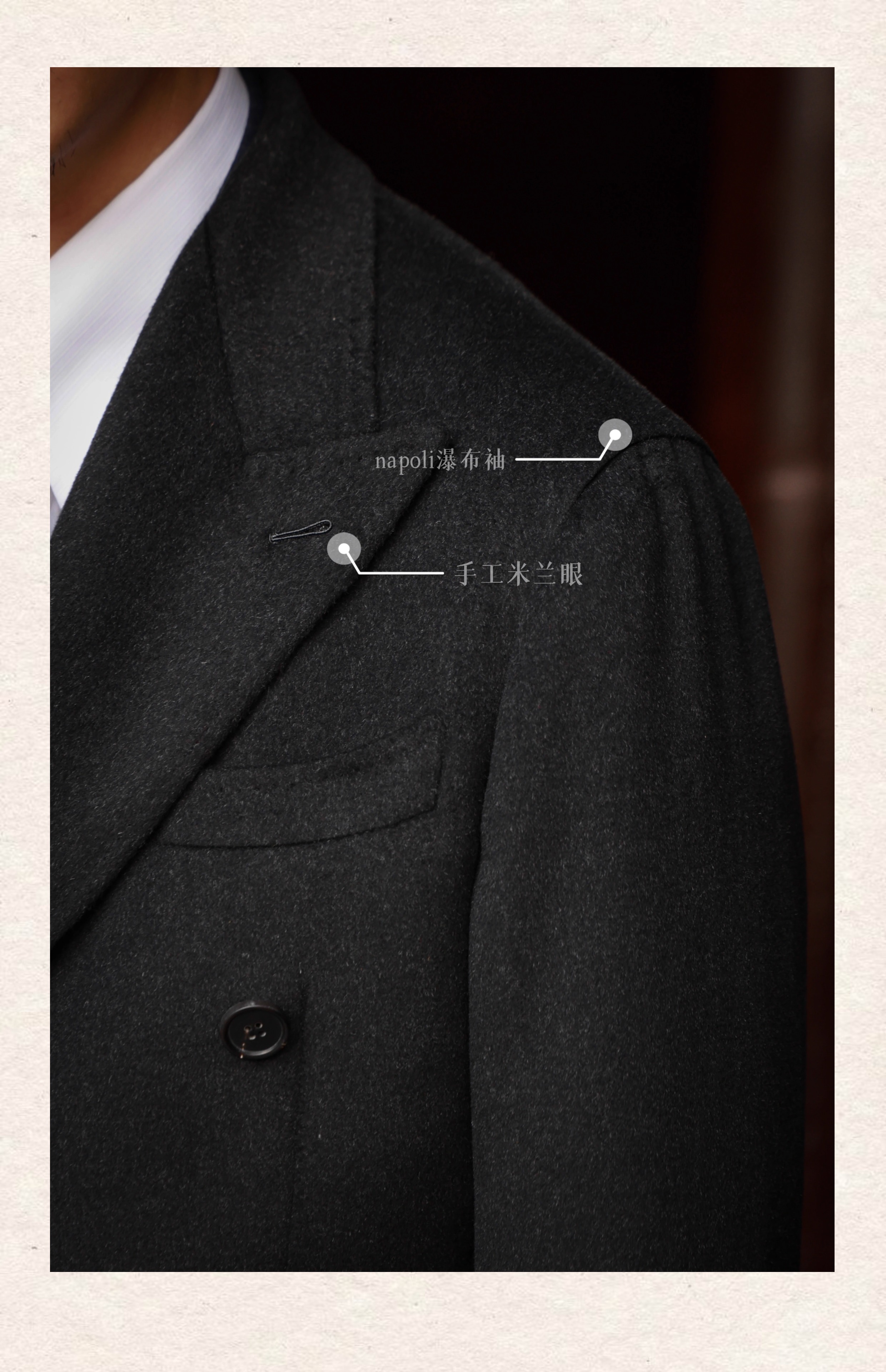 Ug Men's Winter Half-Linen Lined Handmade Milan Eye Ridge Gray Cashmere Double-Breasted Notch Lapel Polo Coat