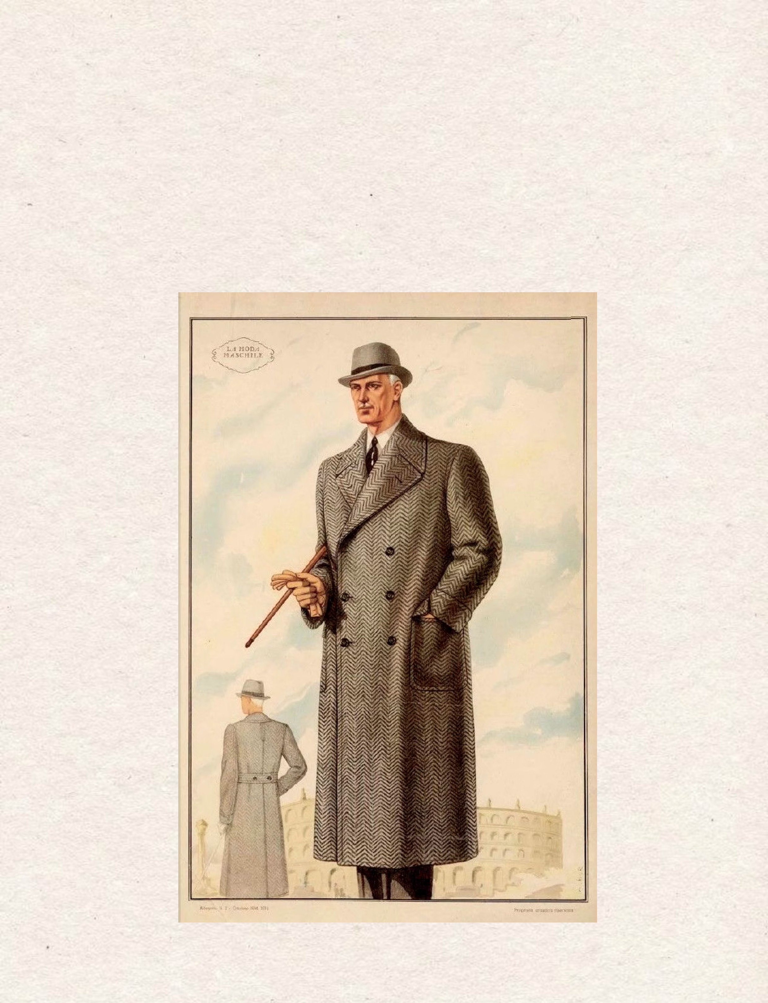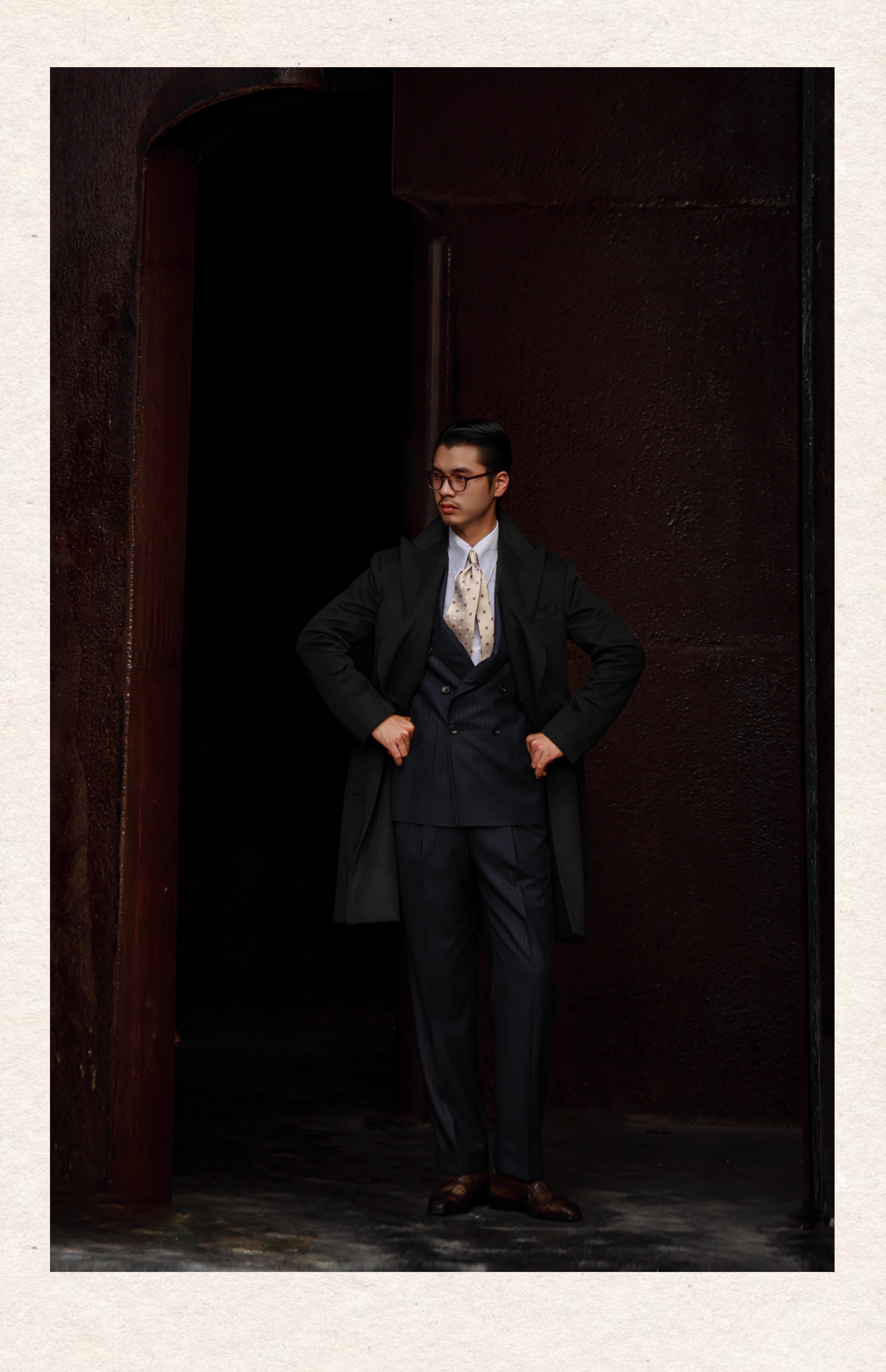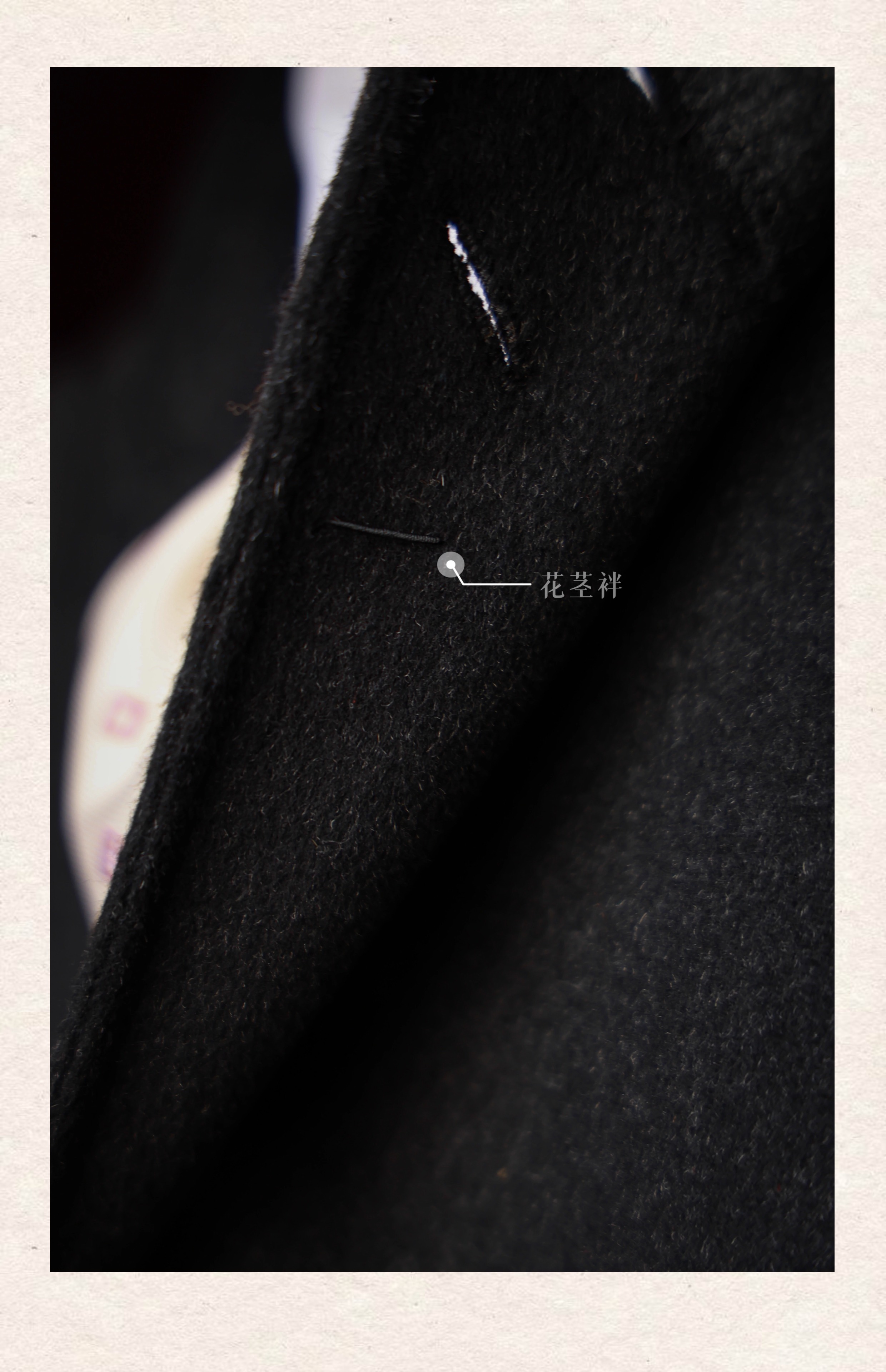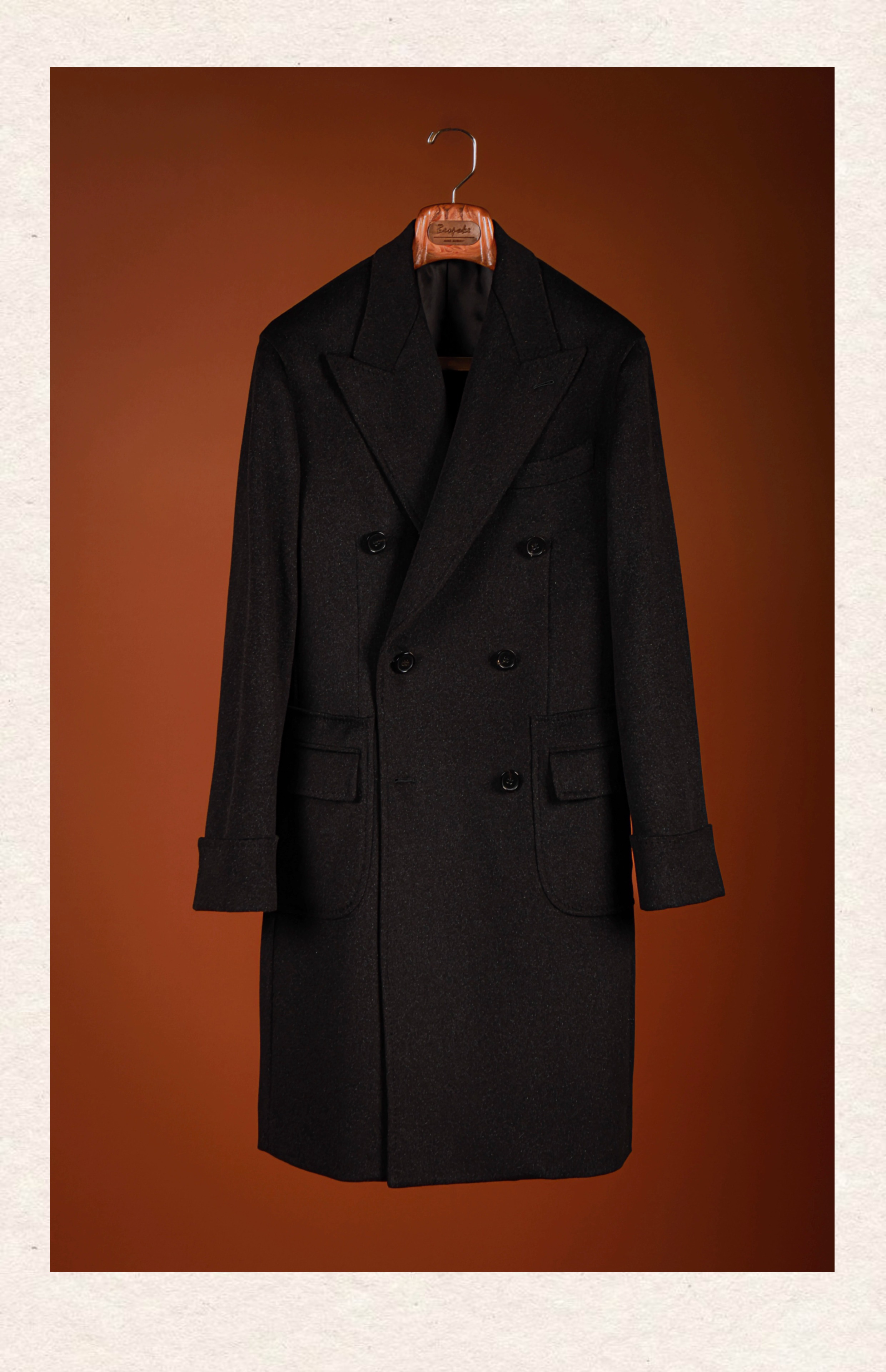 Ug Men's Winter Half-Linen Lined Handmade Milan Eye Ridge Gray Cashmere Double-Breasted Notch Lapel Polo Coat