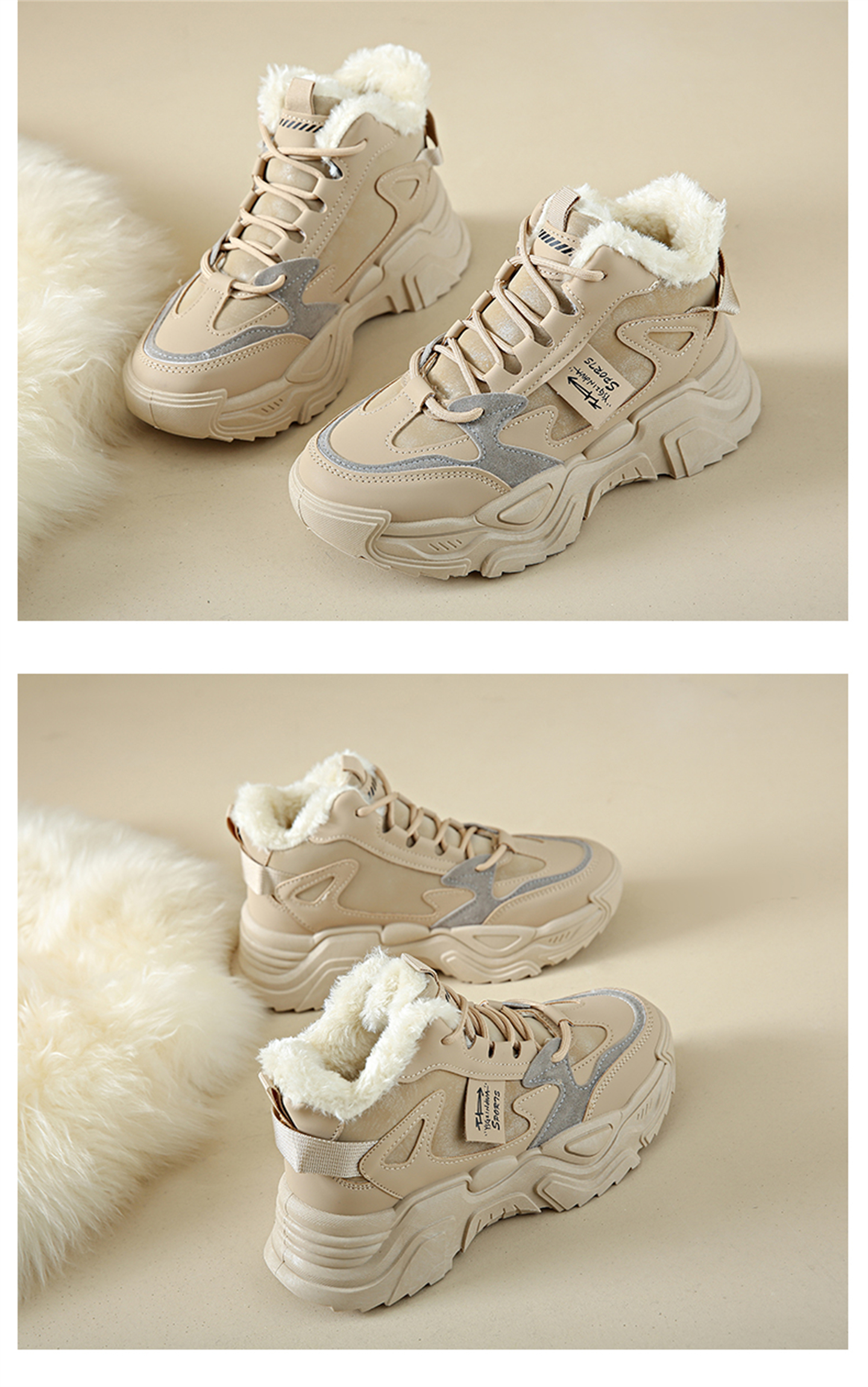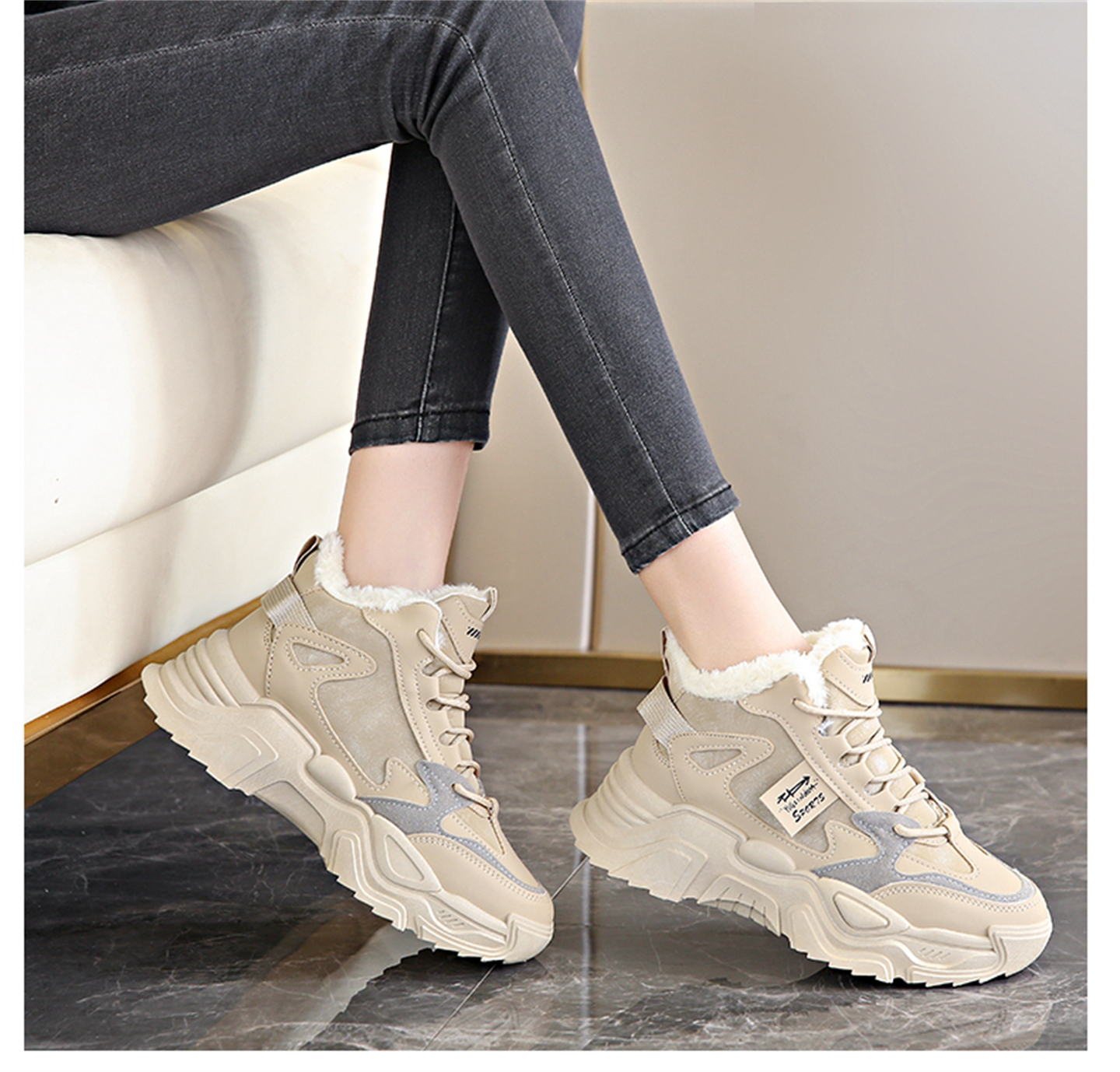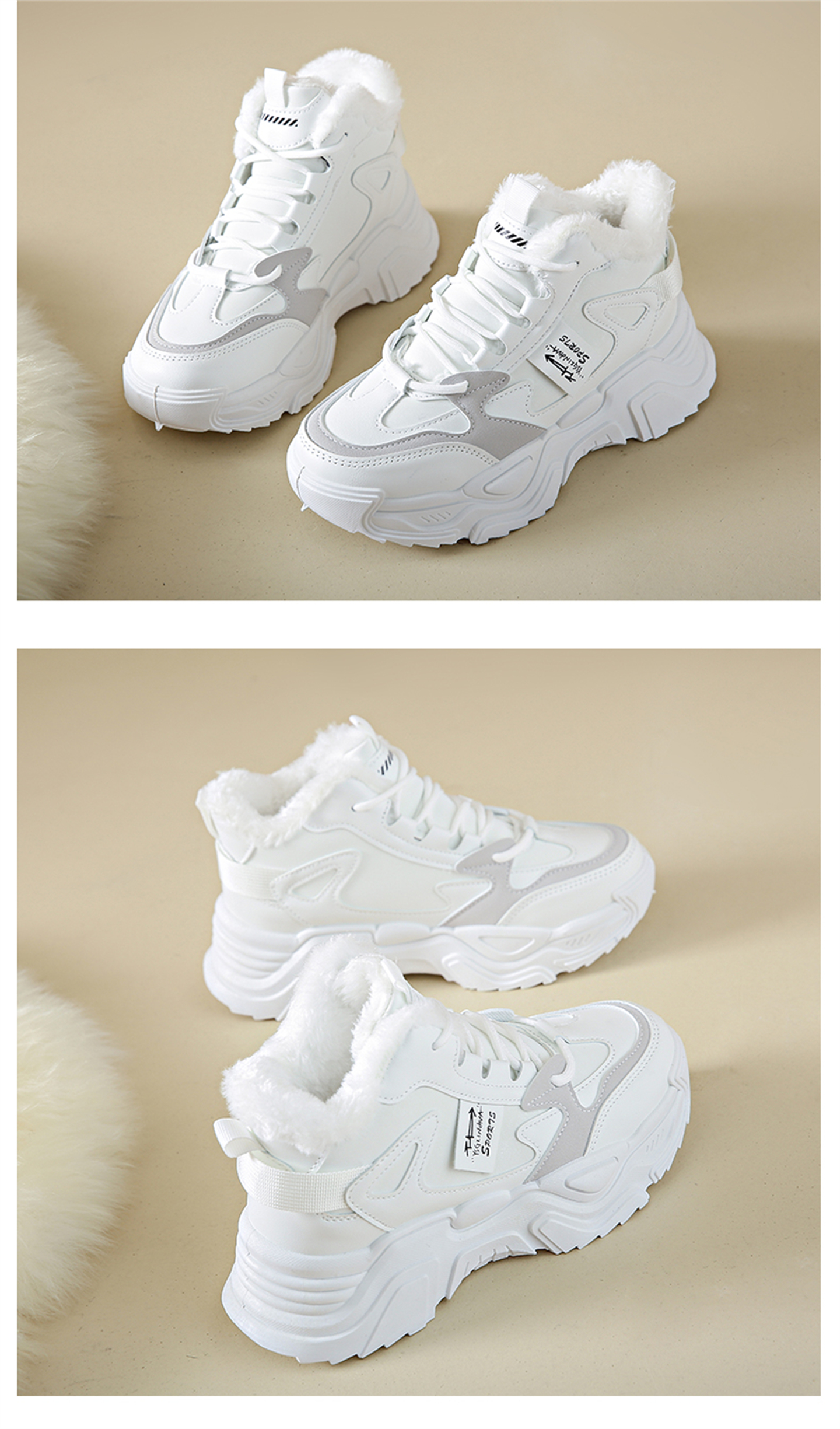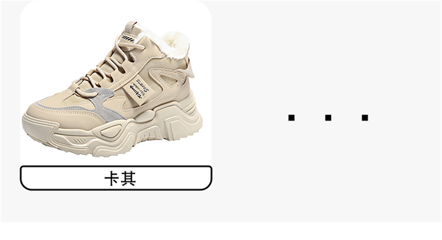 White Deer Style High-Top Fleece-Lined Dad Shoes for Women, 2025 New Winter Snow Boots, Warm Sports Large Cotton Shoes, Size 34