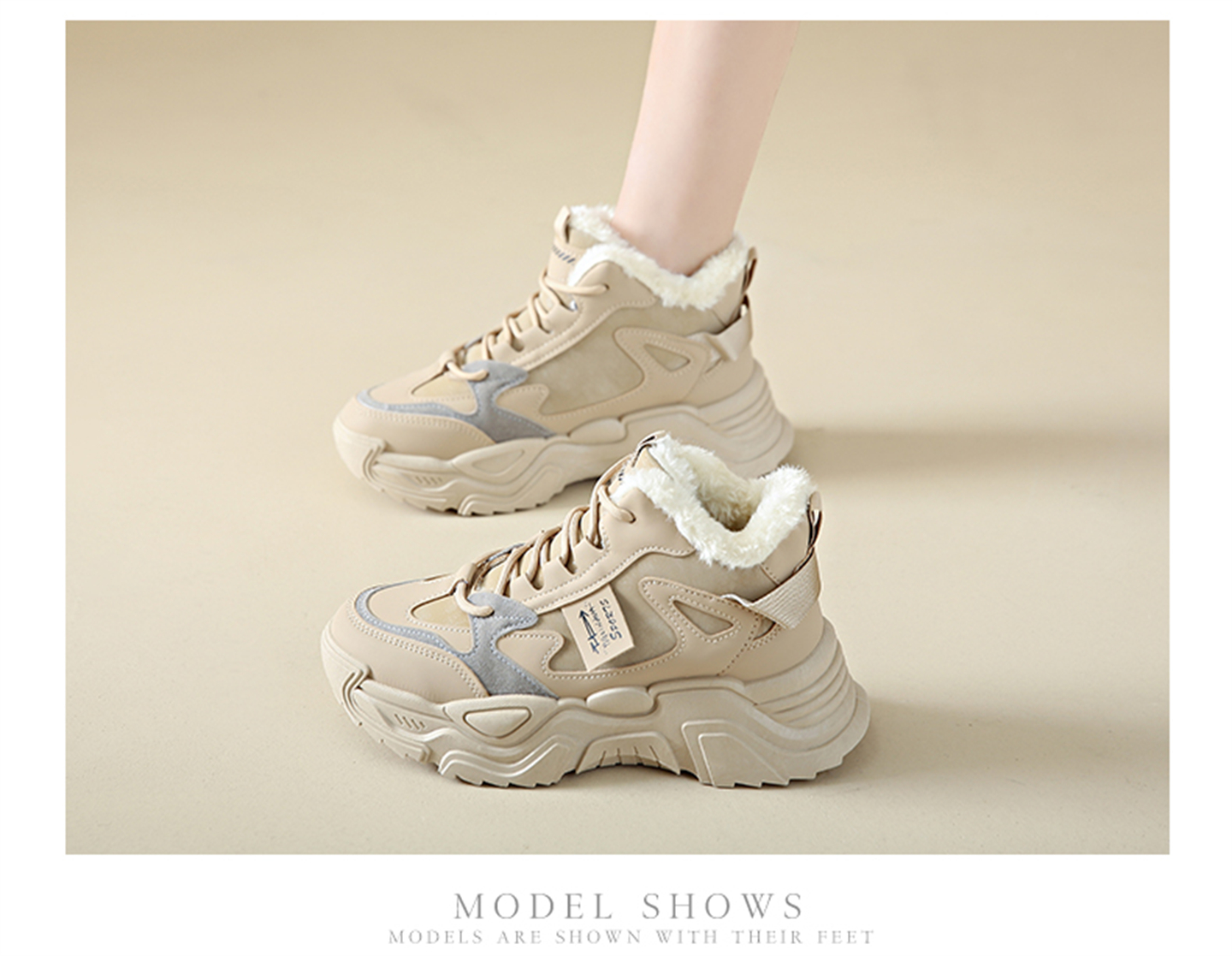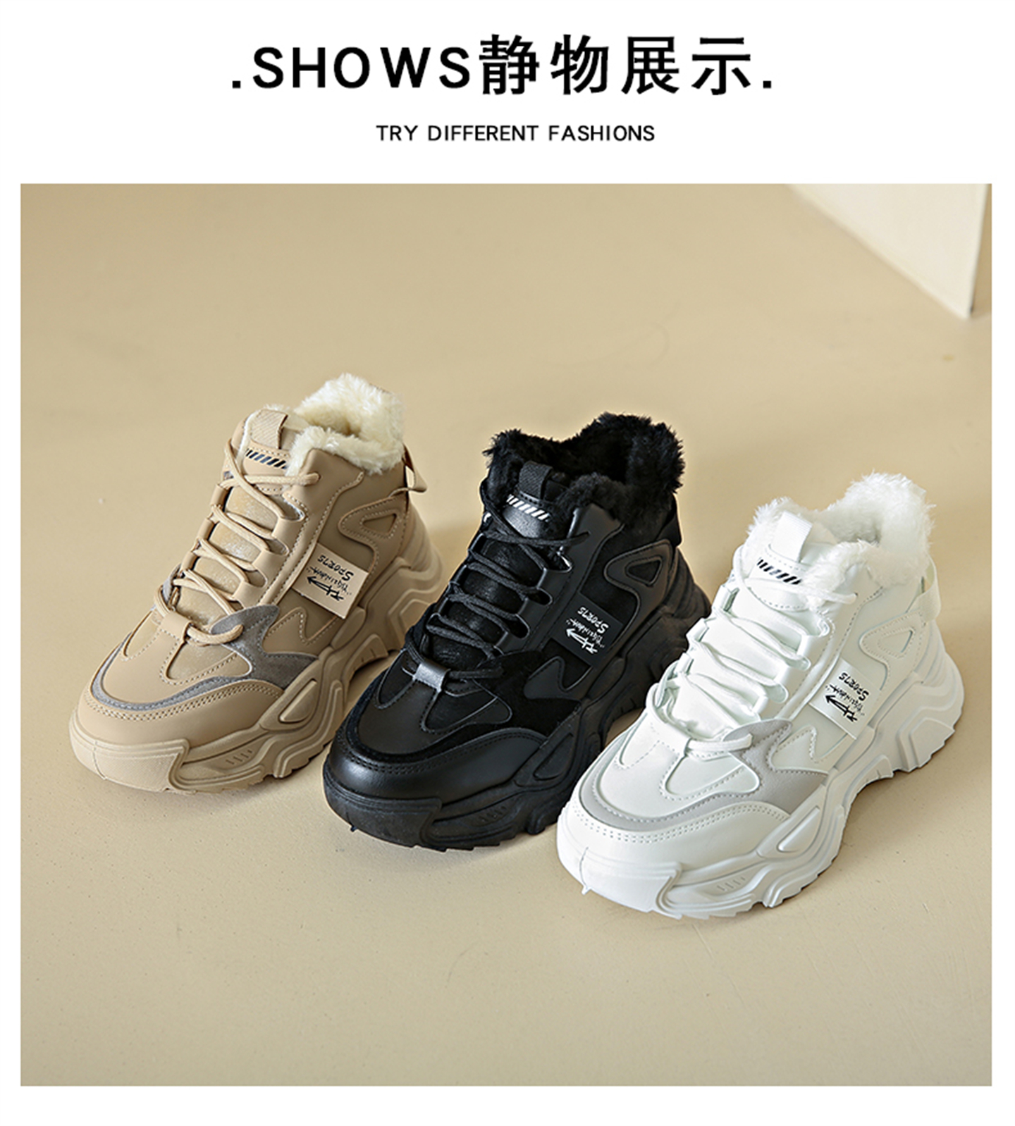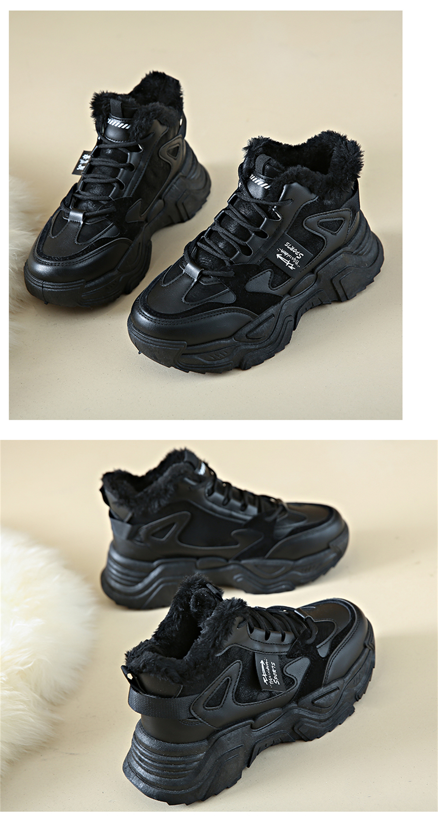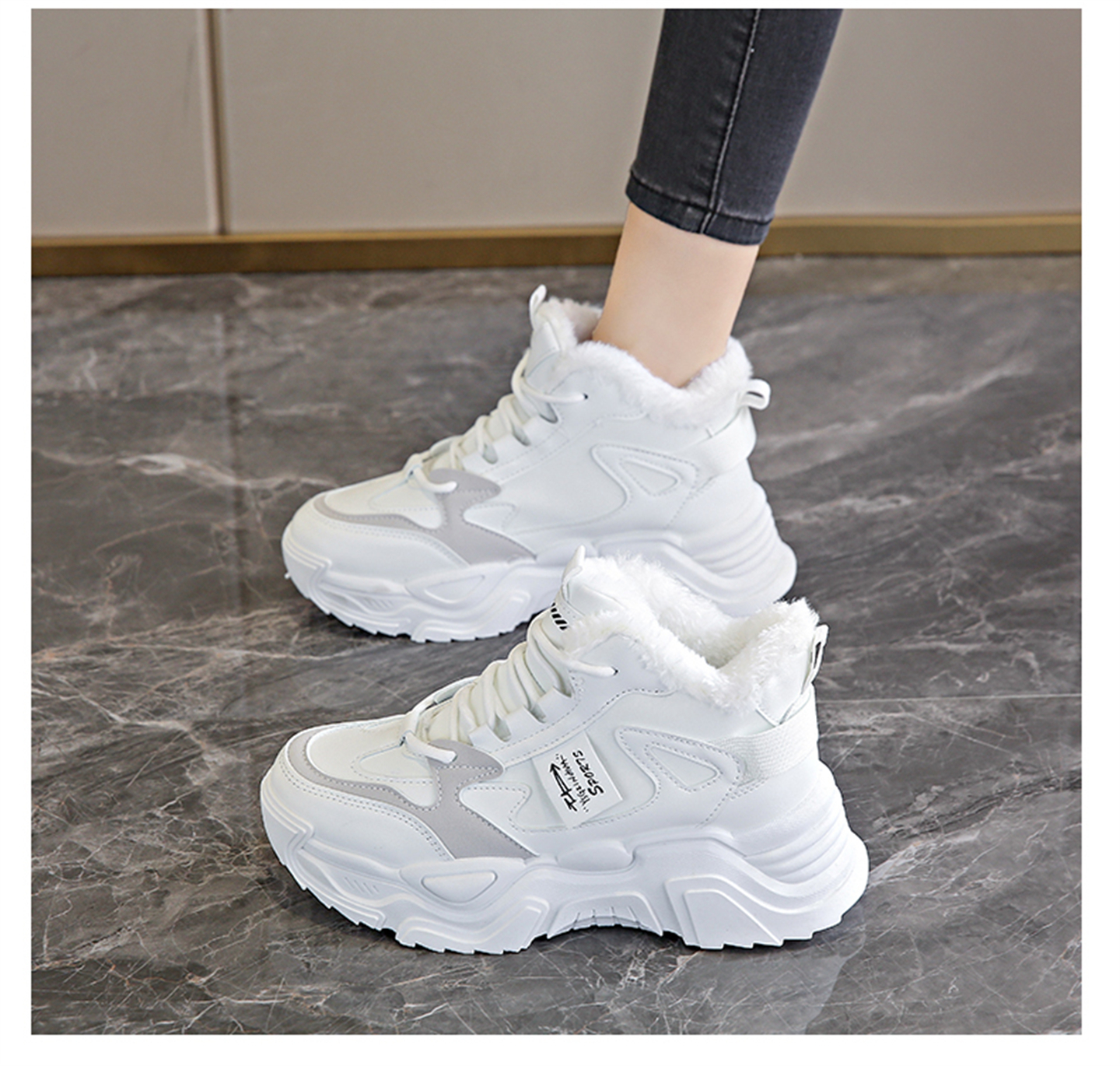 White Deer Style High-Top Fleece-Lined Dad Shoes for Women, 2025 New Winter Snow Boots, Warm Sports Large Cotton Shoes, Size 34