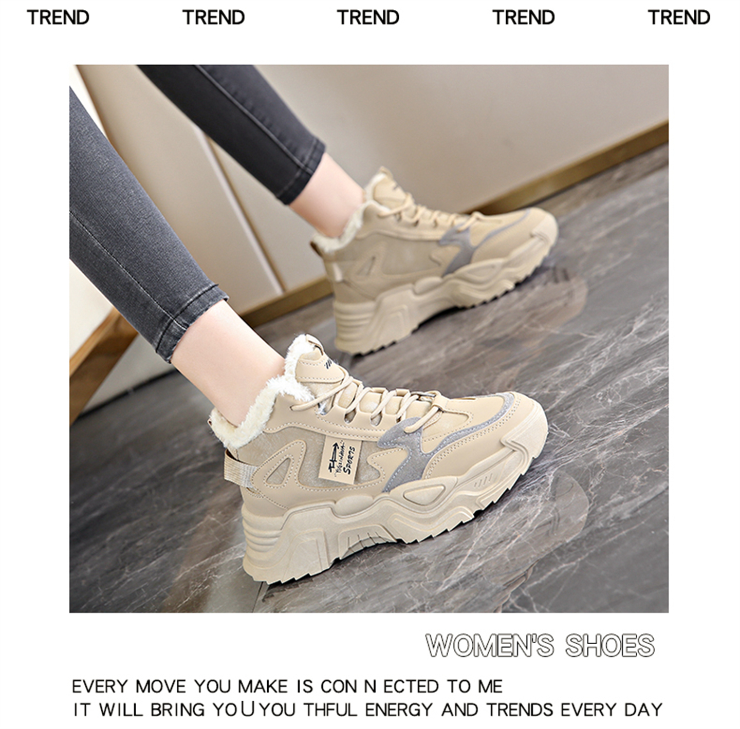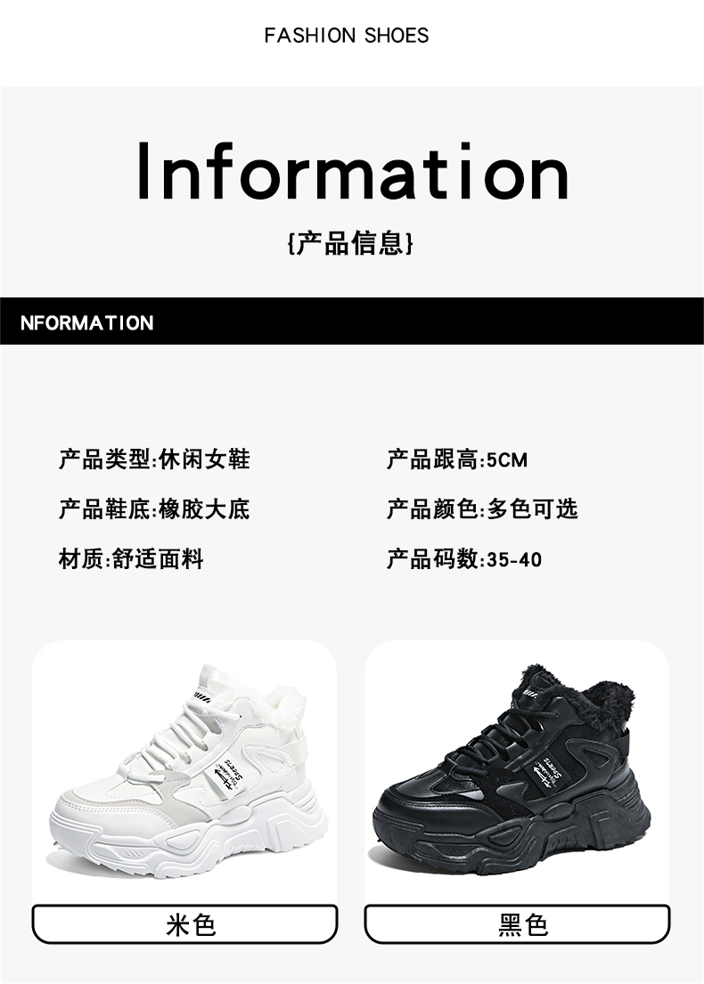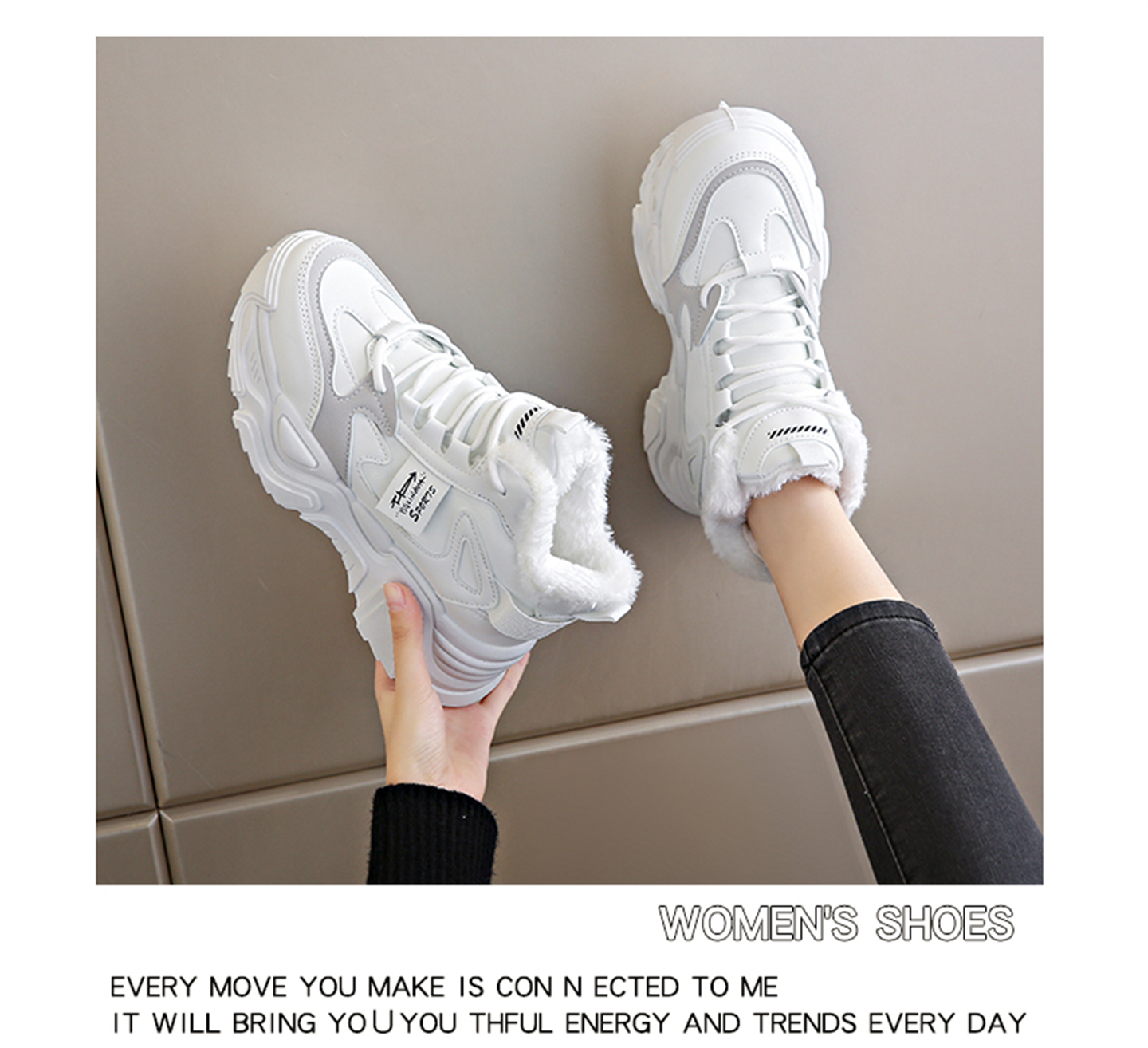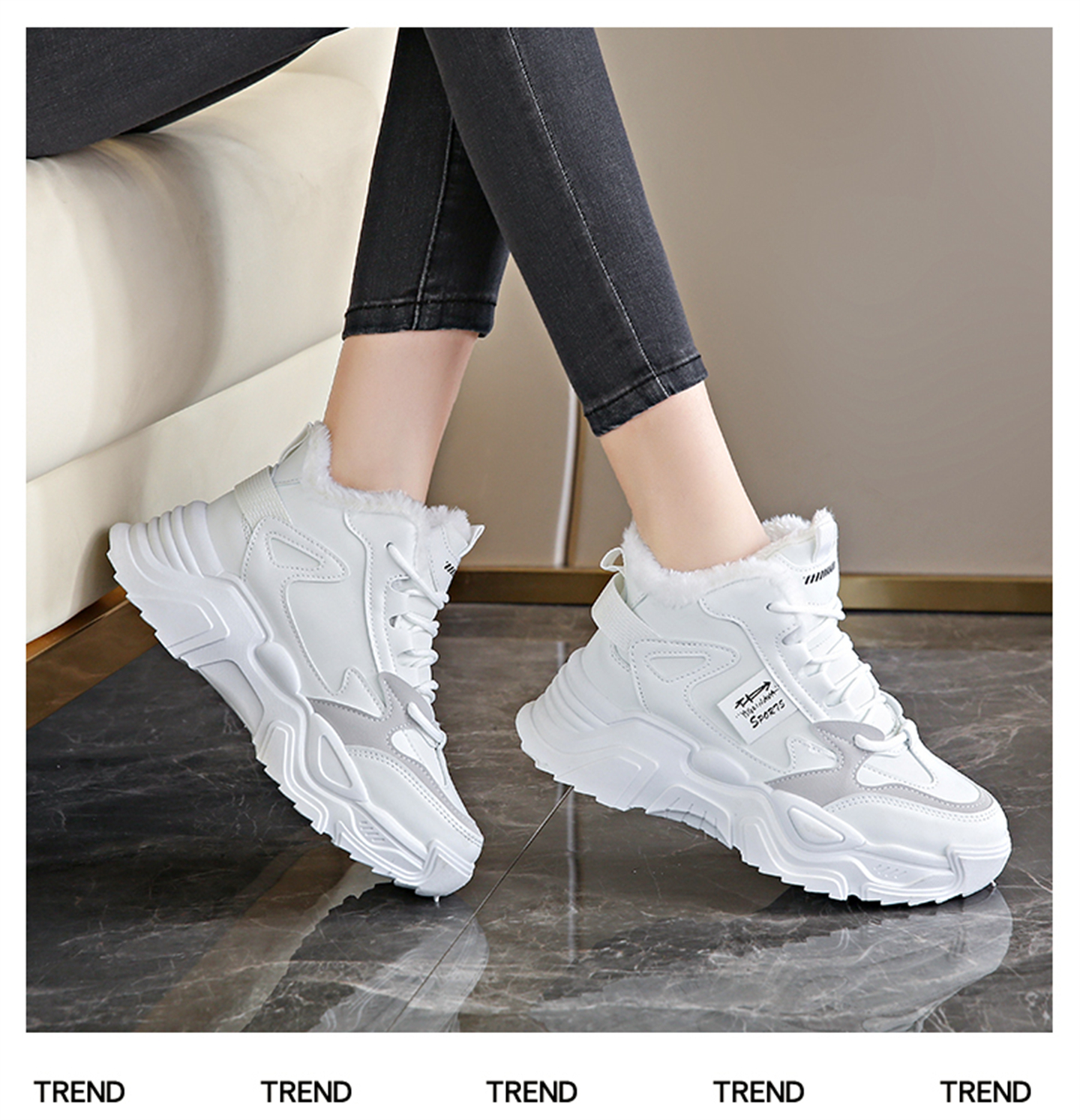 White Deer Style High-Top Fleece-Lined Dad Shoes for Women, 2025 New Winter Snow Boots, Warm Sports Large Cotton Shoes, Size 34