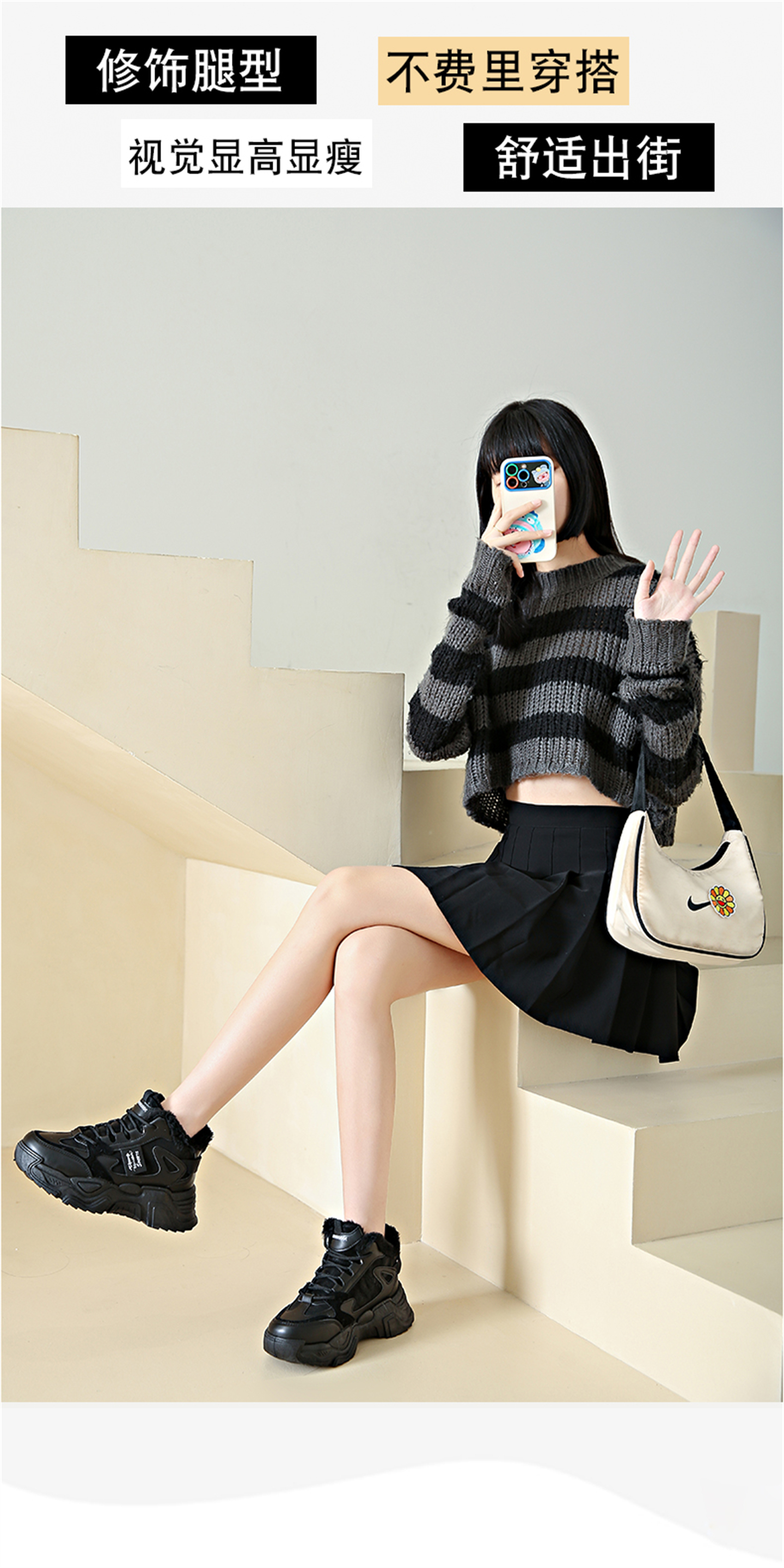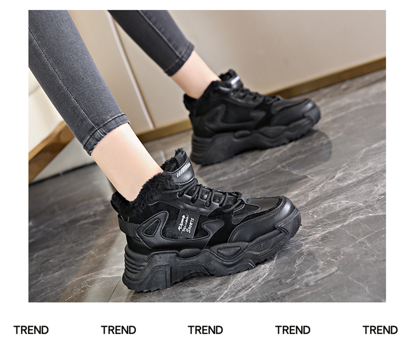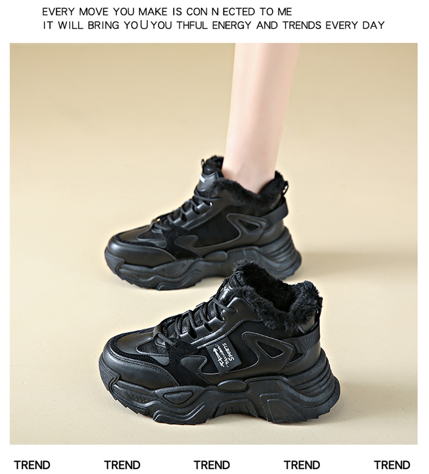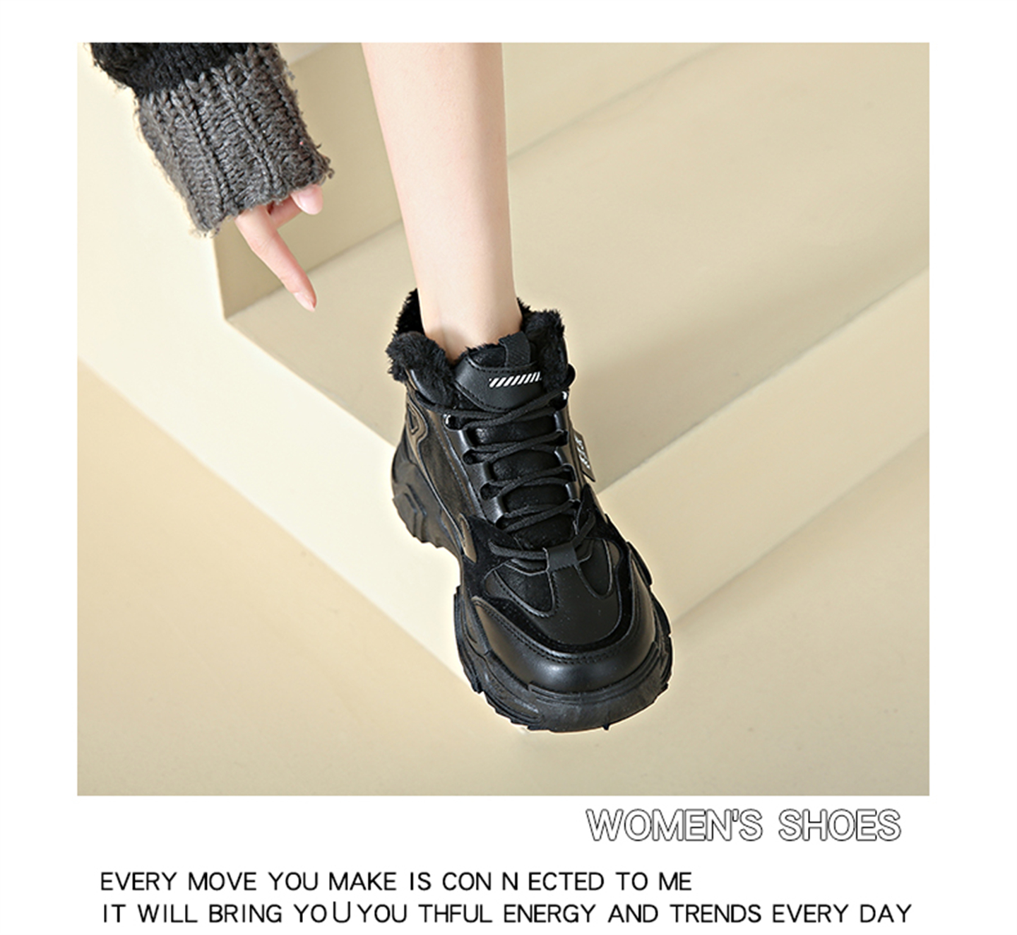 White Deer Style High-Top Fleece-Lined Dad Shoes for Women, 2025 New Winter Snow Boots, Warm Sports Large Cotton Shoes, Size 34