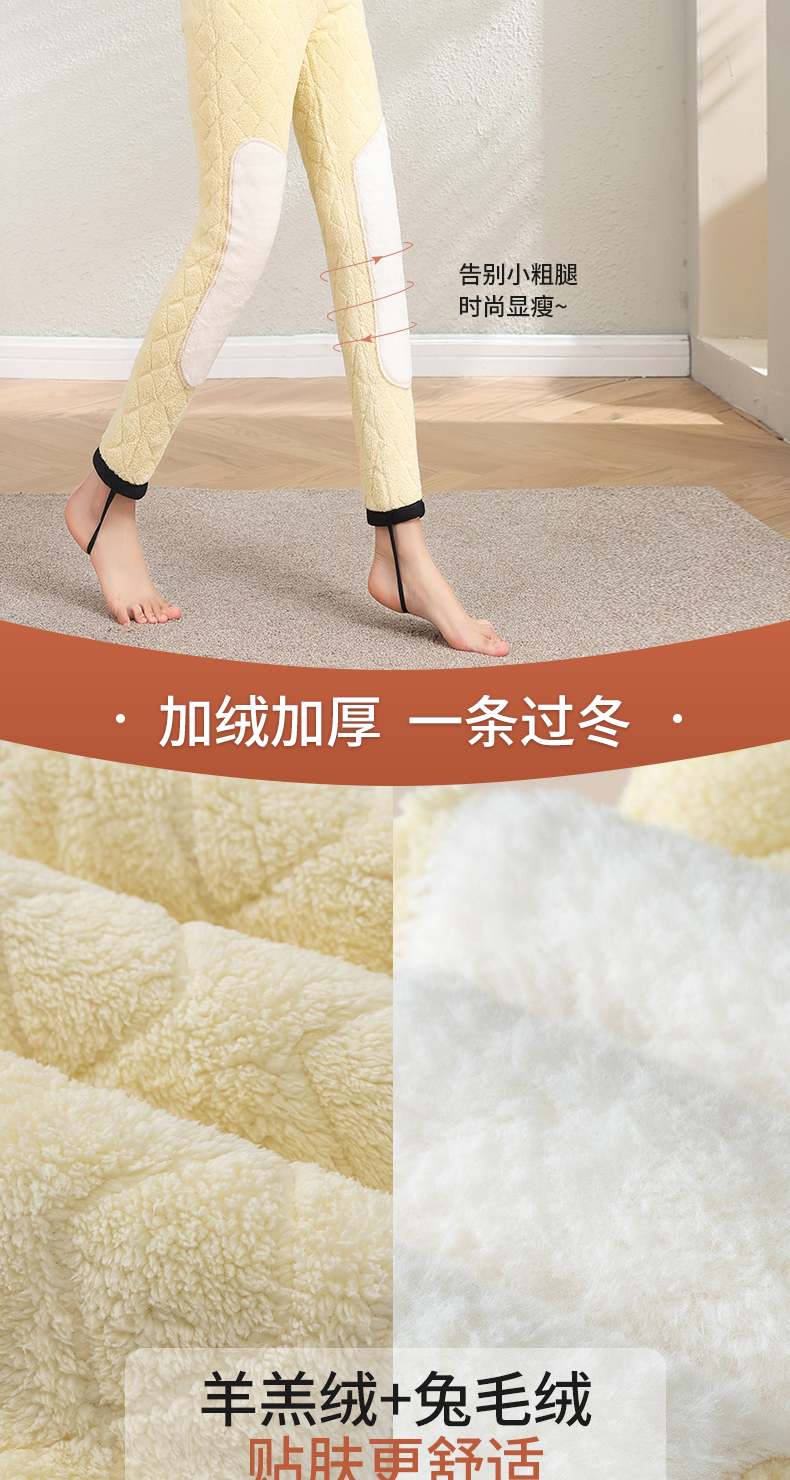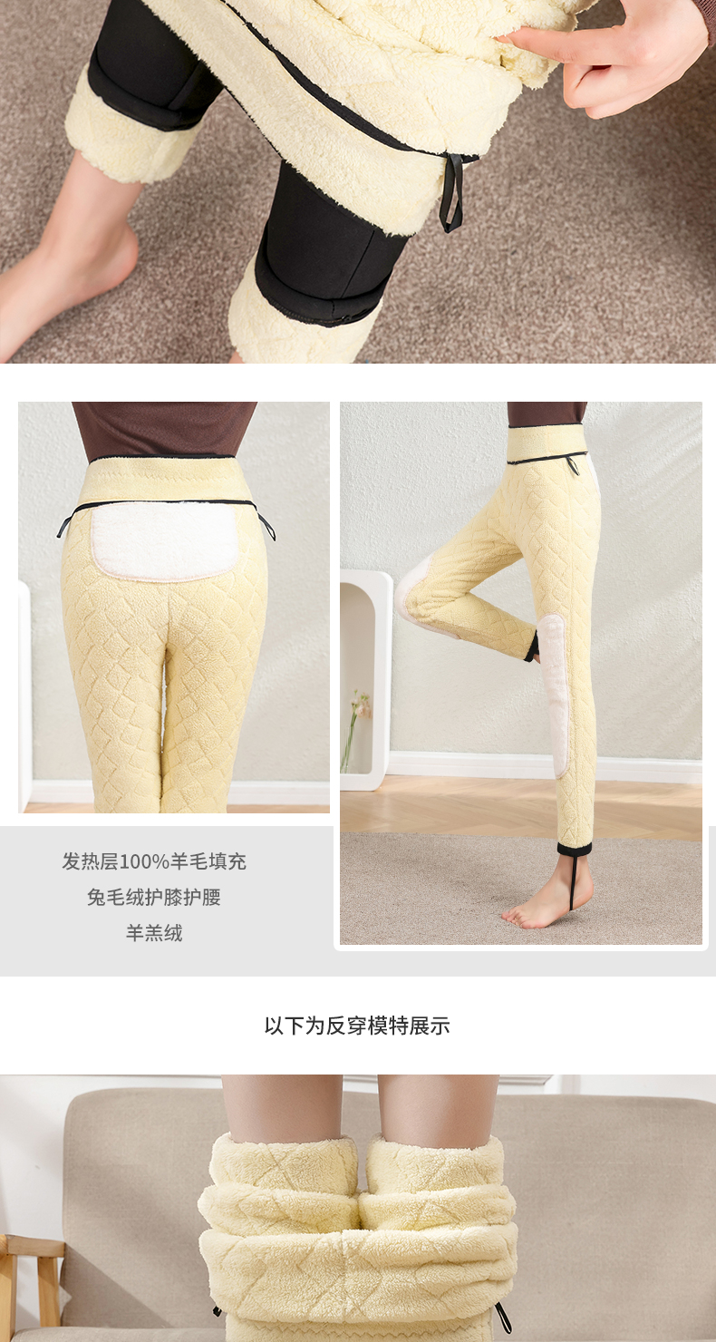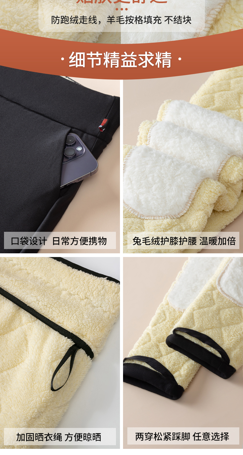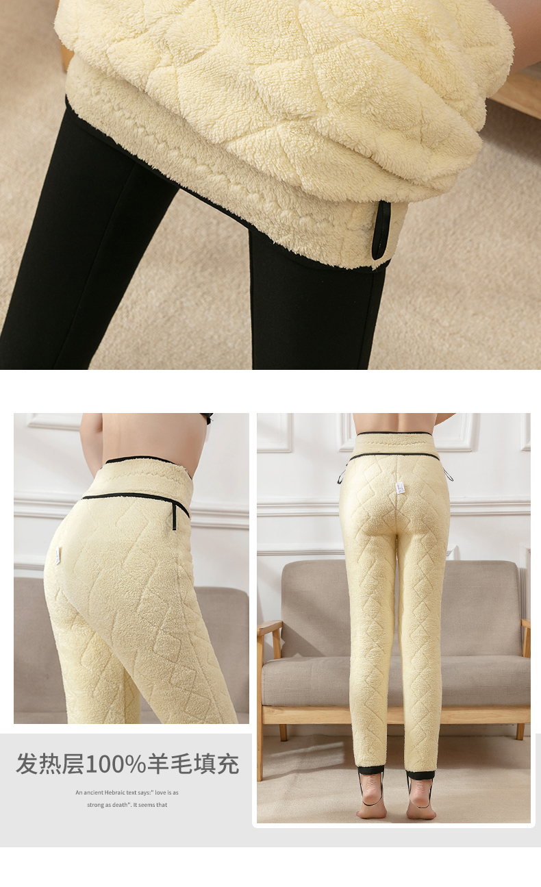 Winter Wool Cotton Pants for Women, Fleece-Lined and Thickened, Lamb Wool Leggings, Extra Thick Large Size Knee-Protecting Thermal Pants for Northeast