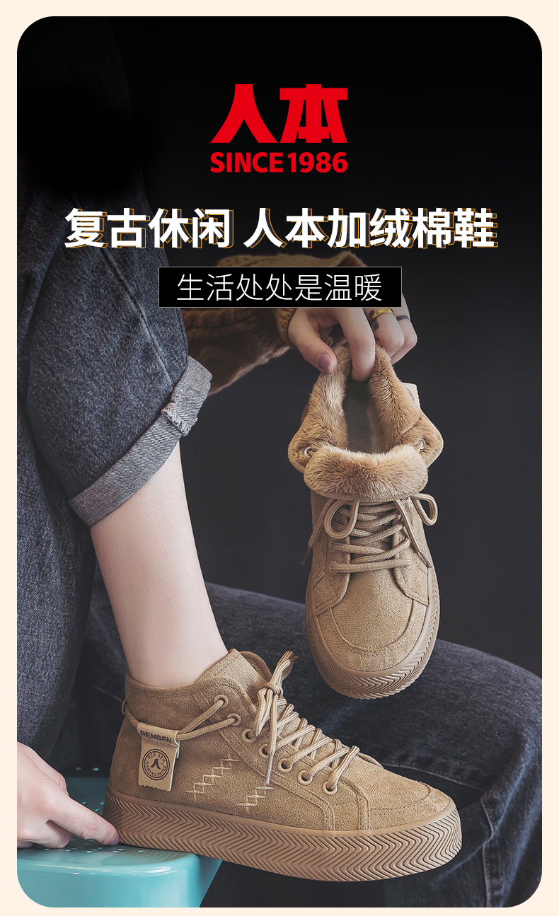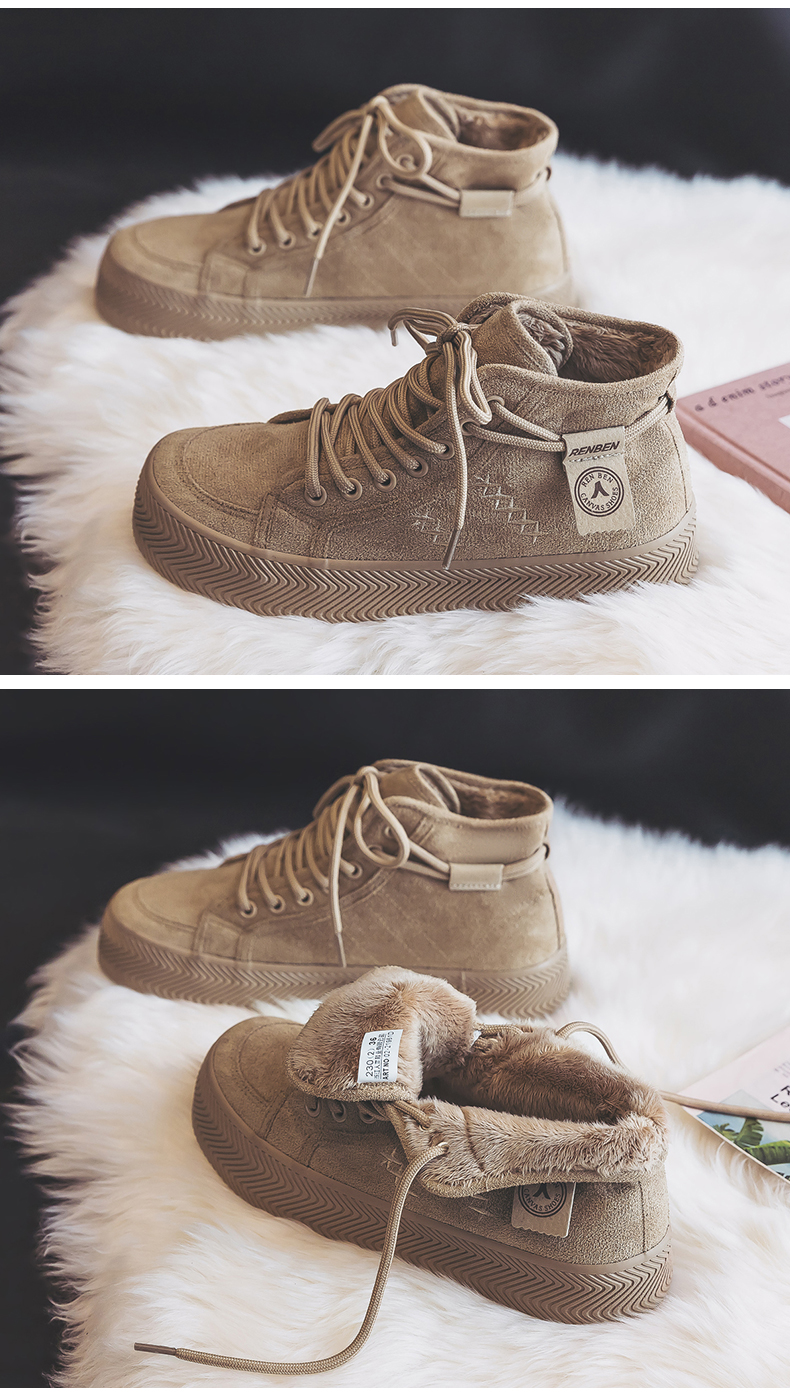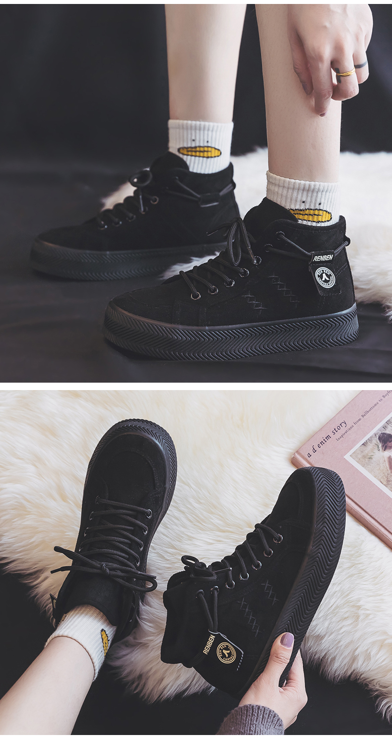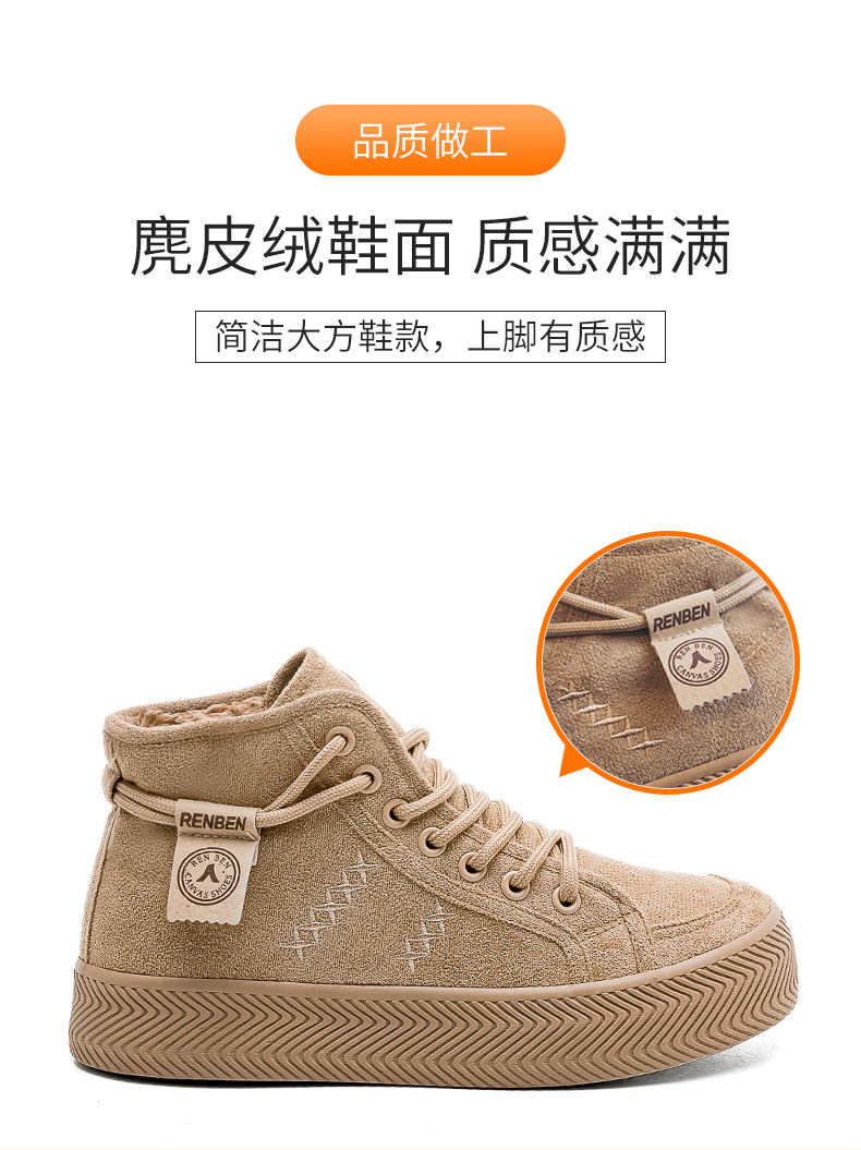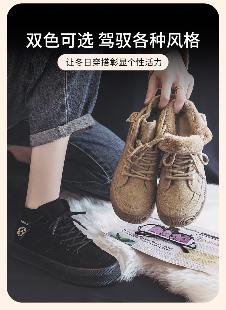 Renben Official Flagship Store Genuine High-Top Women's Shoes with Fleece 2025 New Women's Shoes Thick-Soled Winter Warm Double Cotton Shoes