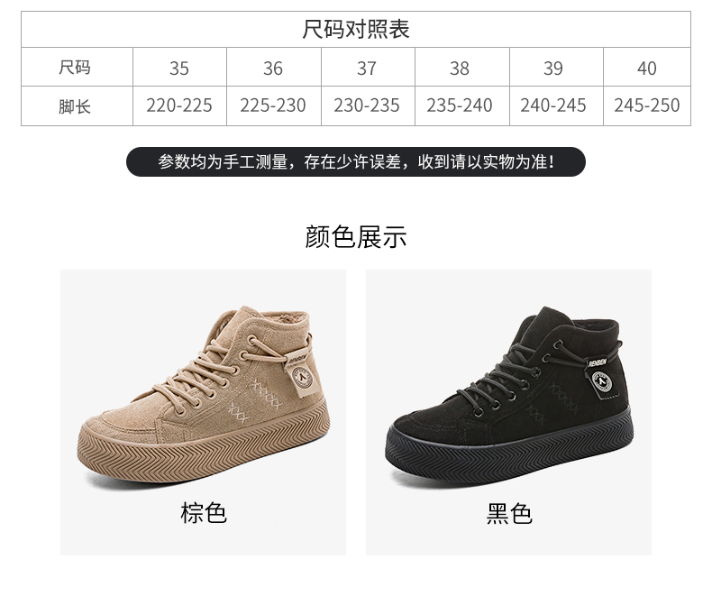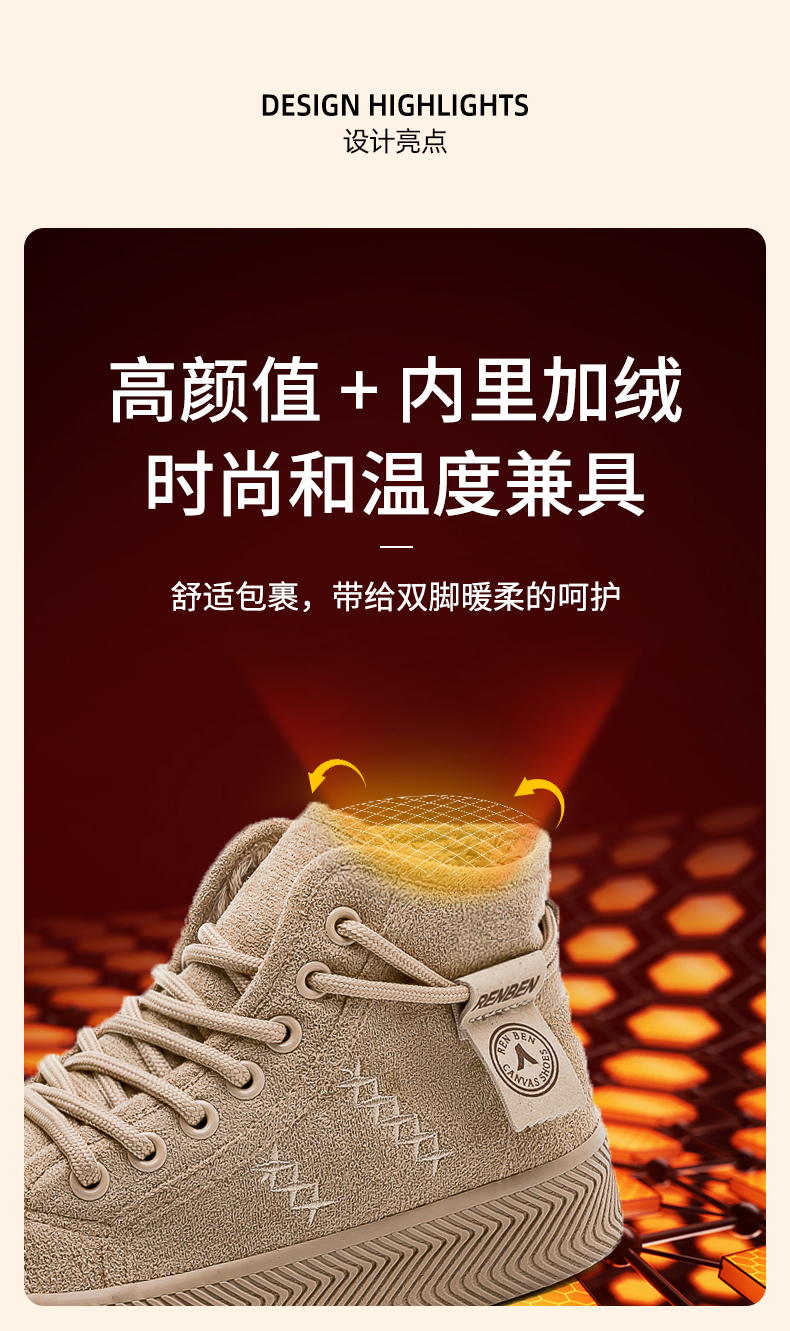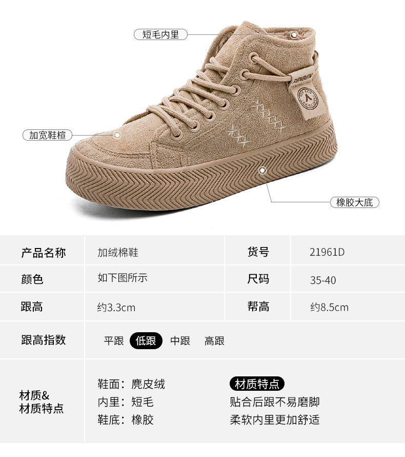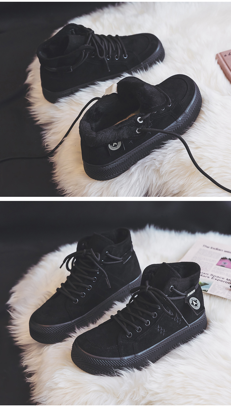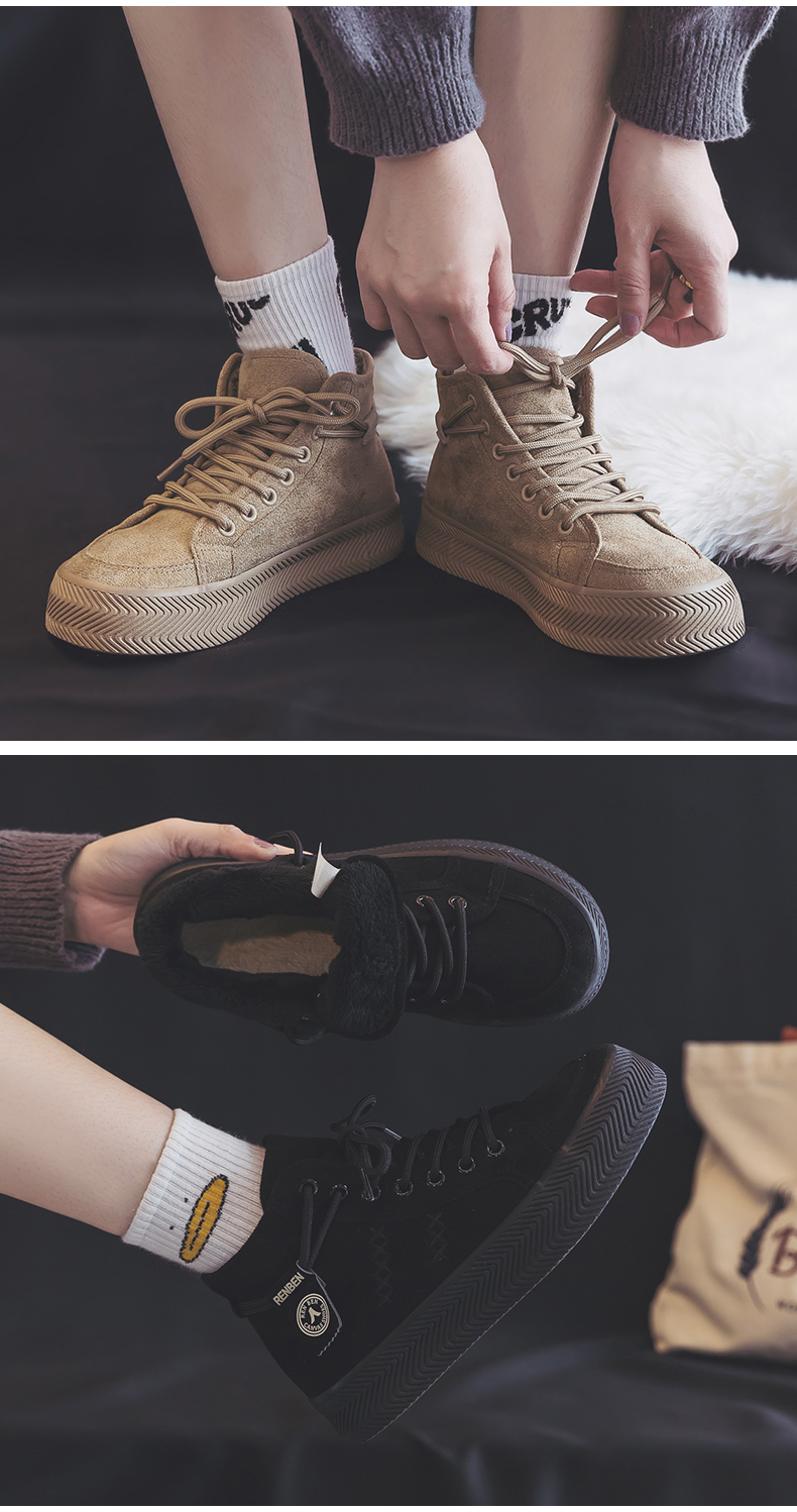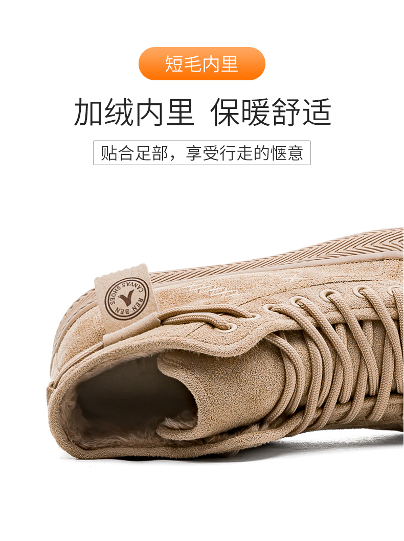 Renben Official Flagship Store Genuine High-Top Women's Shoes with Fleece 2025 New Women's Shoes Thick-Soled Winter Warm Double Cotton Shoes