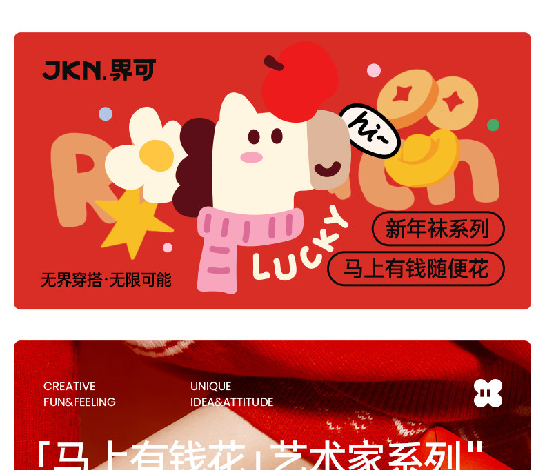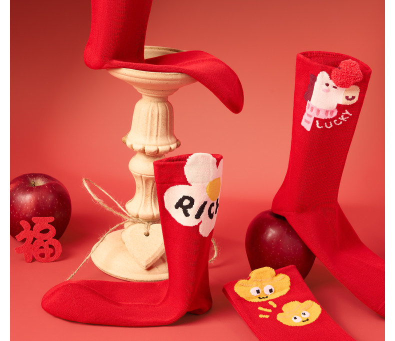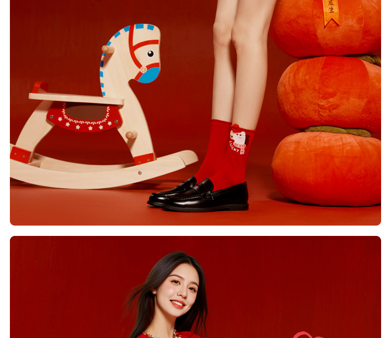 Jkn Year of the Horse Zodiac Year Red Socks Women's Autumn and Winter Mid-Calf Socks Men's 2026 New Year Gift Box Cute Long Socks Cotton