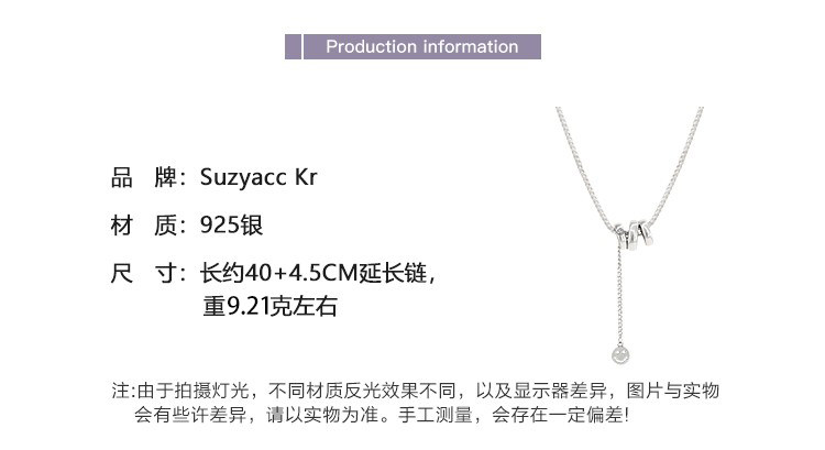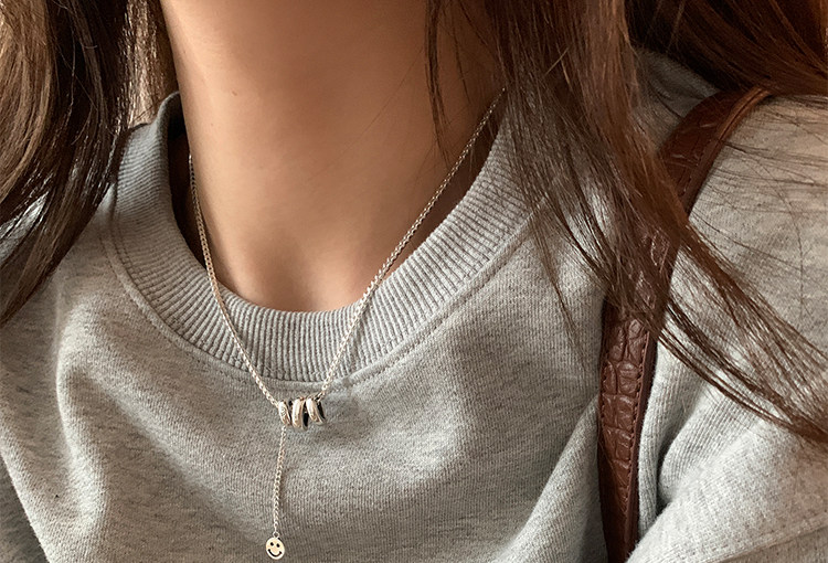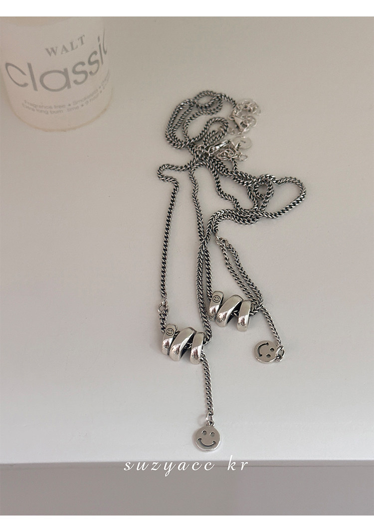 Suzyacc Kr Pure Silver Wave Pattern Smiley Face Pendant Necklace 2024 New Popular Niche Heavy-Duty Sweater Chain for Women