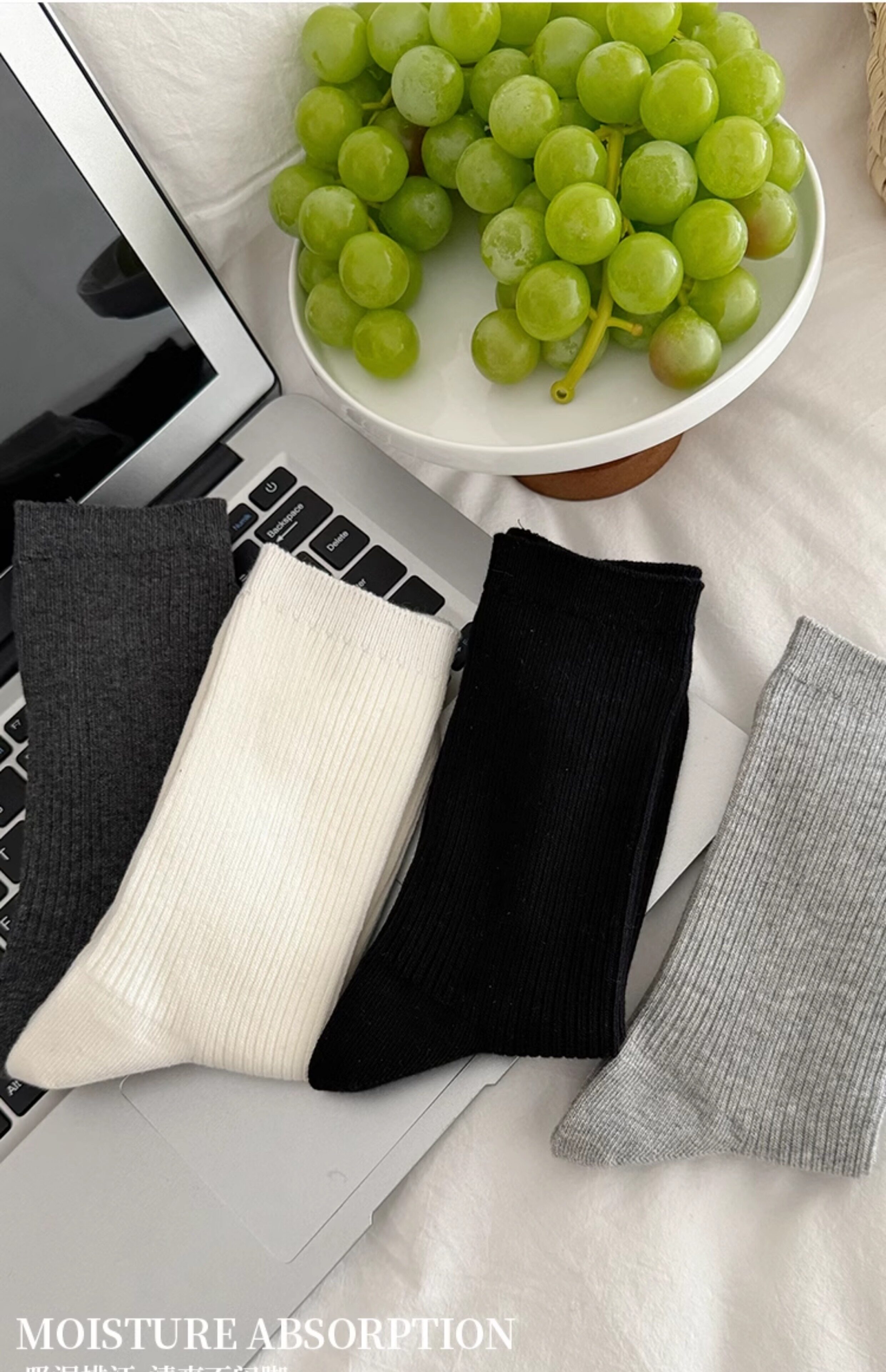 White Socks for Women, Spring and Autumn Mid-Calf Socks, Pure Cotton, 2026 New Popular Long Socks, Japanese Style Gray Slouch Socks for Autumn