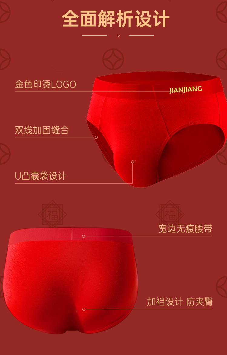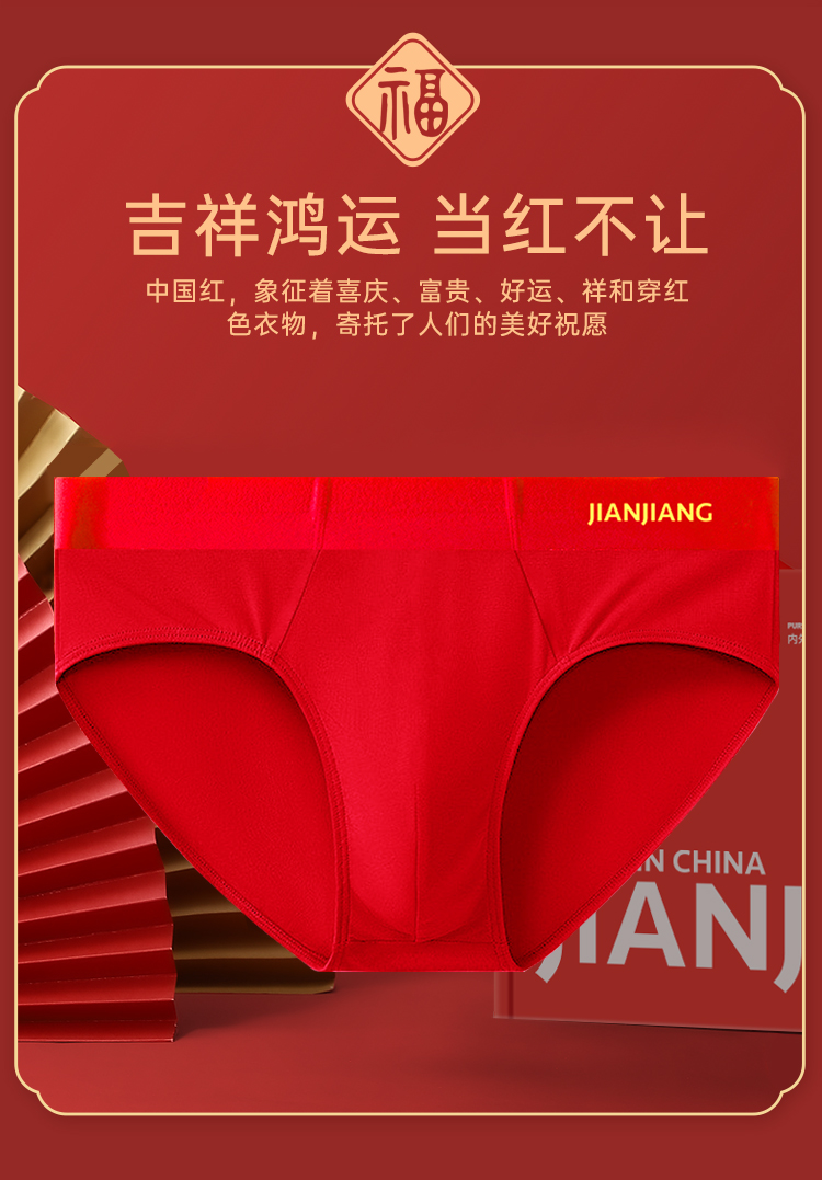 Athlete's Zodiac Year Men's Underwear, Pure Cotton Crotch, Antibacterial, Groom's Wedding Red Gift, 2025 Year of the Snake Briefs