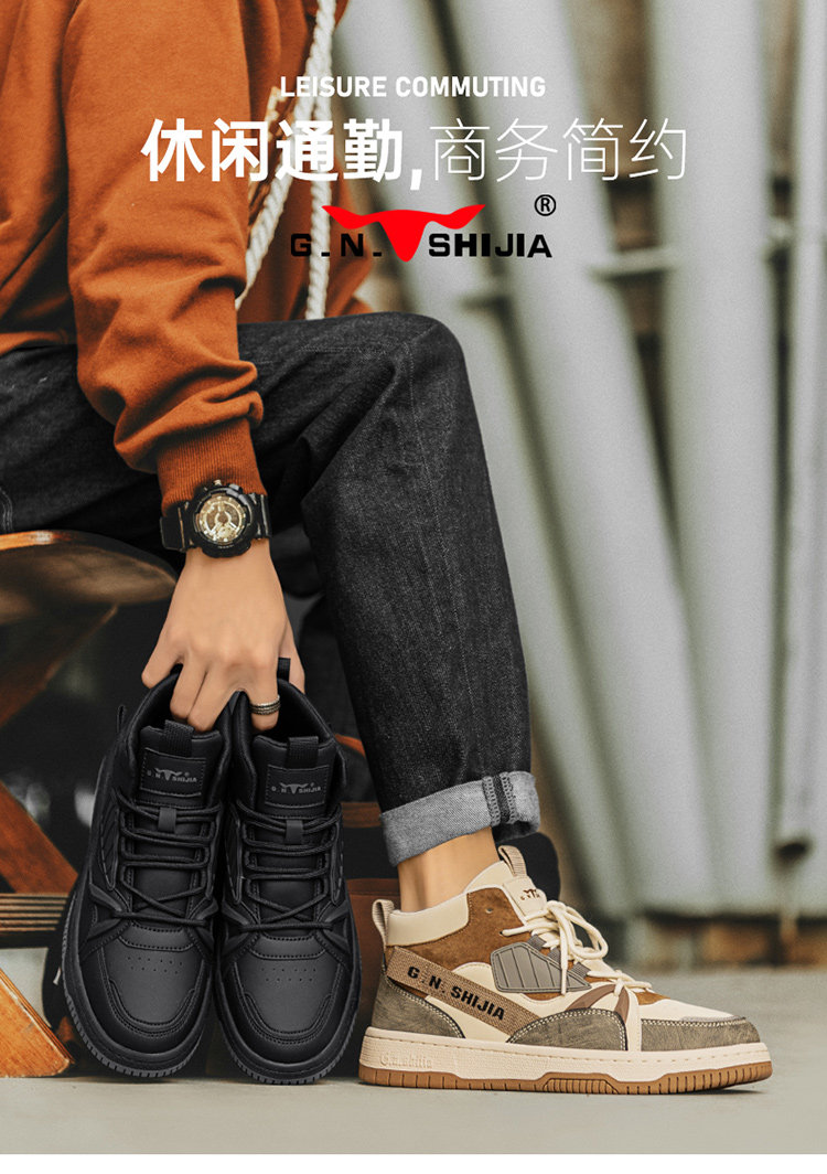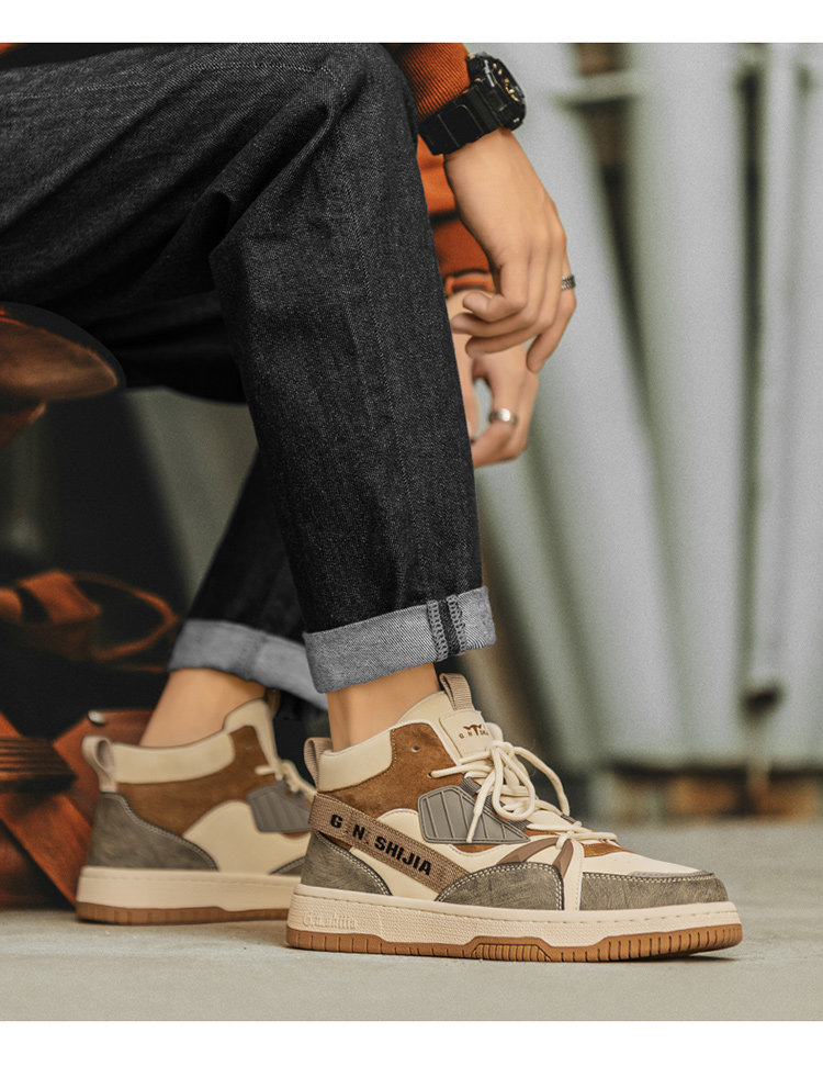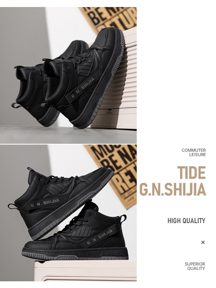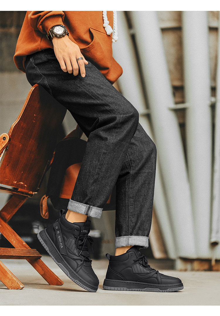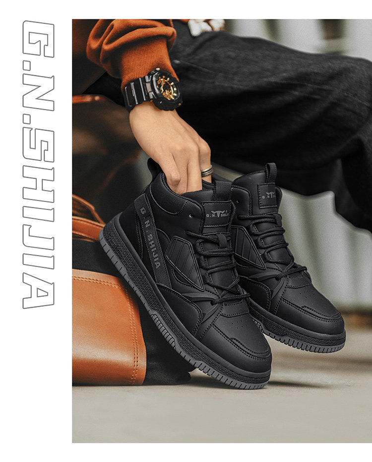 Bull Family Men's Shoes Winter 2025 New High-Top Genuine Leather Sneakers Air Force One Sports Casual Fleece-Lined Shoes