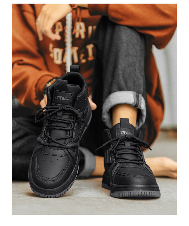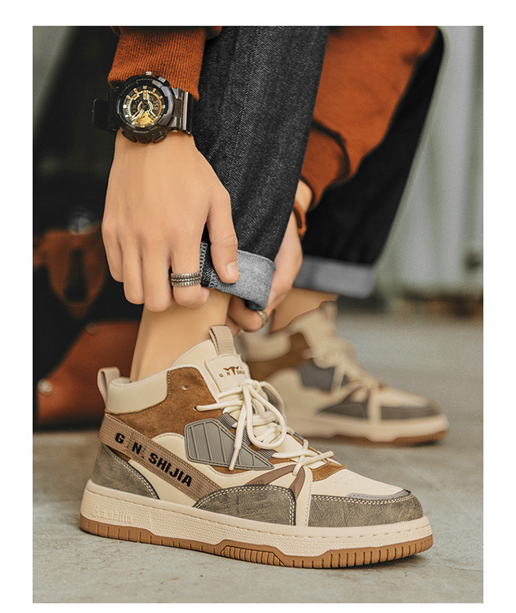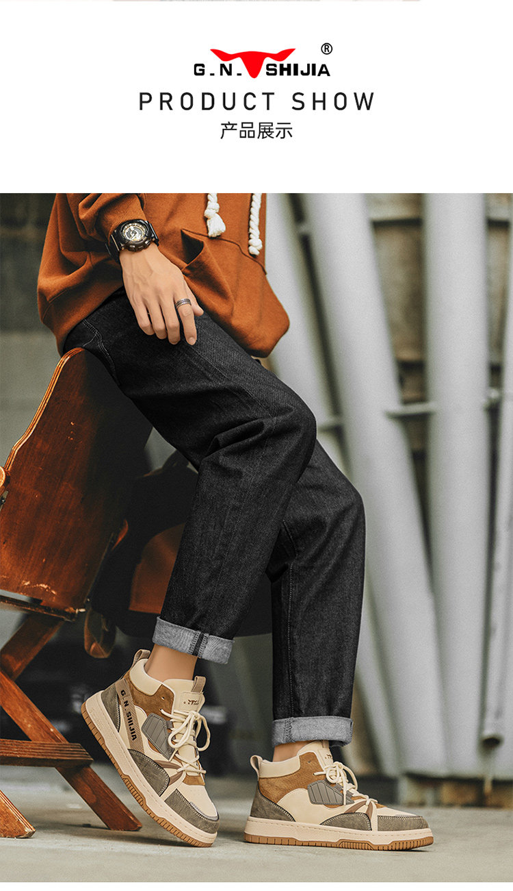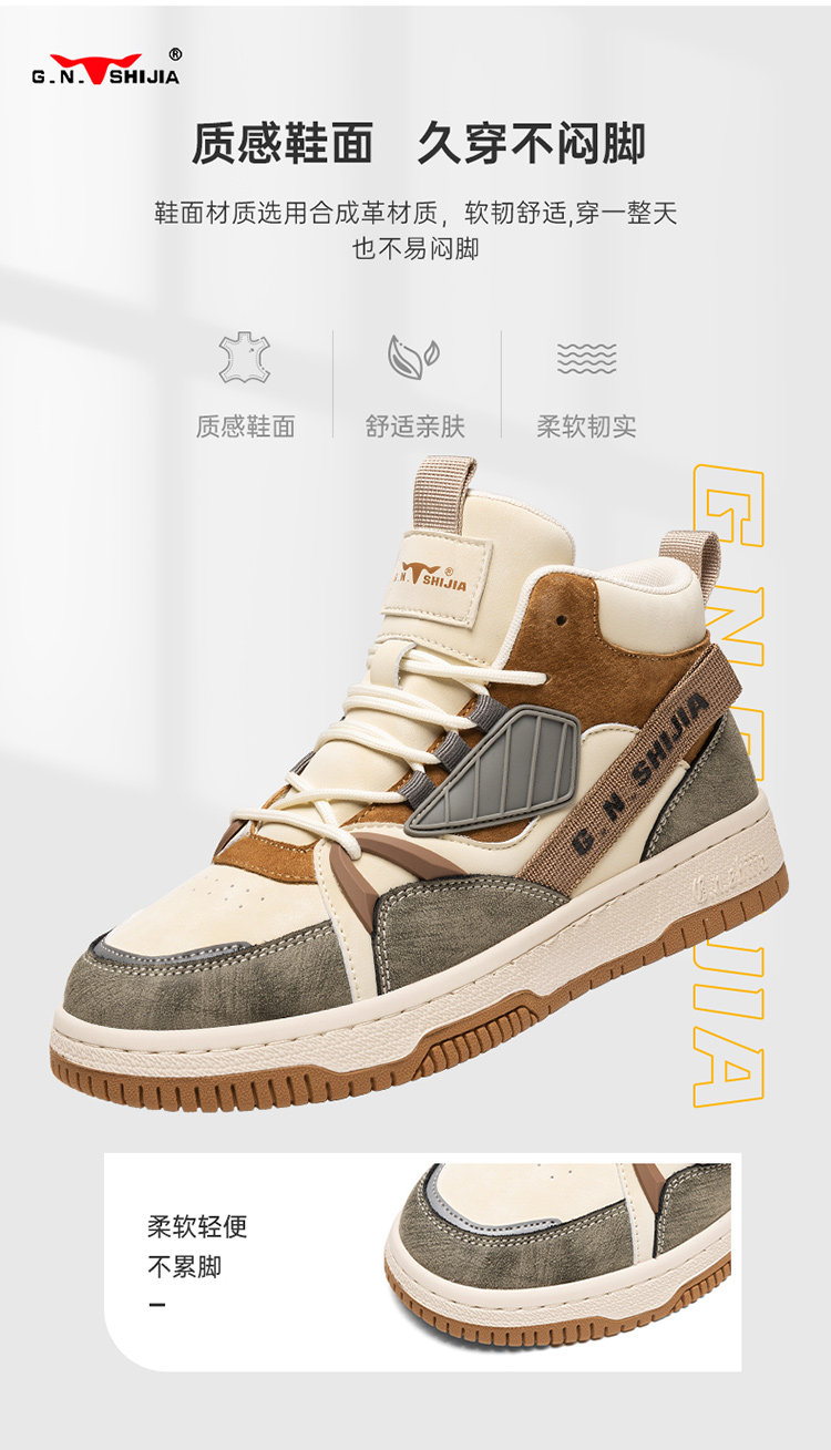 Bull Family Men's Shoes Winter 2025 New High-Top Genuine Leather Sneakers Air Force One Sports Casual Fleece-Lined Shoes