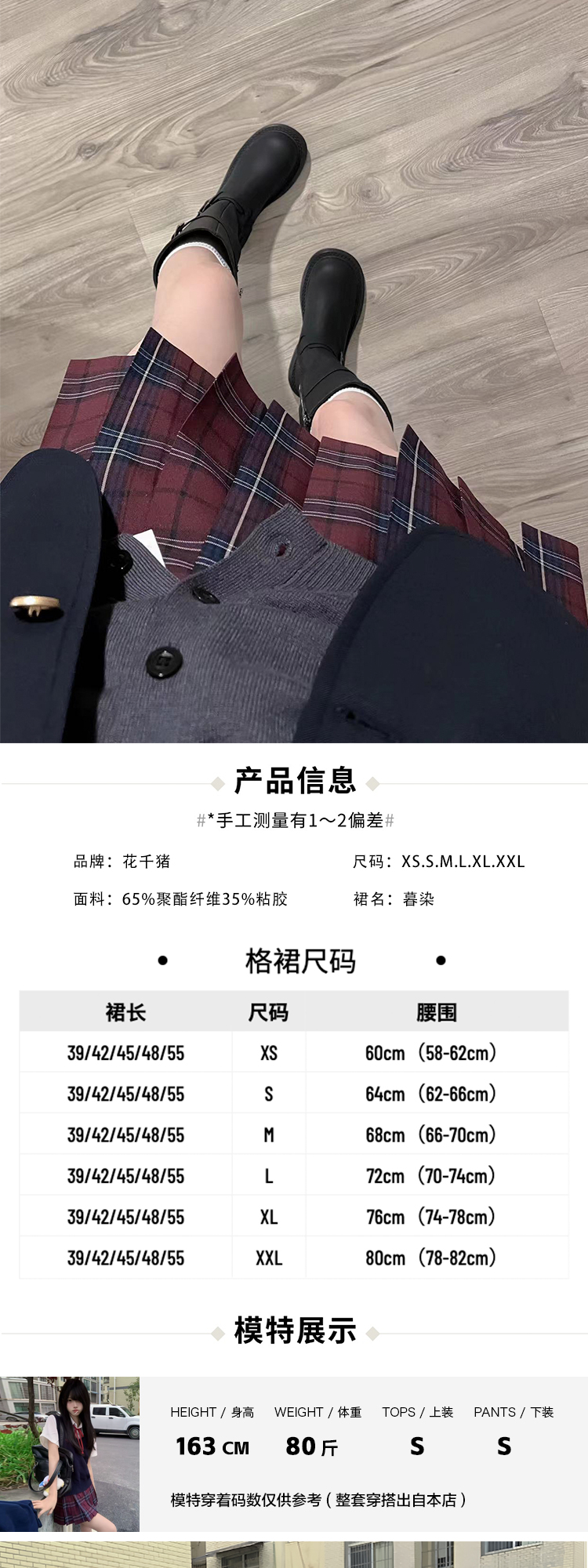 Hua Qianzhu Original Evening Plaid Skirt Jk Uniform School Style Pleated Skirt Red Plaid Versatile Jk Skirt