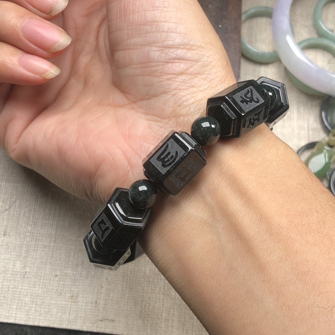 种质:乌鸡种。品名:手串。尺寸13*16.5mm。无明显瑕疵。实物如图,产品是原矿,图片未经任何优化,无美颜苹果,手机实物拍摄。