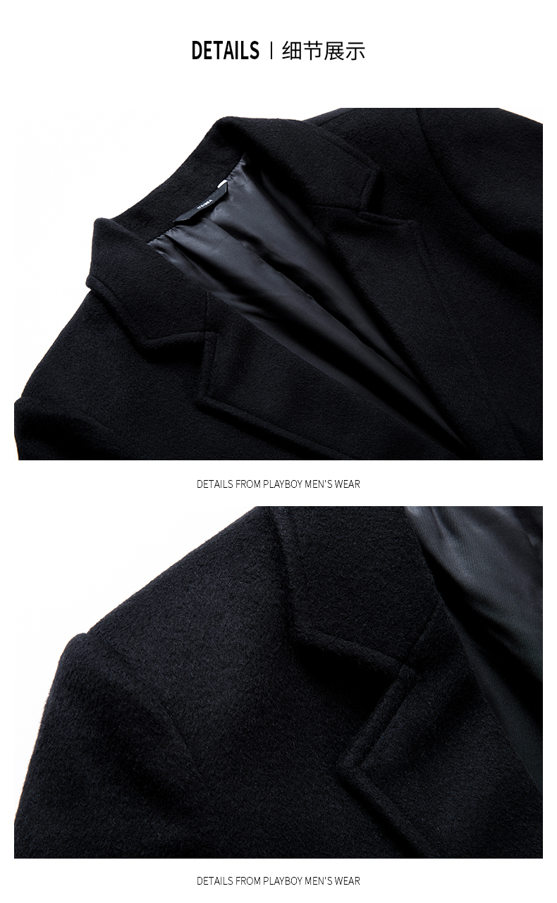 Romon Woolen Coat Men's 2025 Winter Fleece-Lined Thickened Woolen Jacket Spring and Autumn Business Casual Trench Coat