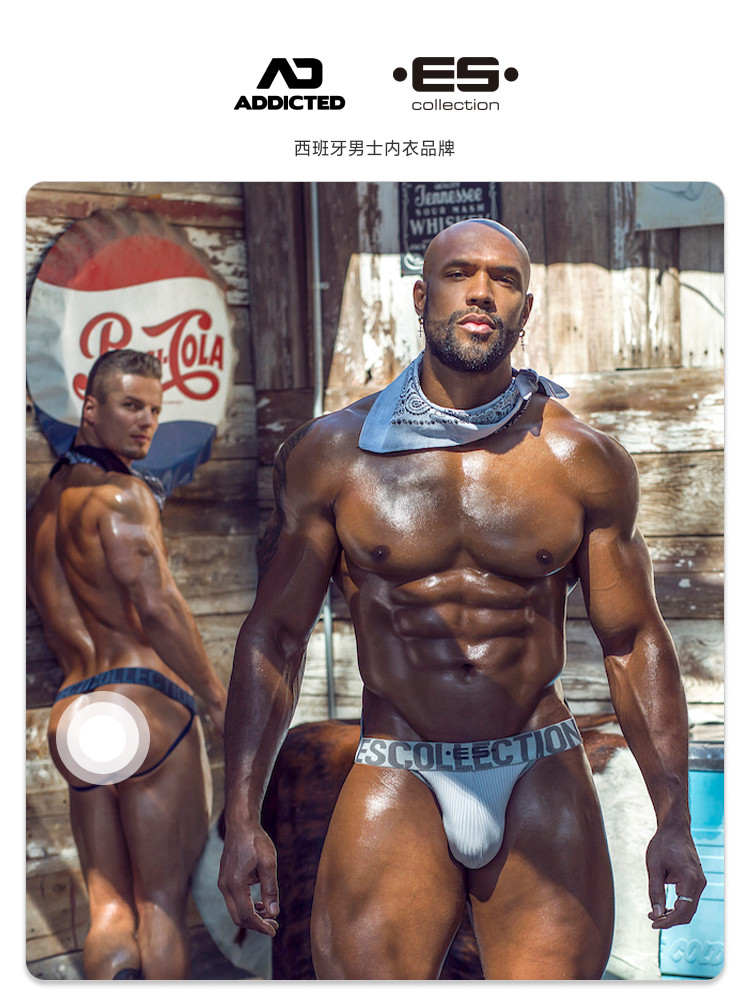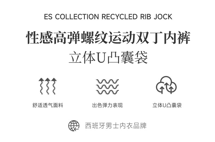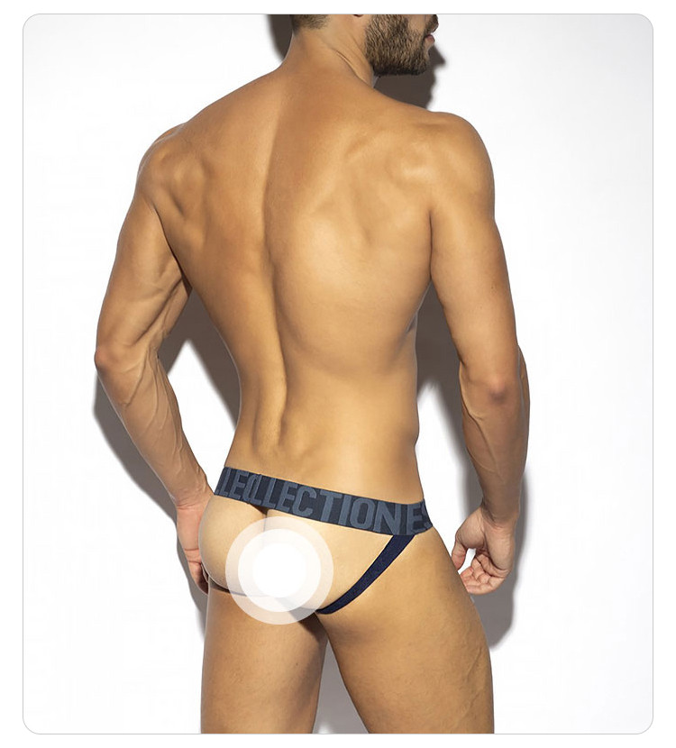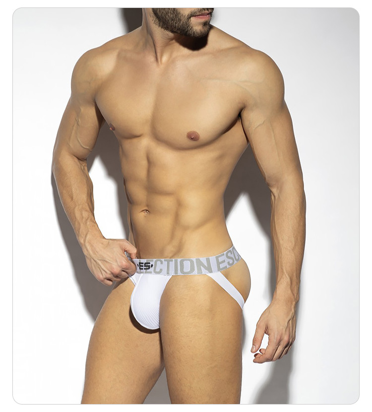 Es Collection Sexy Low-Rise Men's Double Thong Underwear with Three-Dimensional U-Convex Pouch and Ribbed Stripes Un494