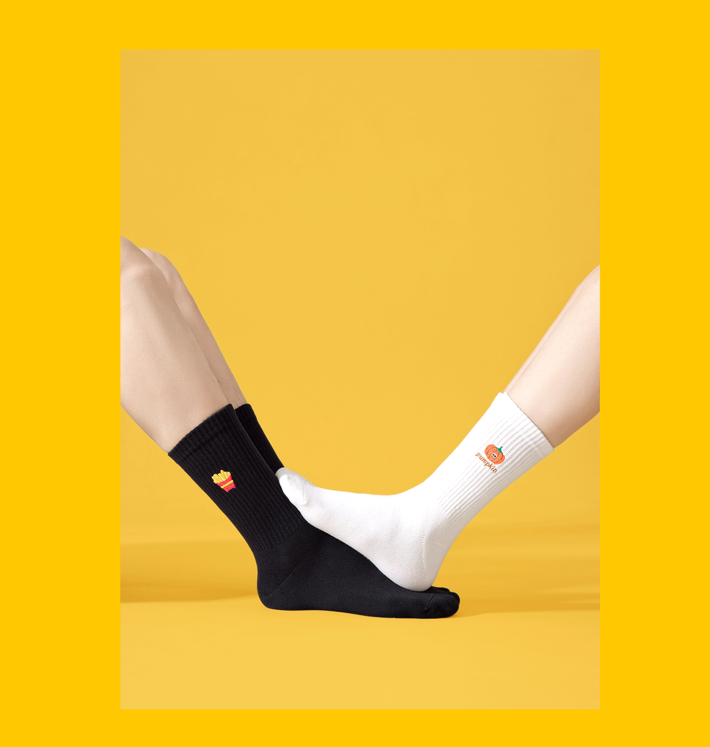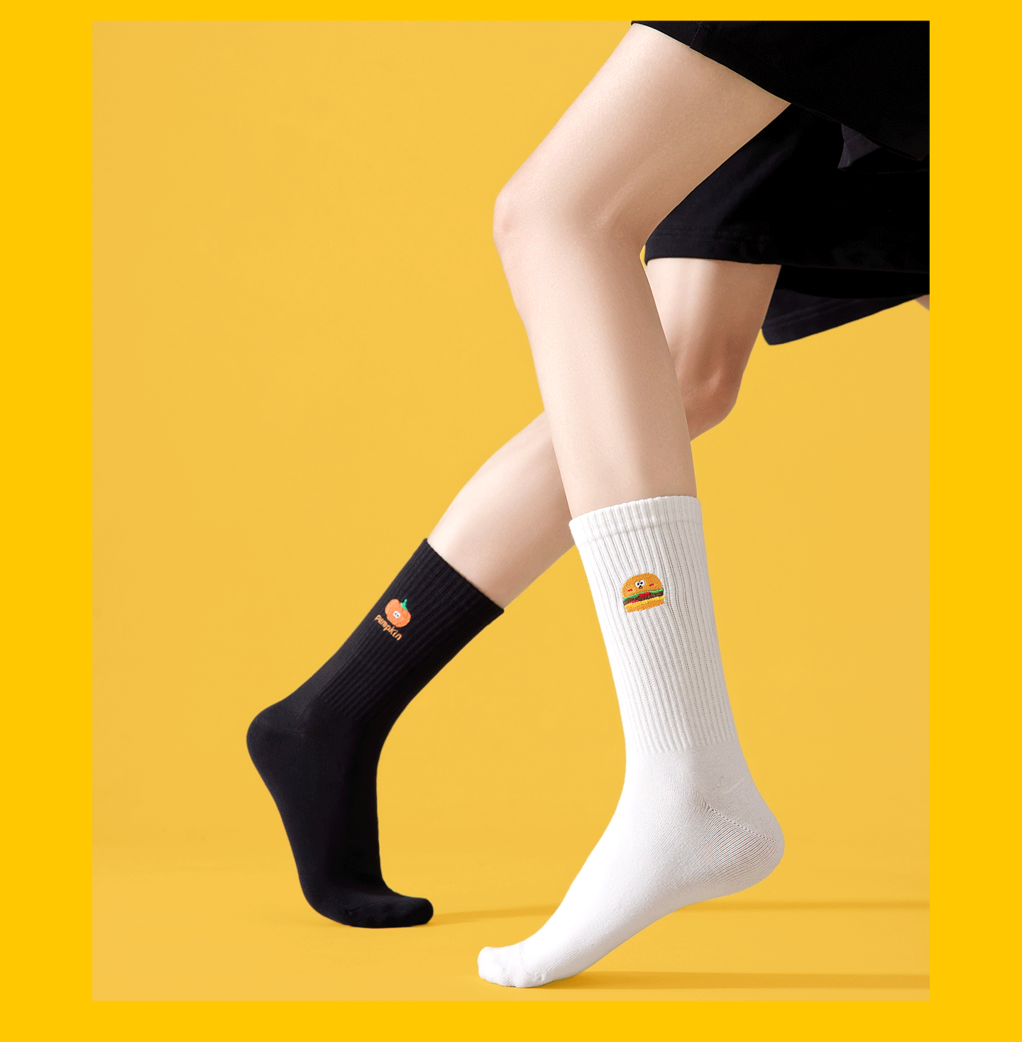 Wookoo Socks for Men, Mid-Calf, Personalized Embroidery, Black Casual Sports Long Socks, White Women's Autumn and Winter High Cotton Couple Style