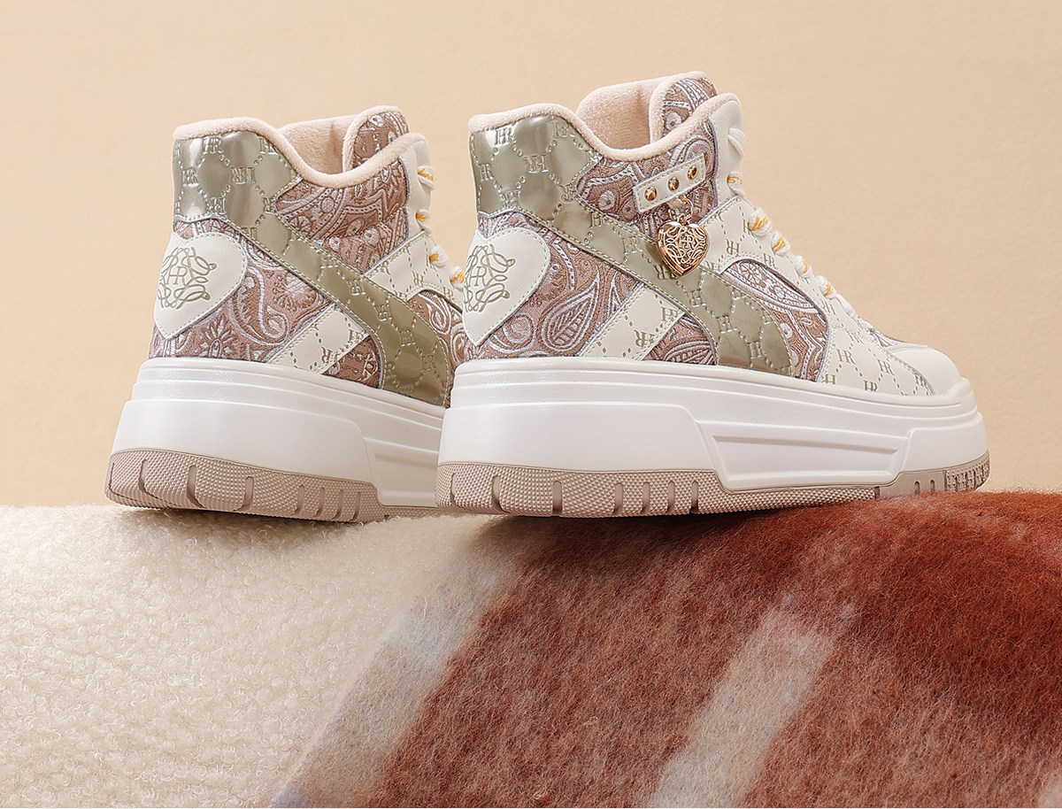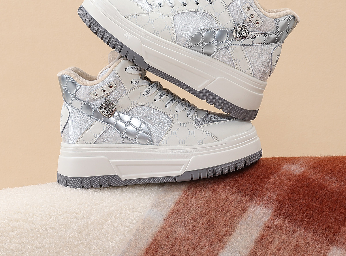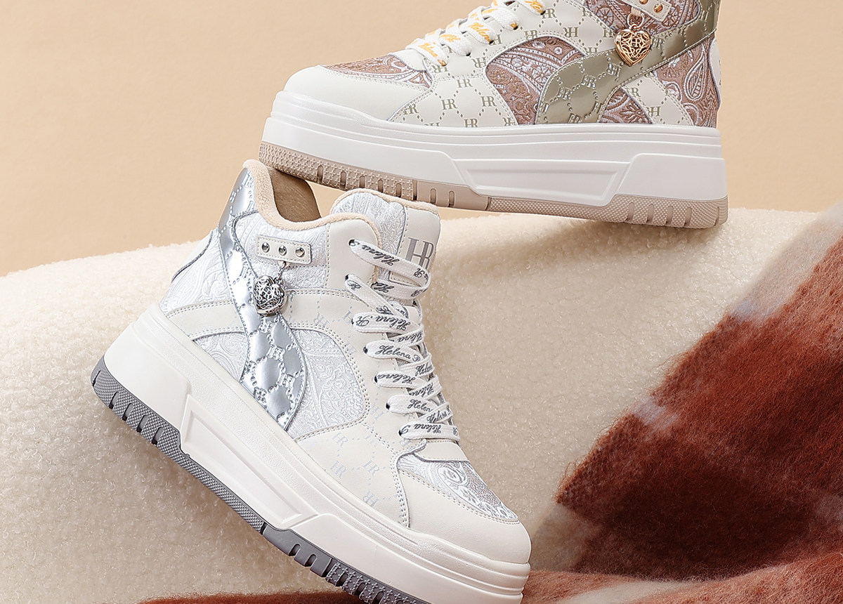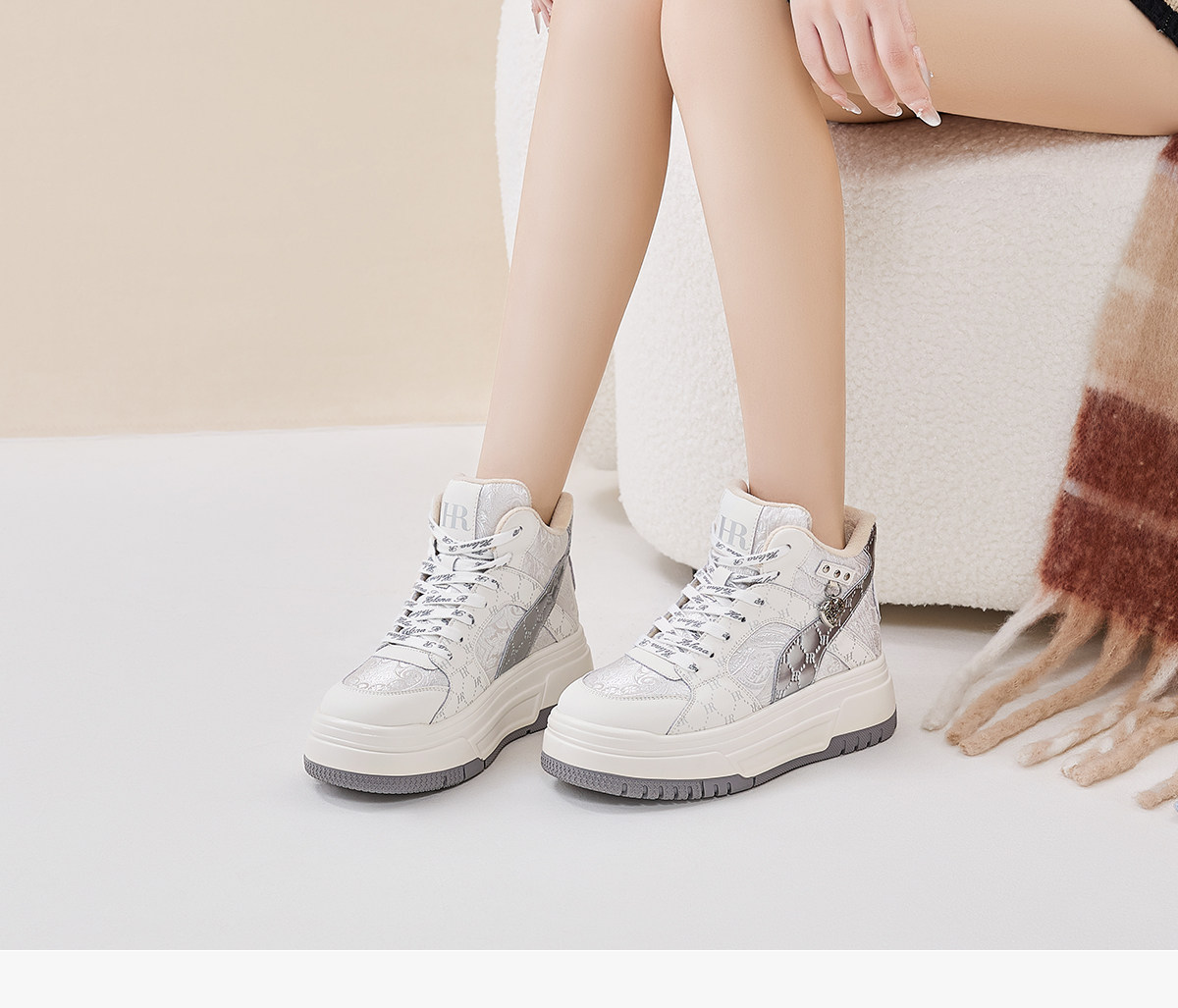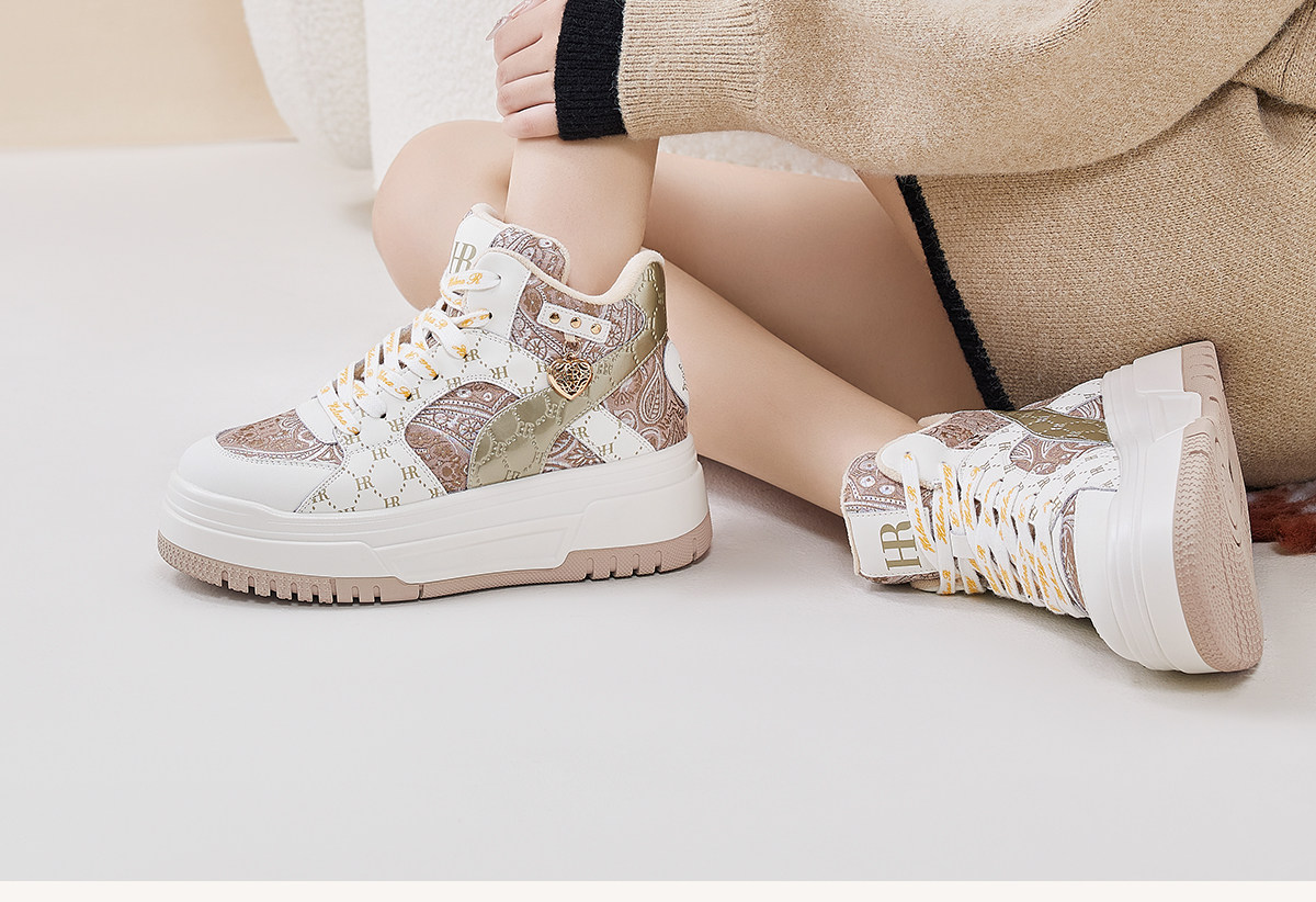 Hr Helena Sneakers 2026 Autumn and Winter New High-Top Shoes New Chinese Style Thick-Soled Casual Women's Shoes with Fleece Lining and Thickening