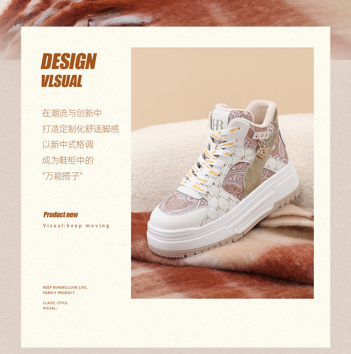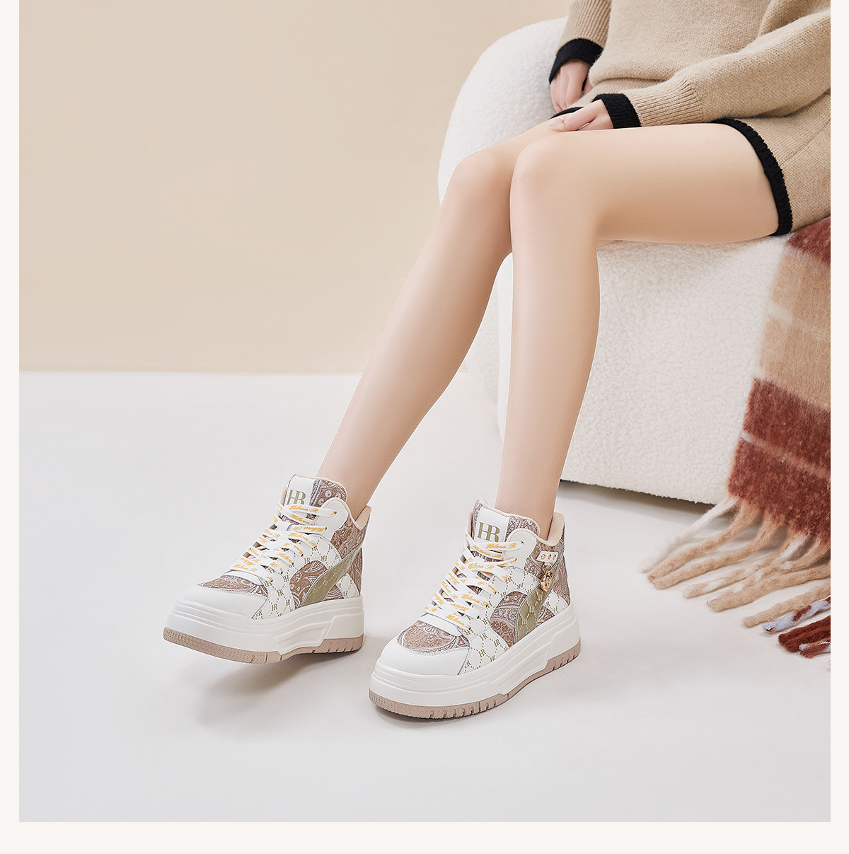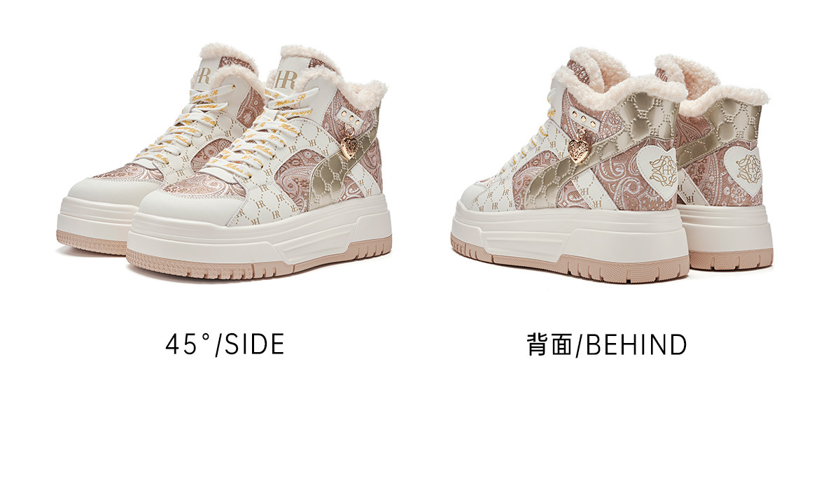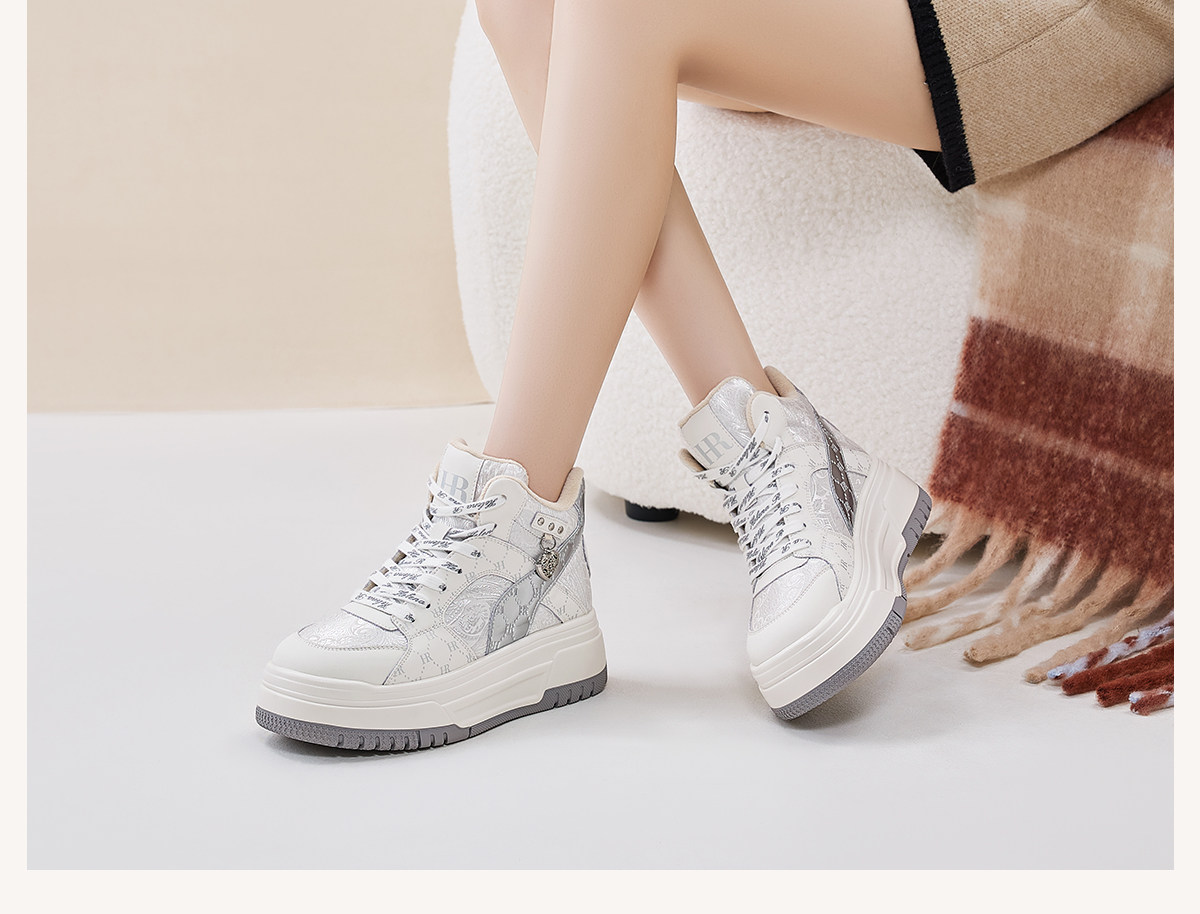 Hr Helena Sneakers 2026 Autumn and Winter New High-Top Shoes New Chinese Style Thick-Soled Casual Women's Shoes with Fleece Lining and Thickening