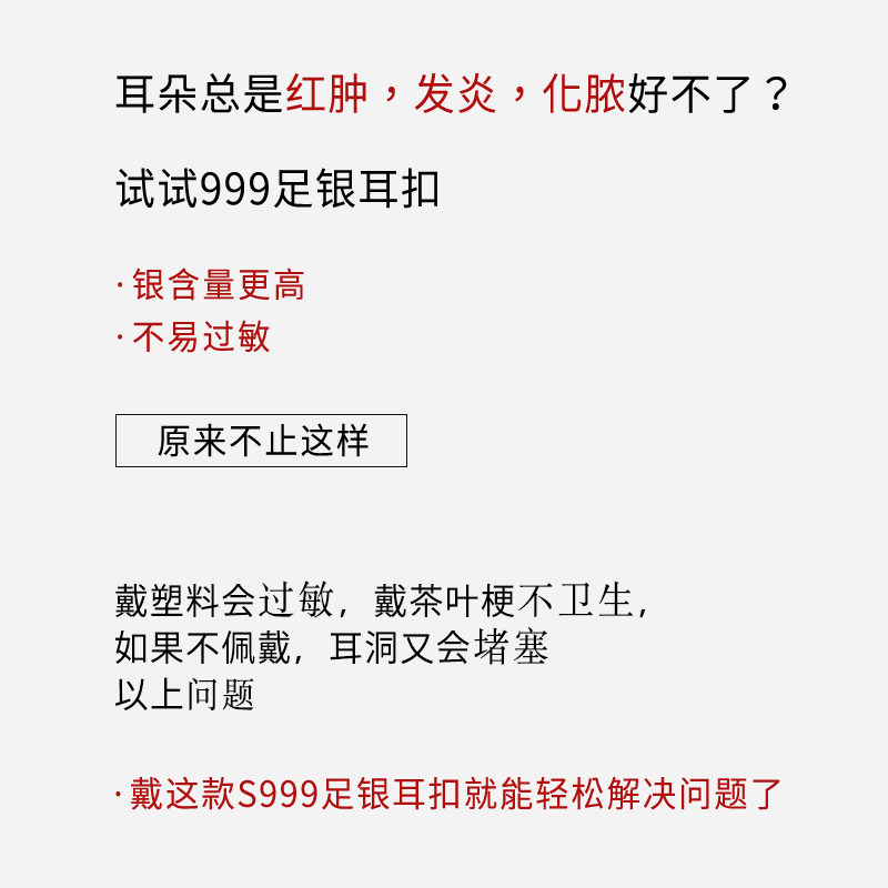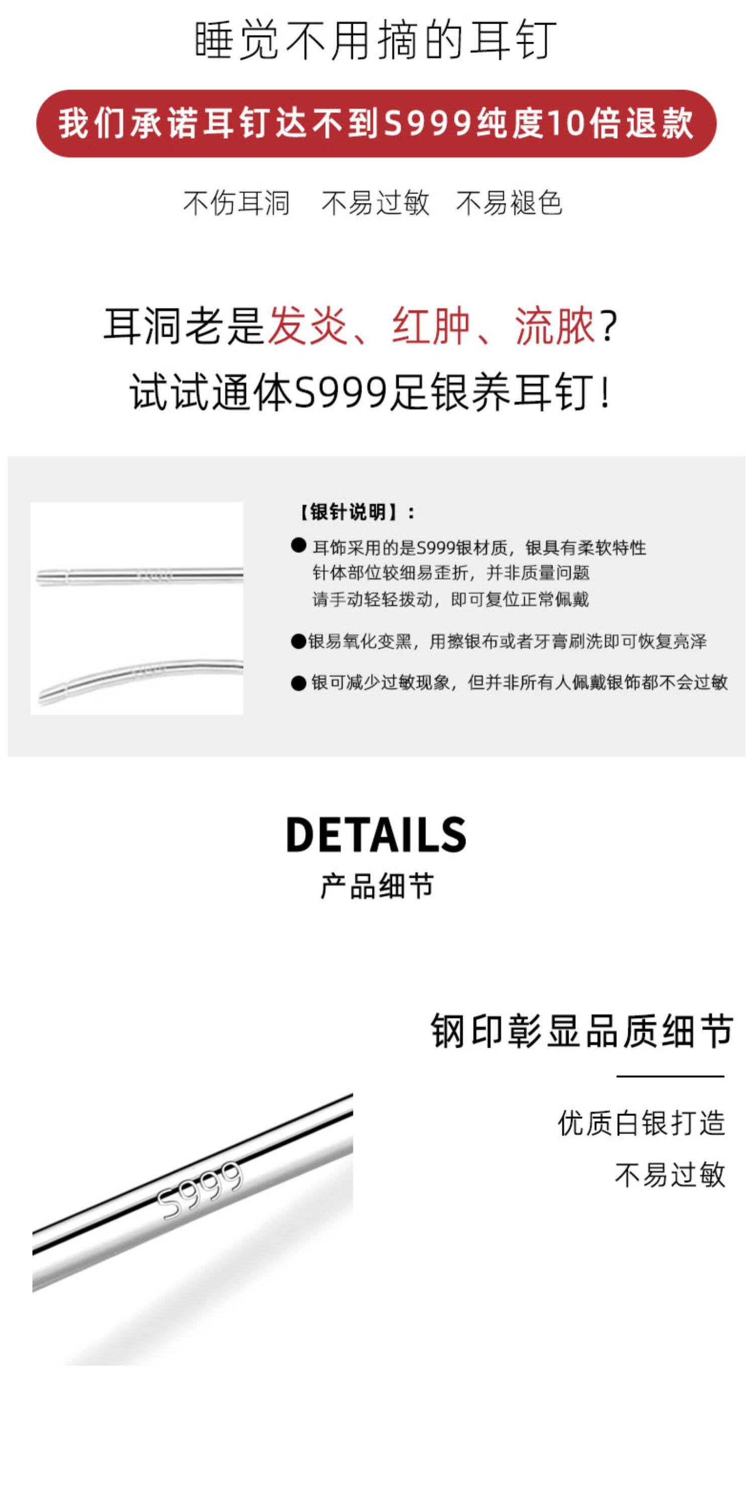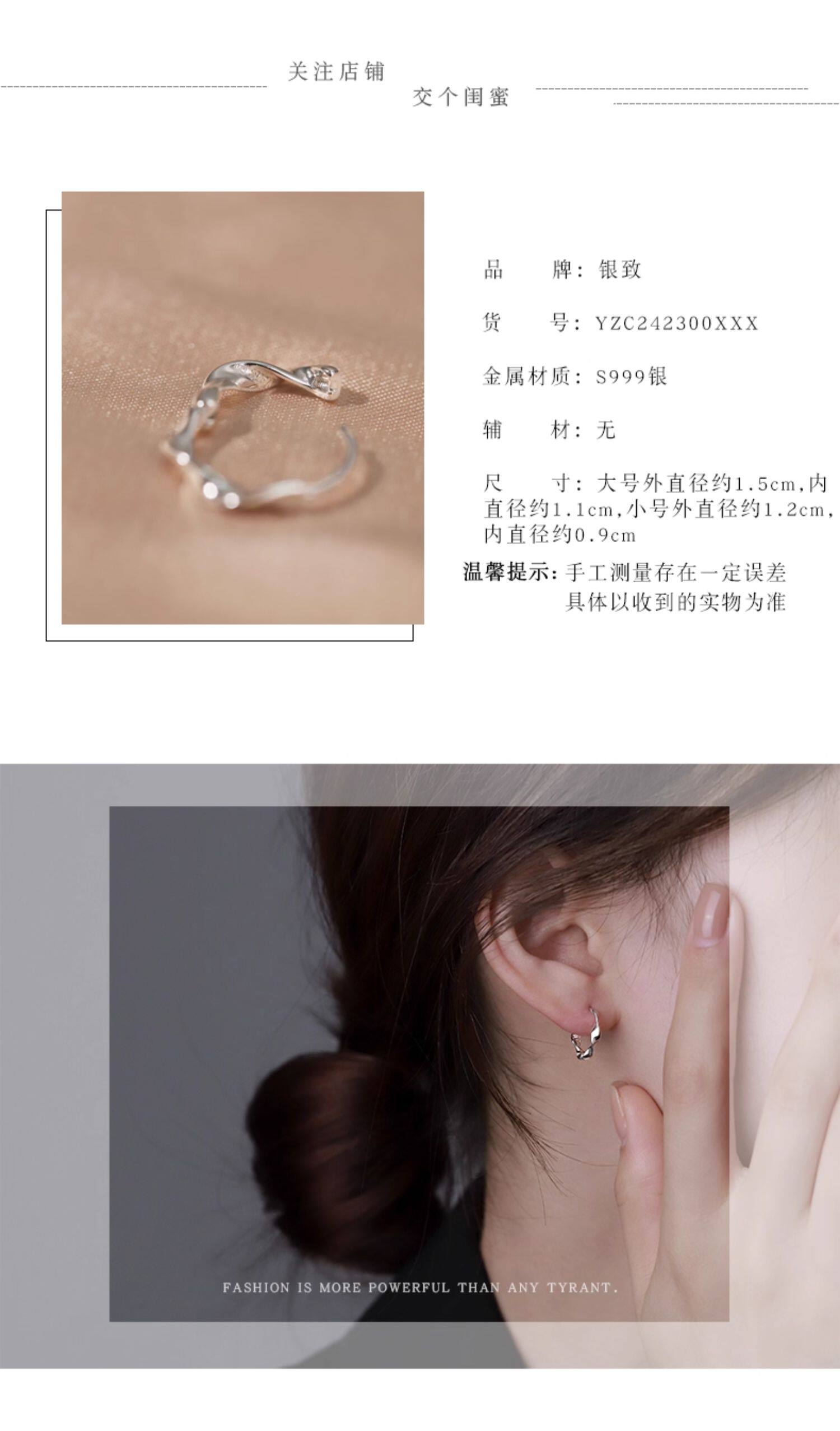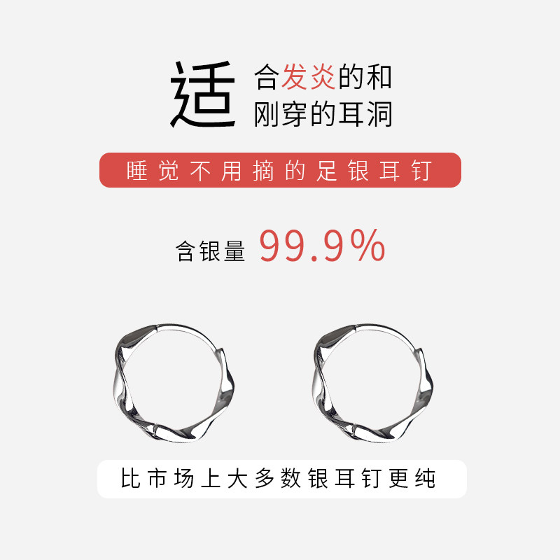 S999 Pure Silver Ear Piercing Earrings, New Plain Hoop Popular Style Ear Studs for Women, No Need to Remove When Sleeping, High-End Niche Ear Accessories, Ear Clasps
