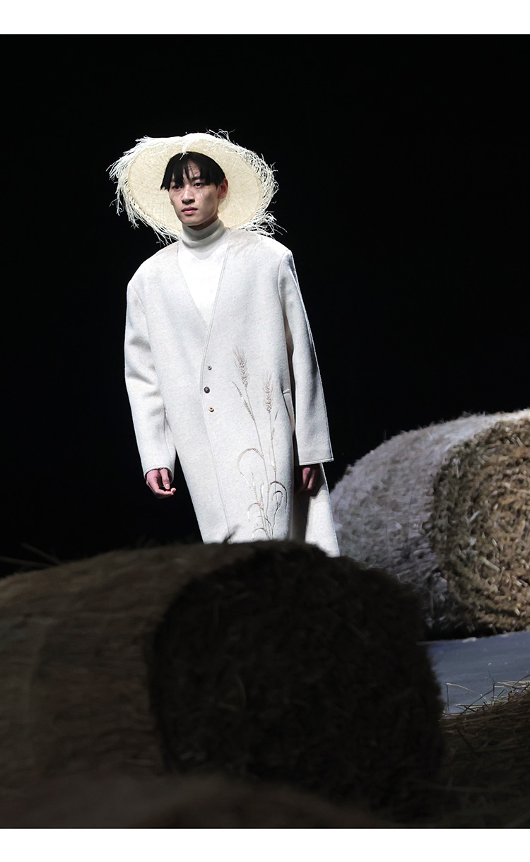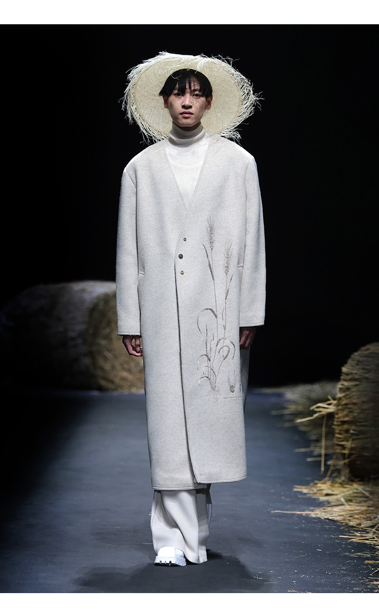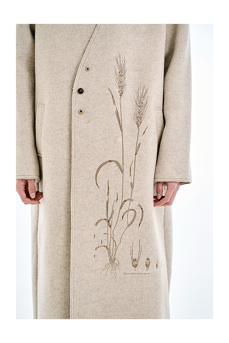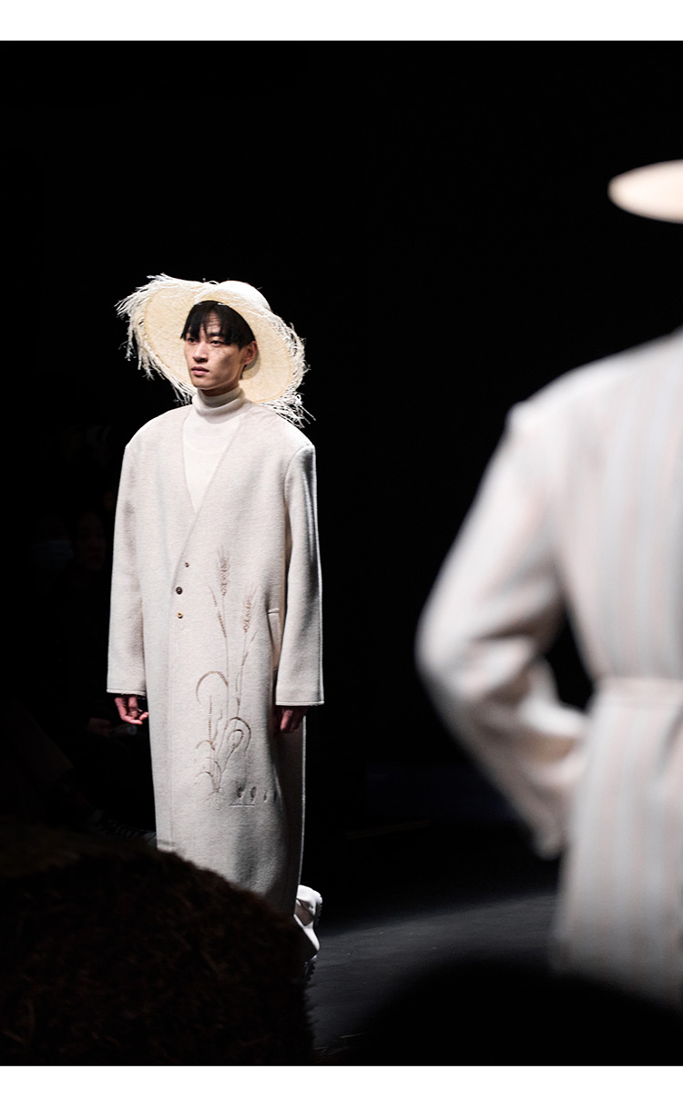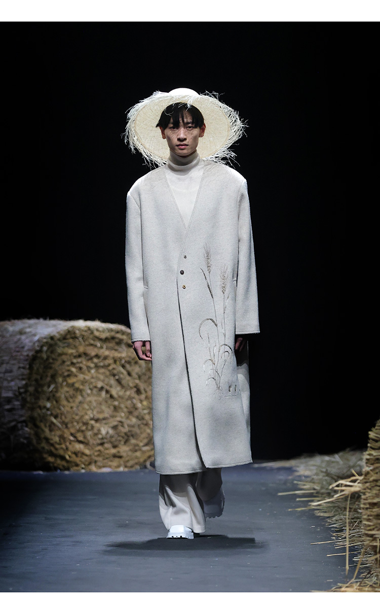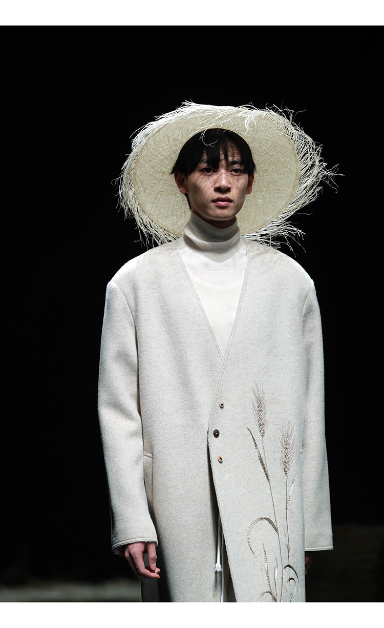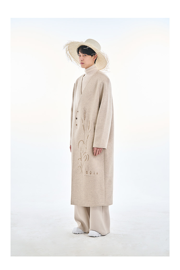 Cotton and Wool Coat with Traditional Chinese Style, Collarless, Plant Embroidery, Loose Fit, Original Design by Valley Youth for Men
