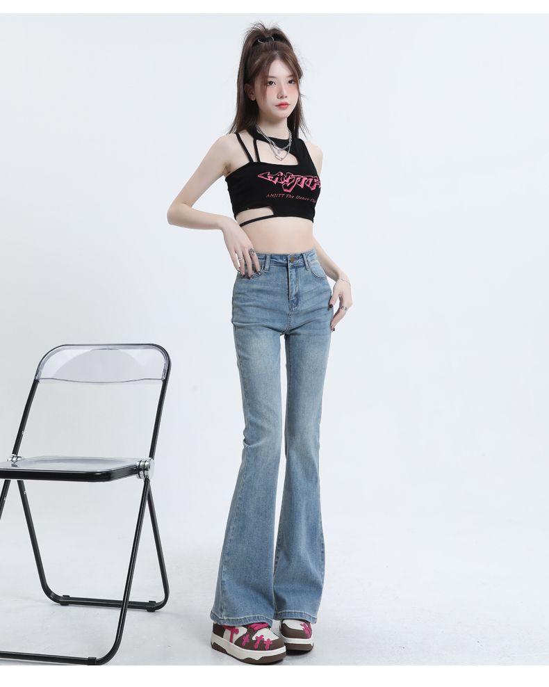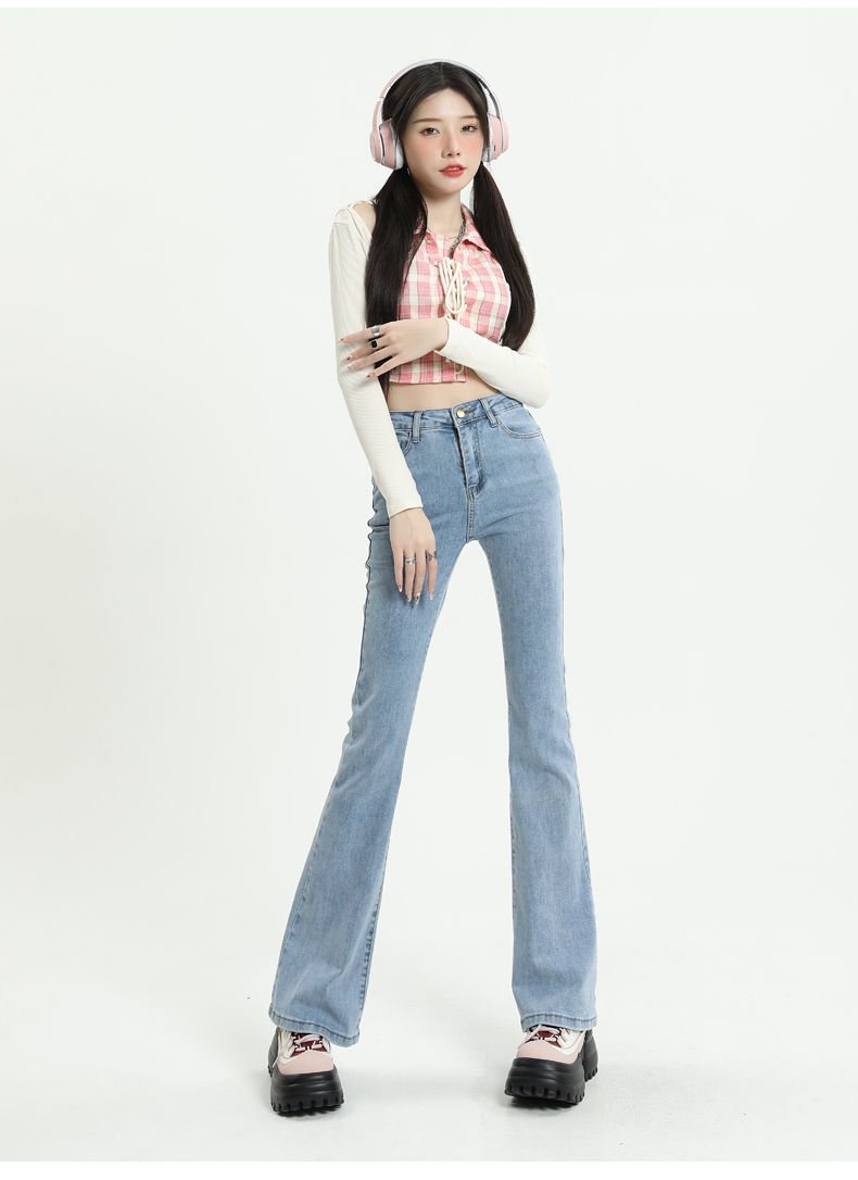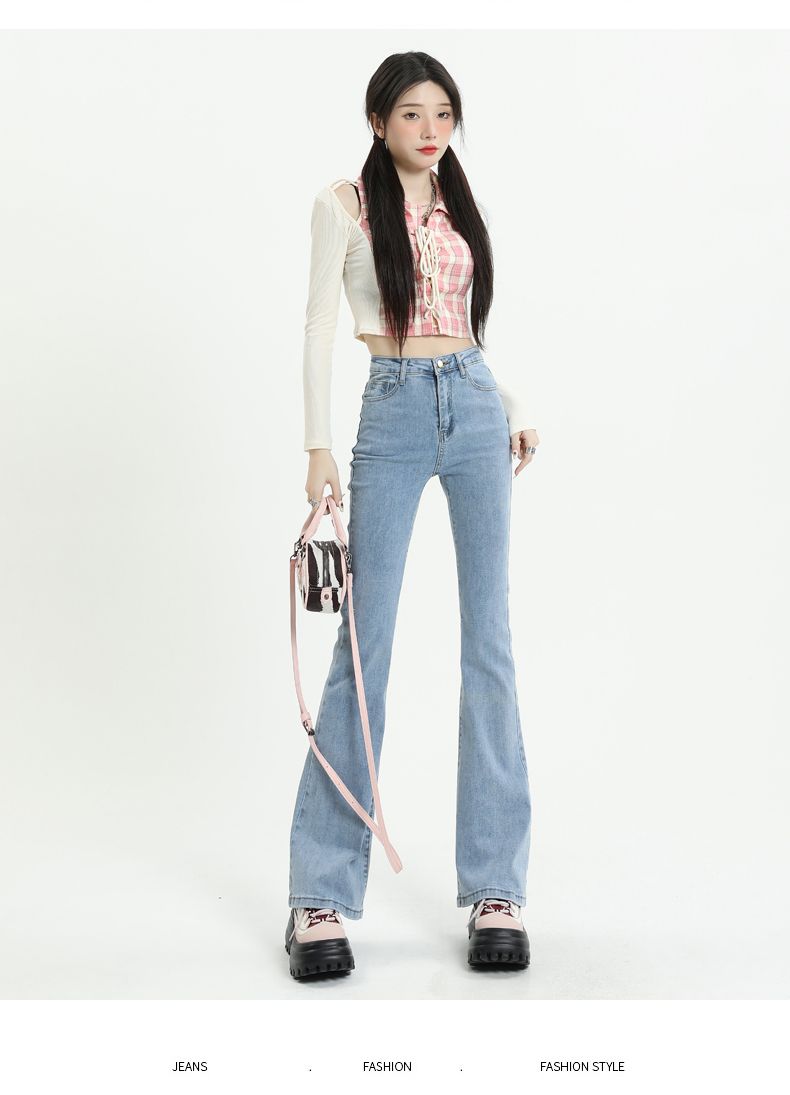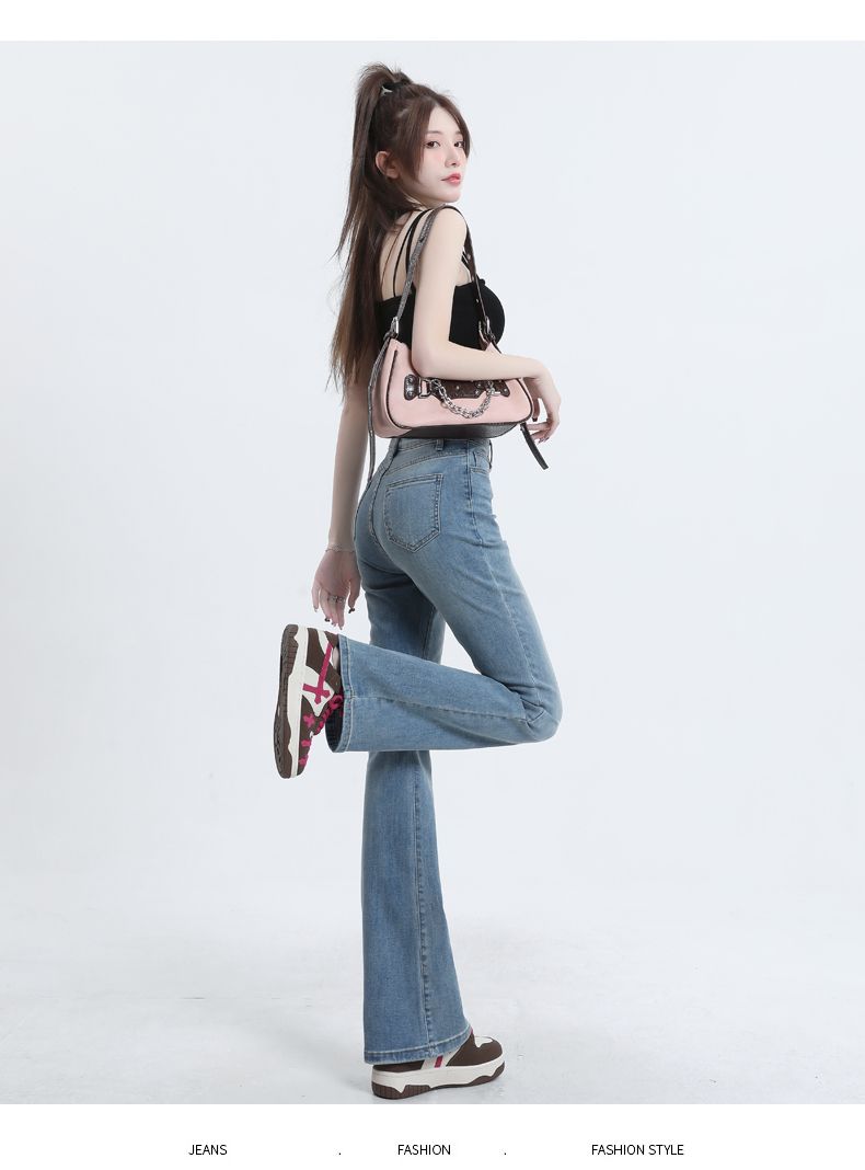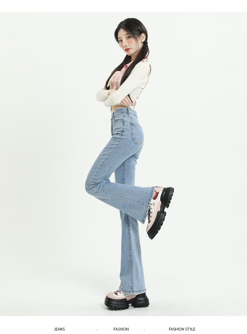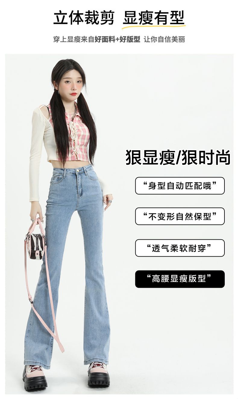 La Chapelle Light-Colored Flared Jeans for Women, Autumn and Winter 2025 New High-Waisted Fleece-Lined Slimming Bell-Bottom Pants