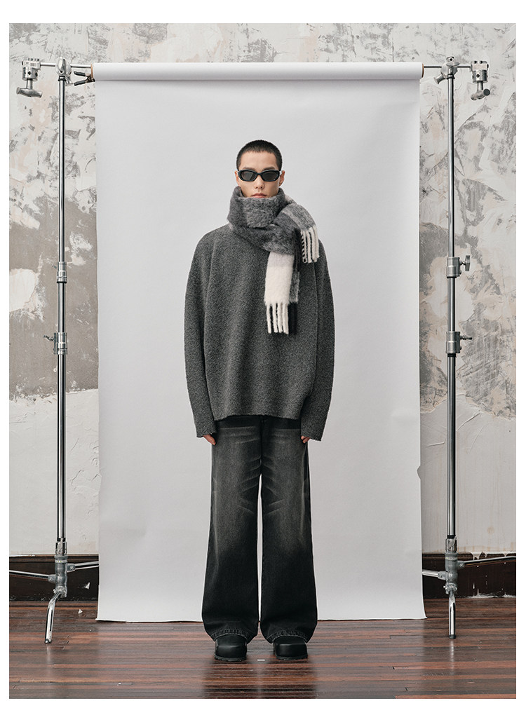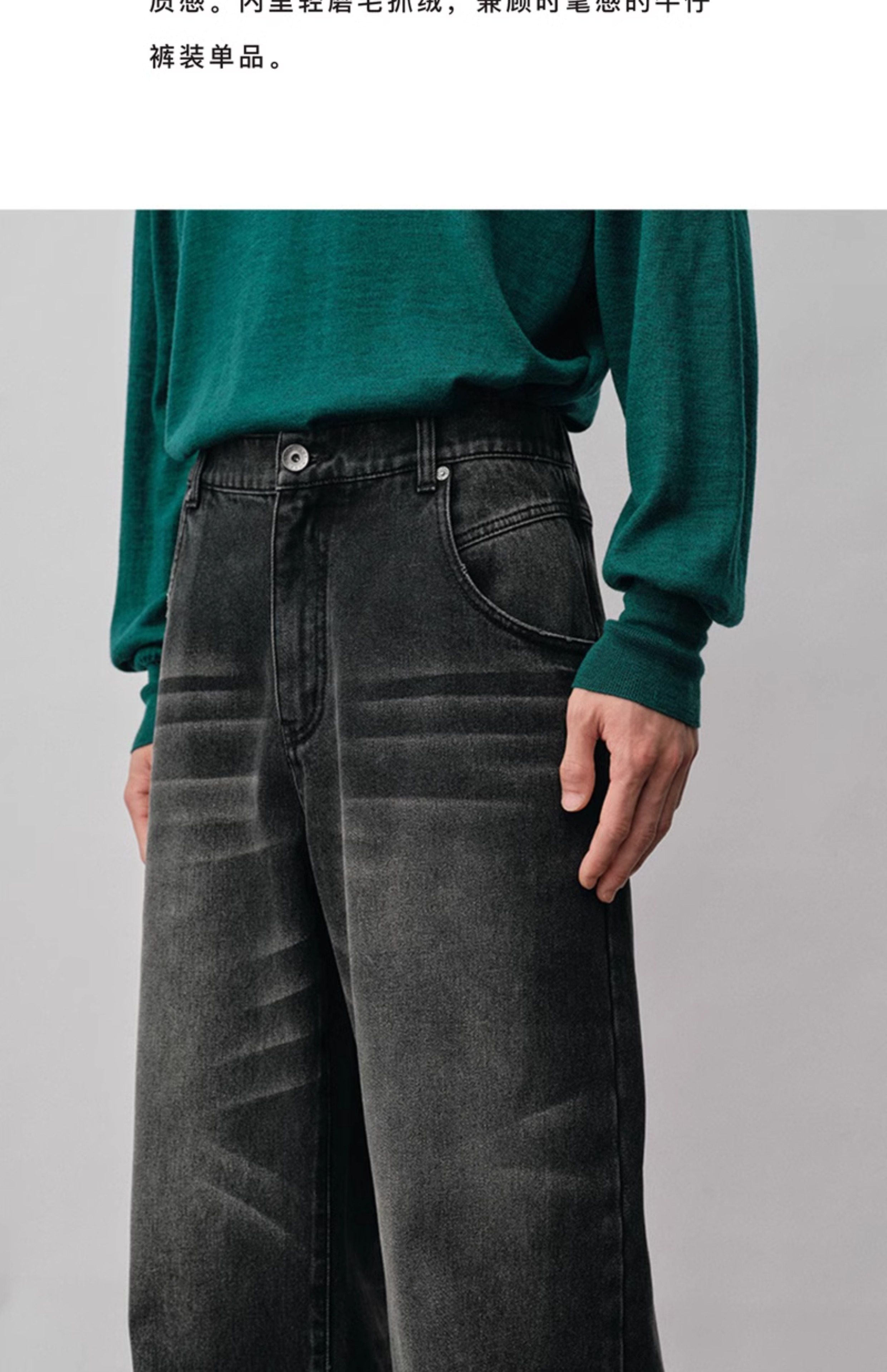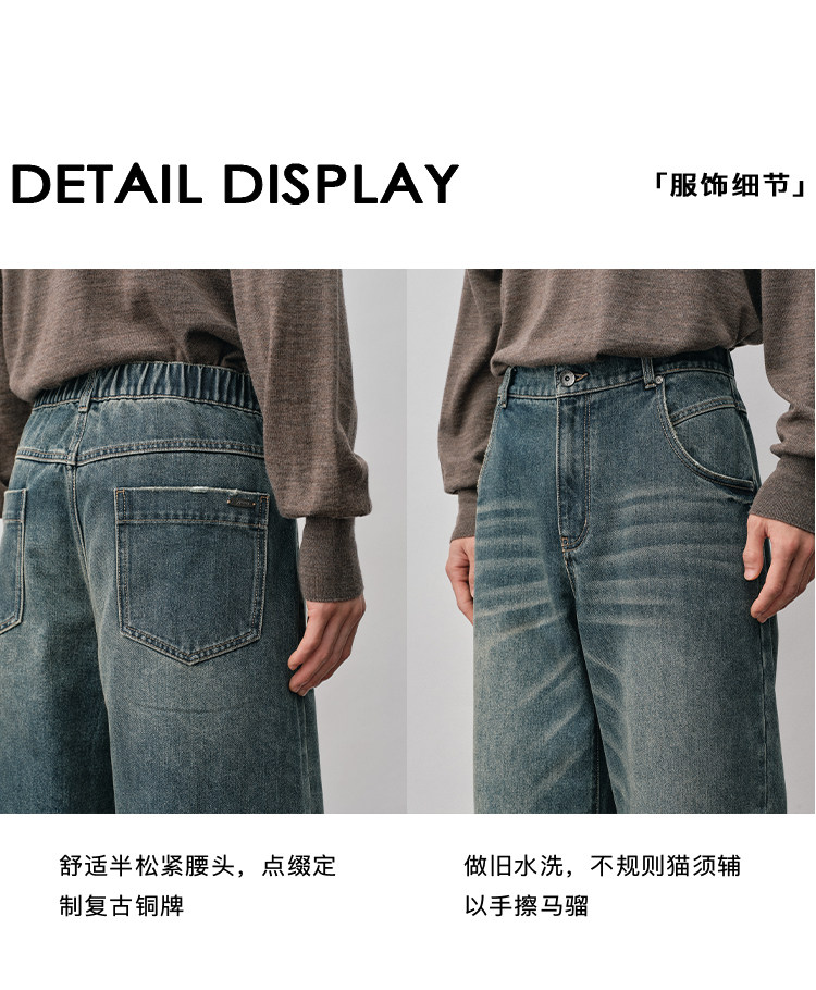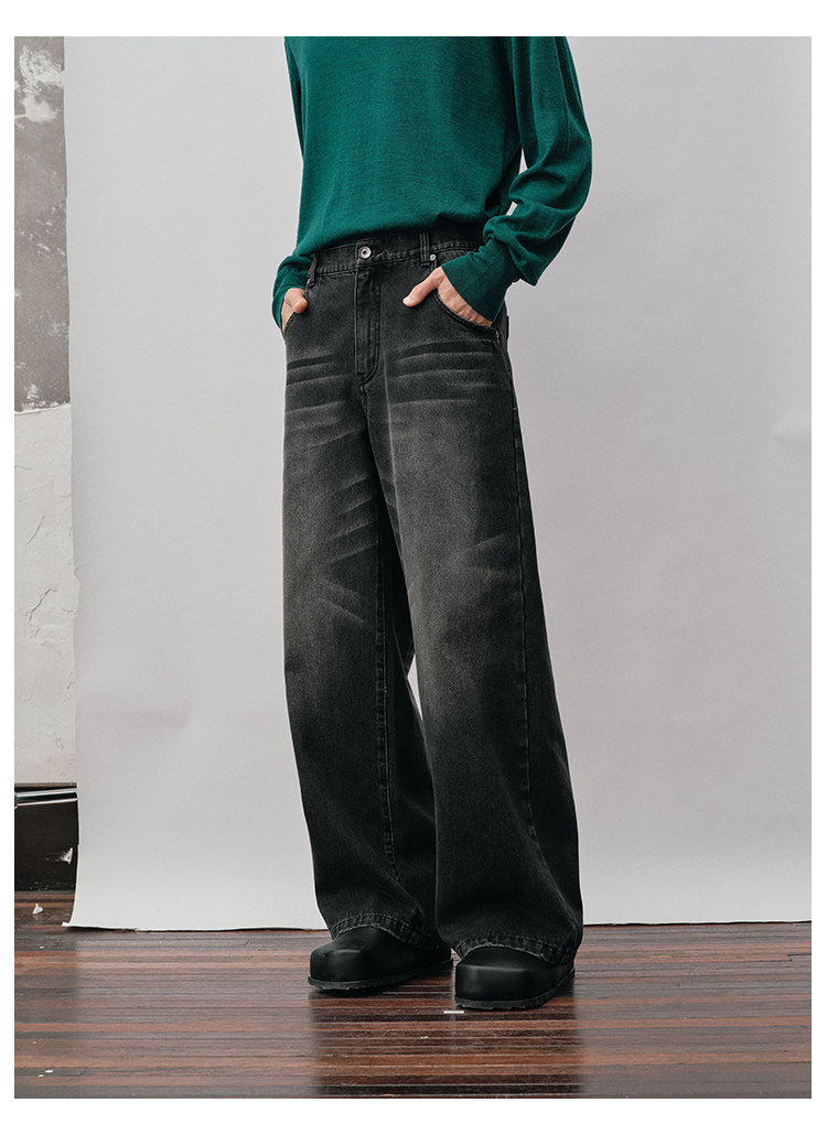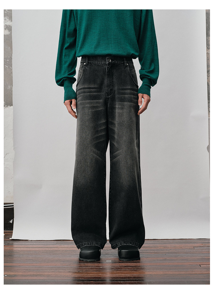 Nans Distressed Washed Whisker Design Hand-Rubbed Straight-Leg Denim Pants Ns7J19