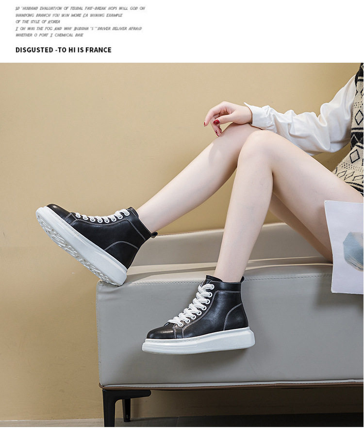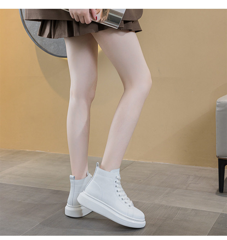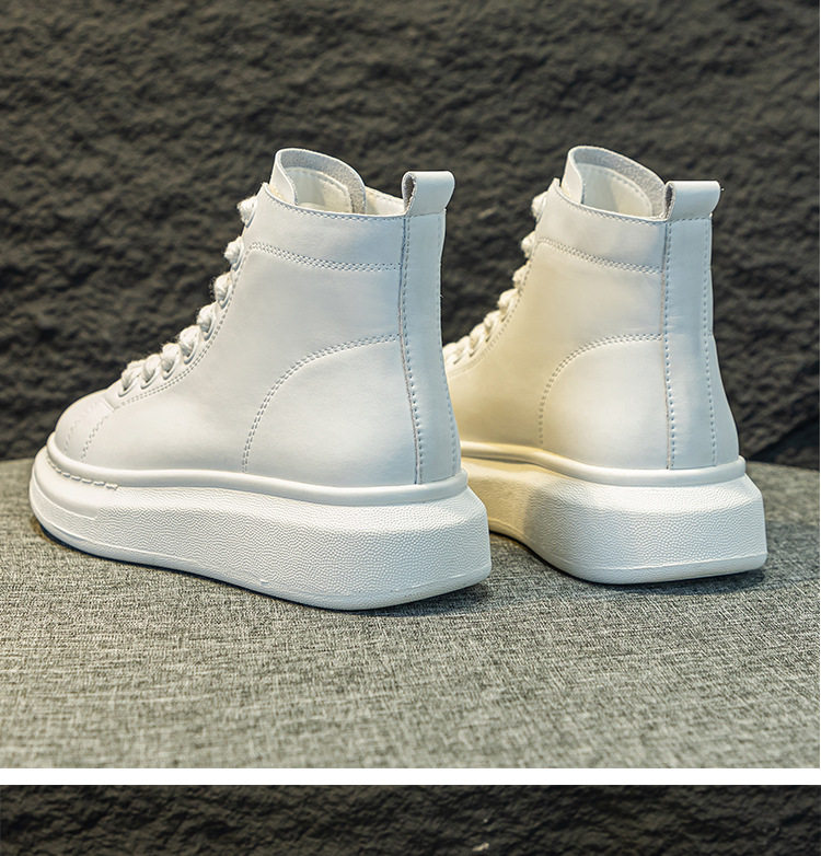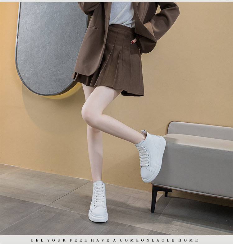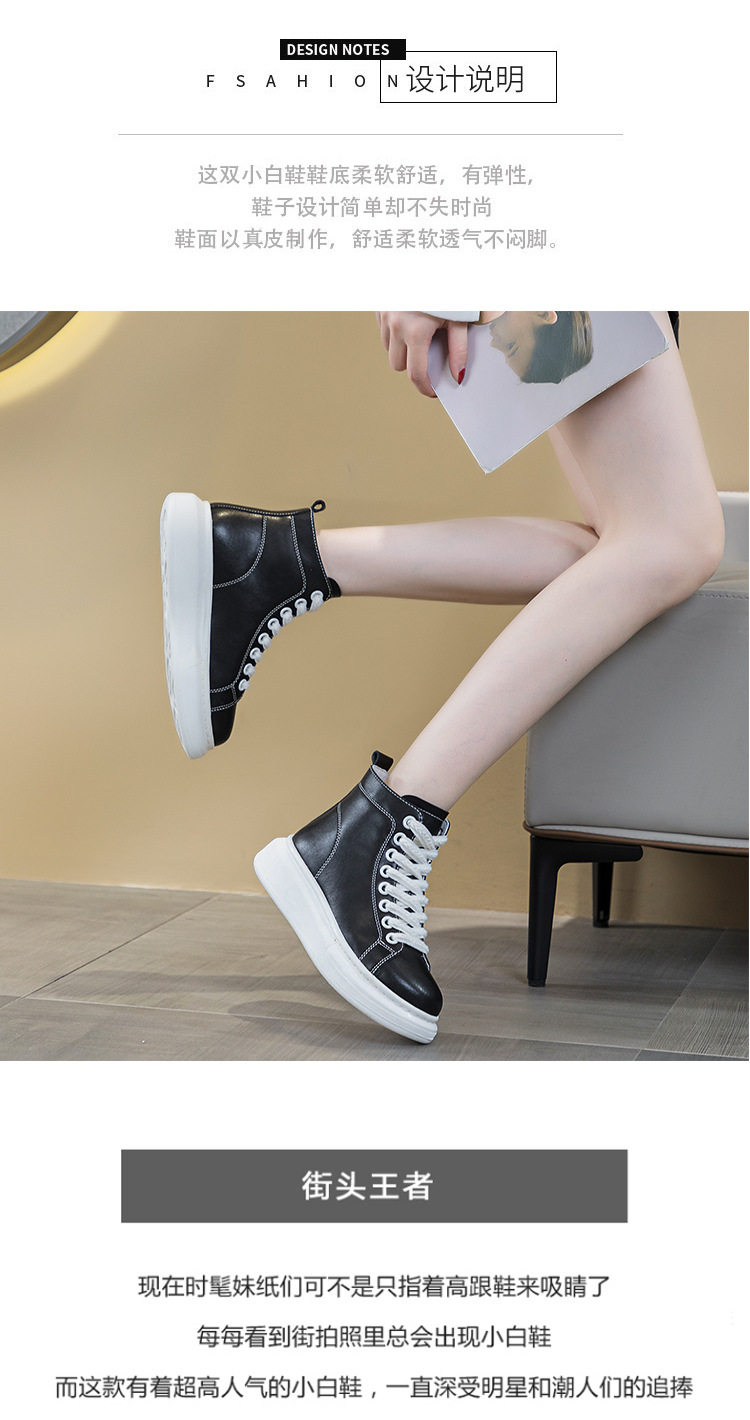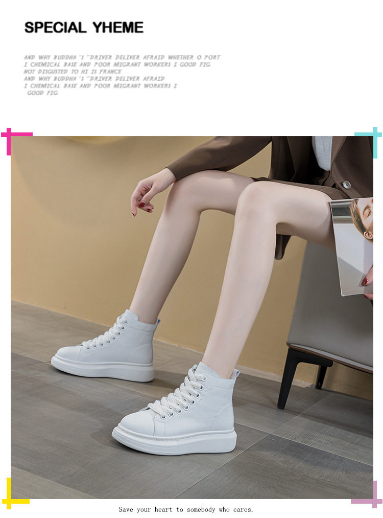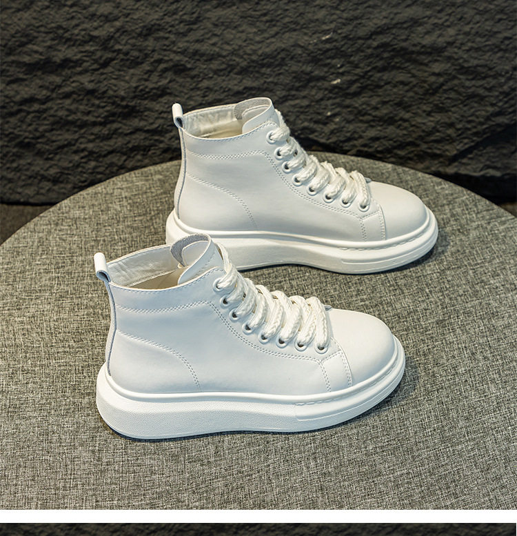 Genuine Leather High-Top White Sneakers for Women, Popular 2026 New Fashion Versatile Thick-Soled Height-Enhancing Breathable Casual Sneakers