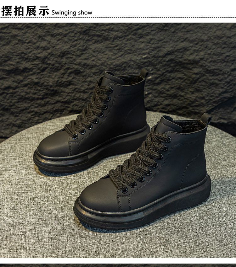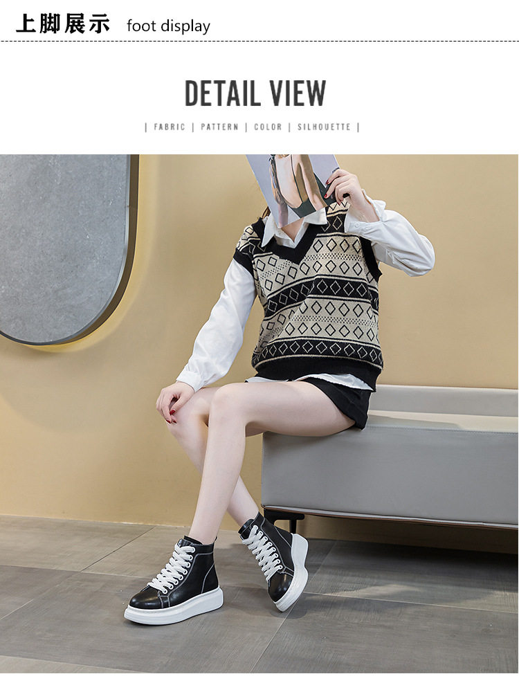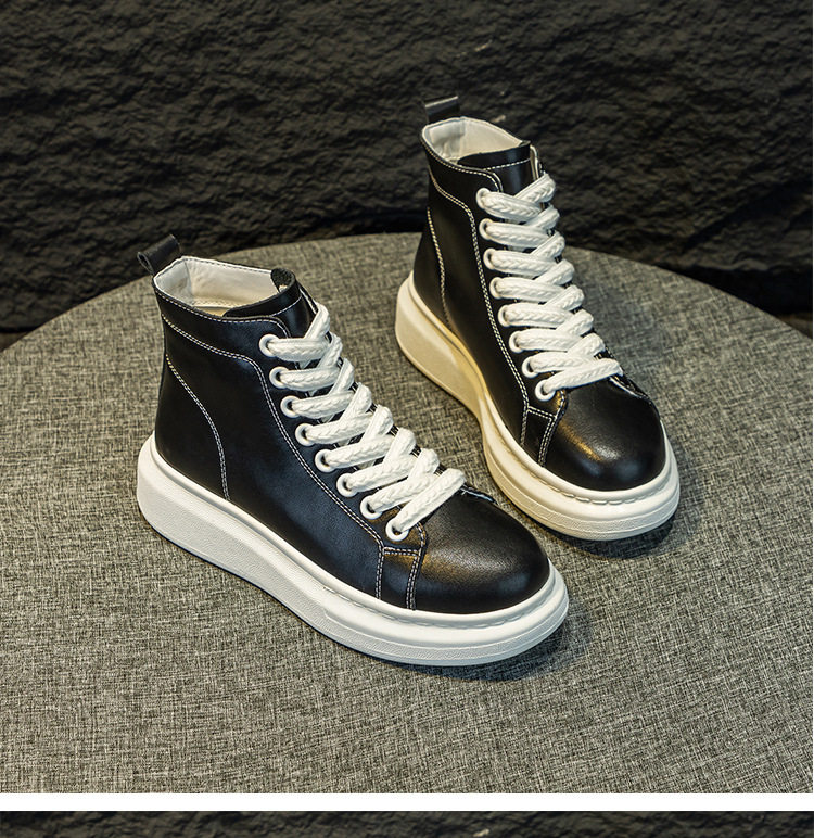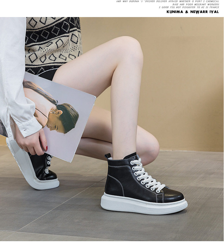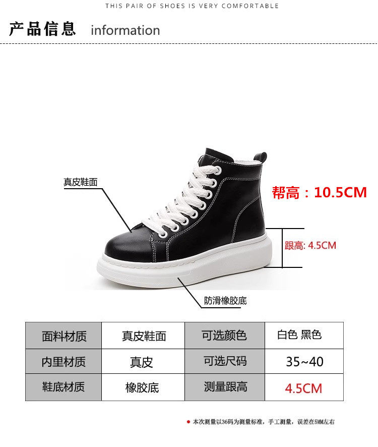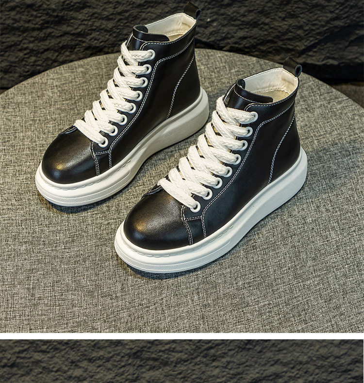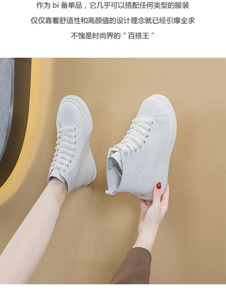 Genuine Leather High-Top White Sneakers for Women, Popular 2026 New Fashion Versatile Thick-Soled Height-Enhancing Breathable Casual Sneakers