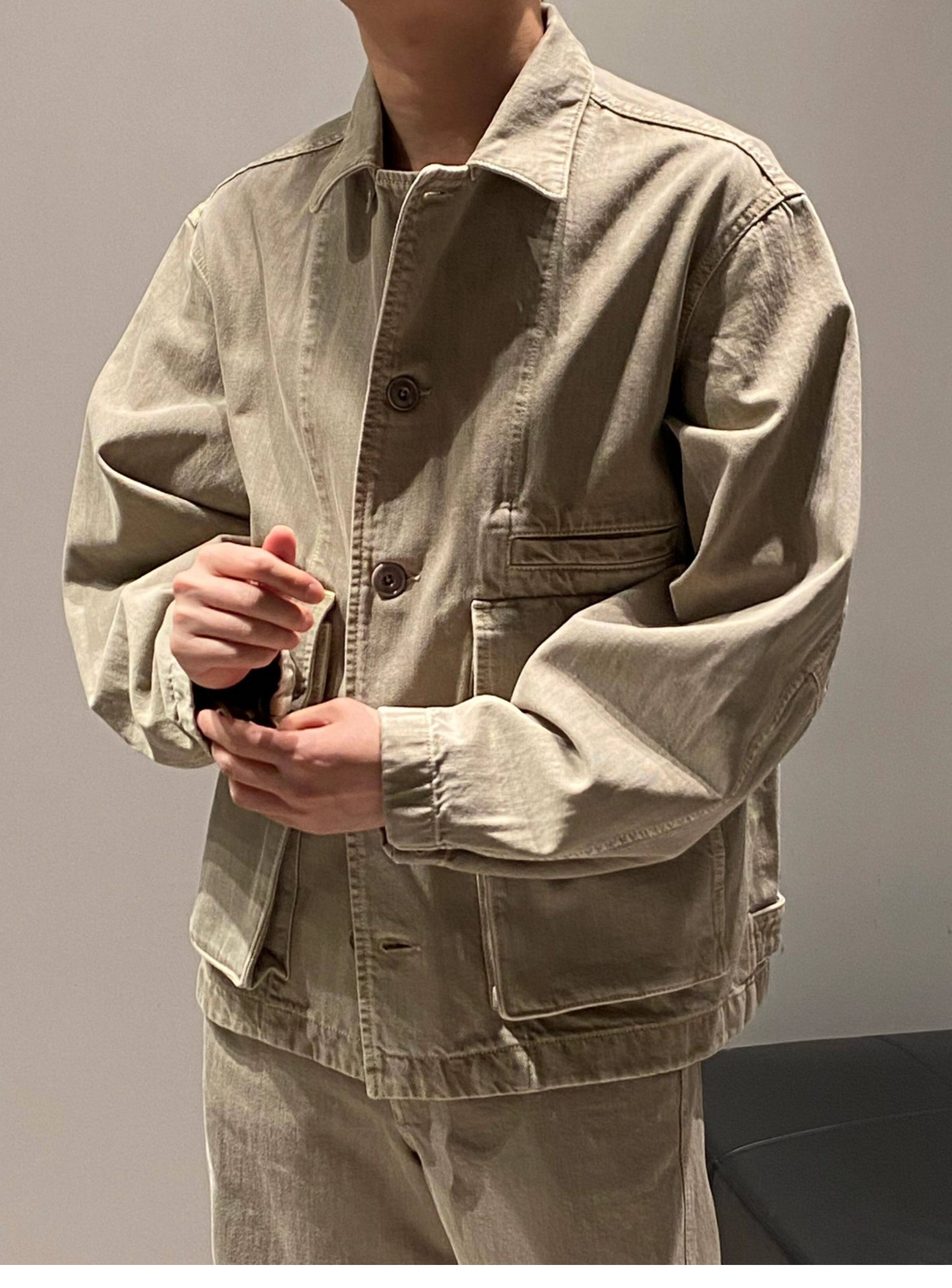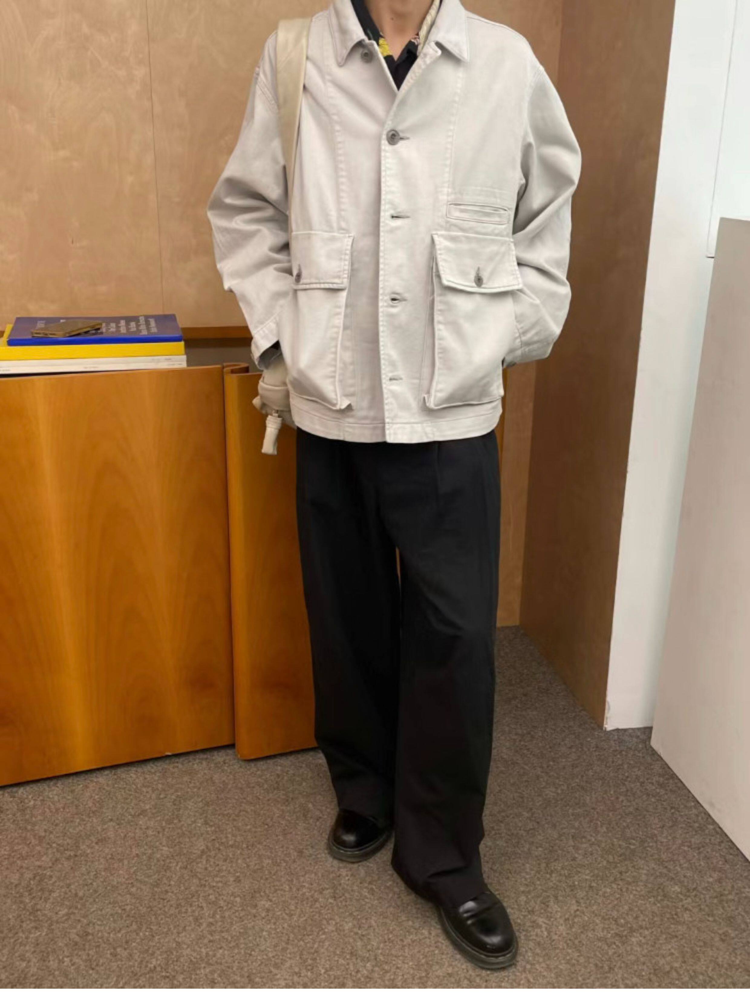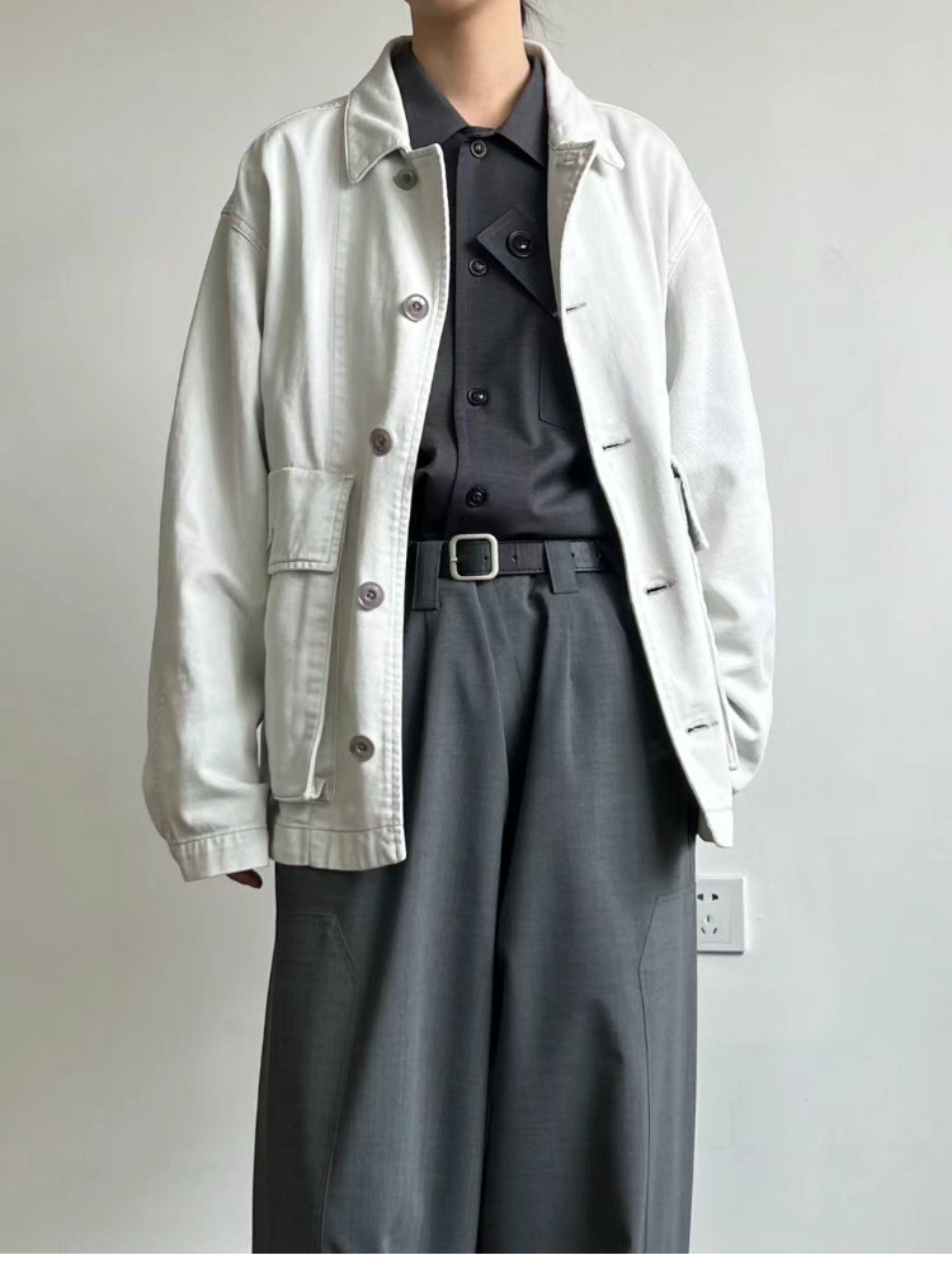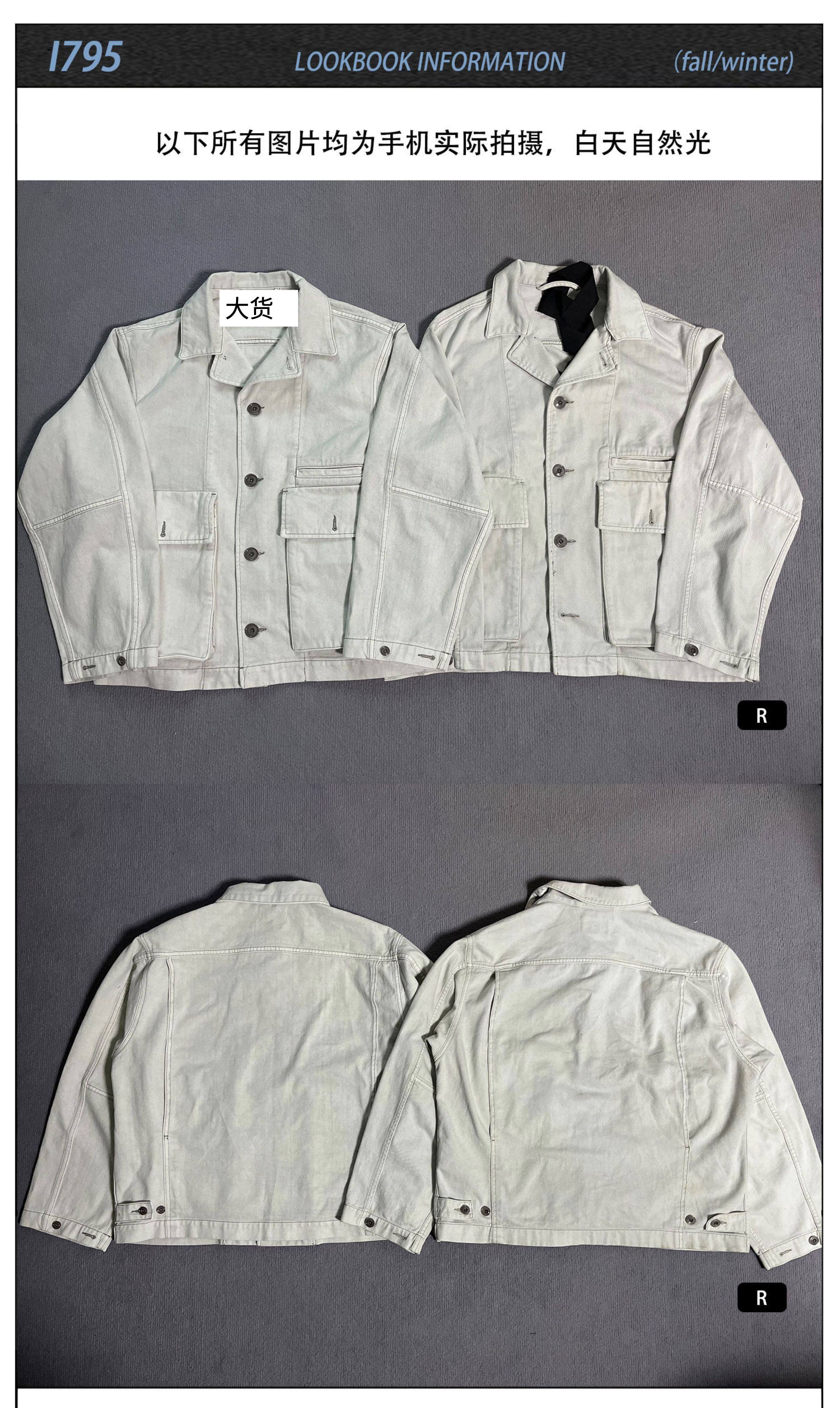 I795 Lema Glacier Gray Boxy Jacket Flap Pocket Pants Jacket Winter Men's Autumn and Winter Ready-To-Wear Dyeing