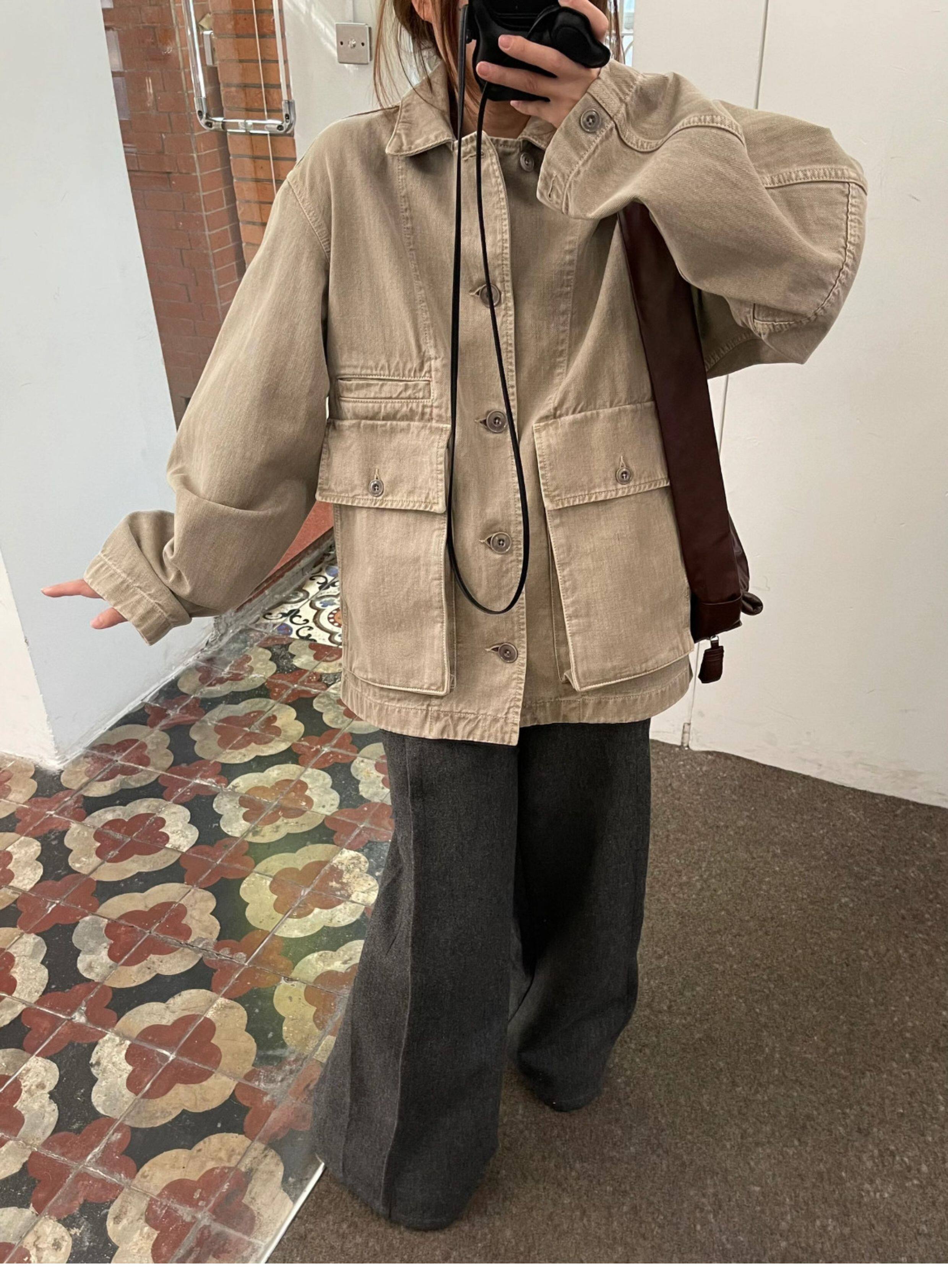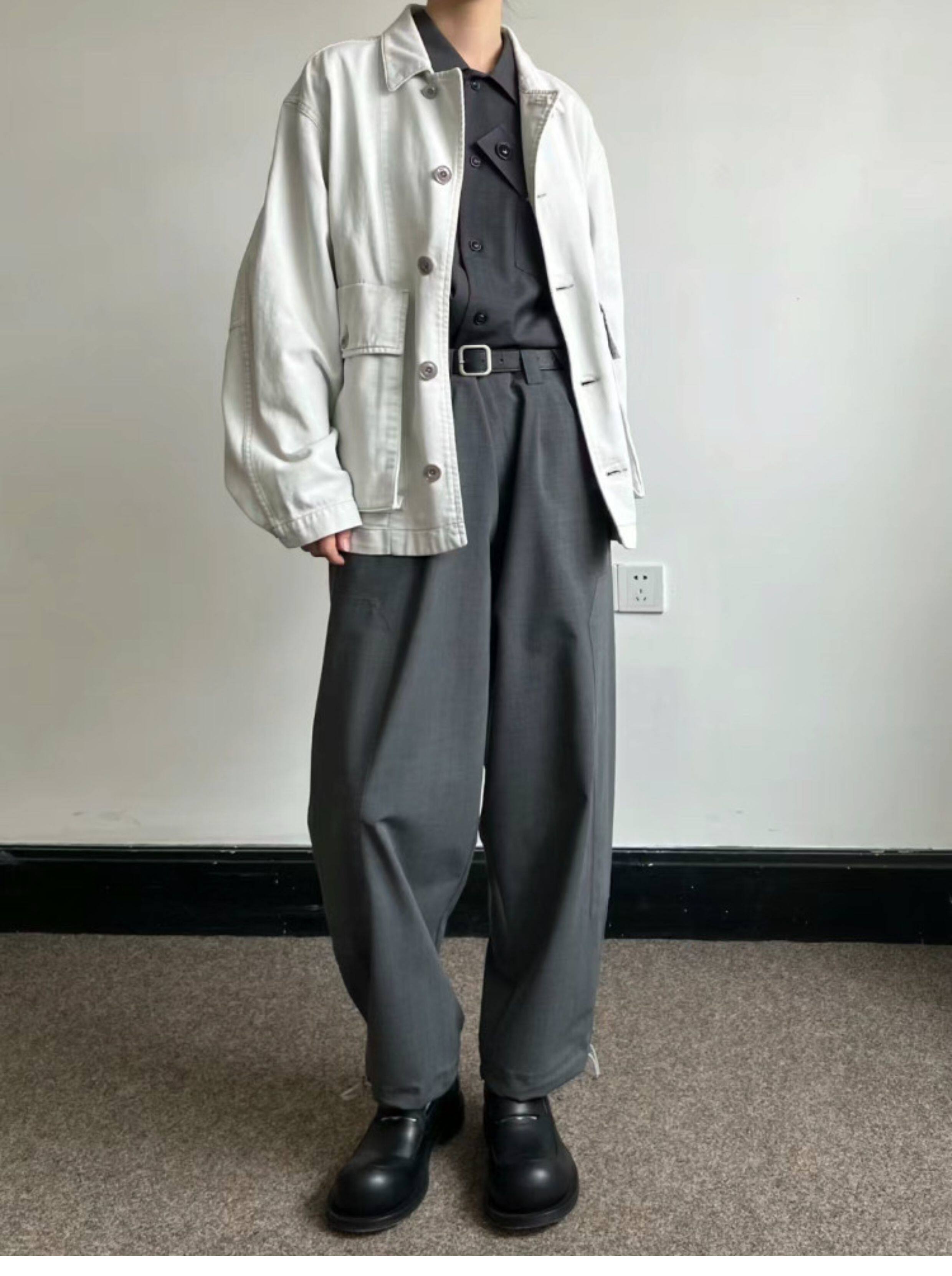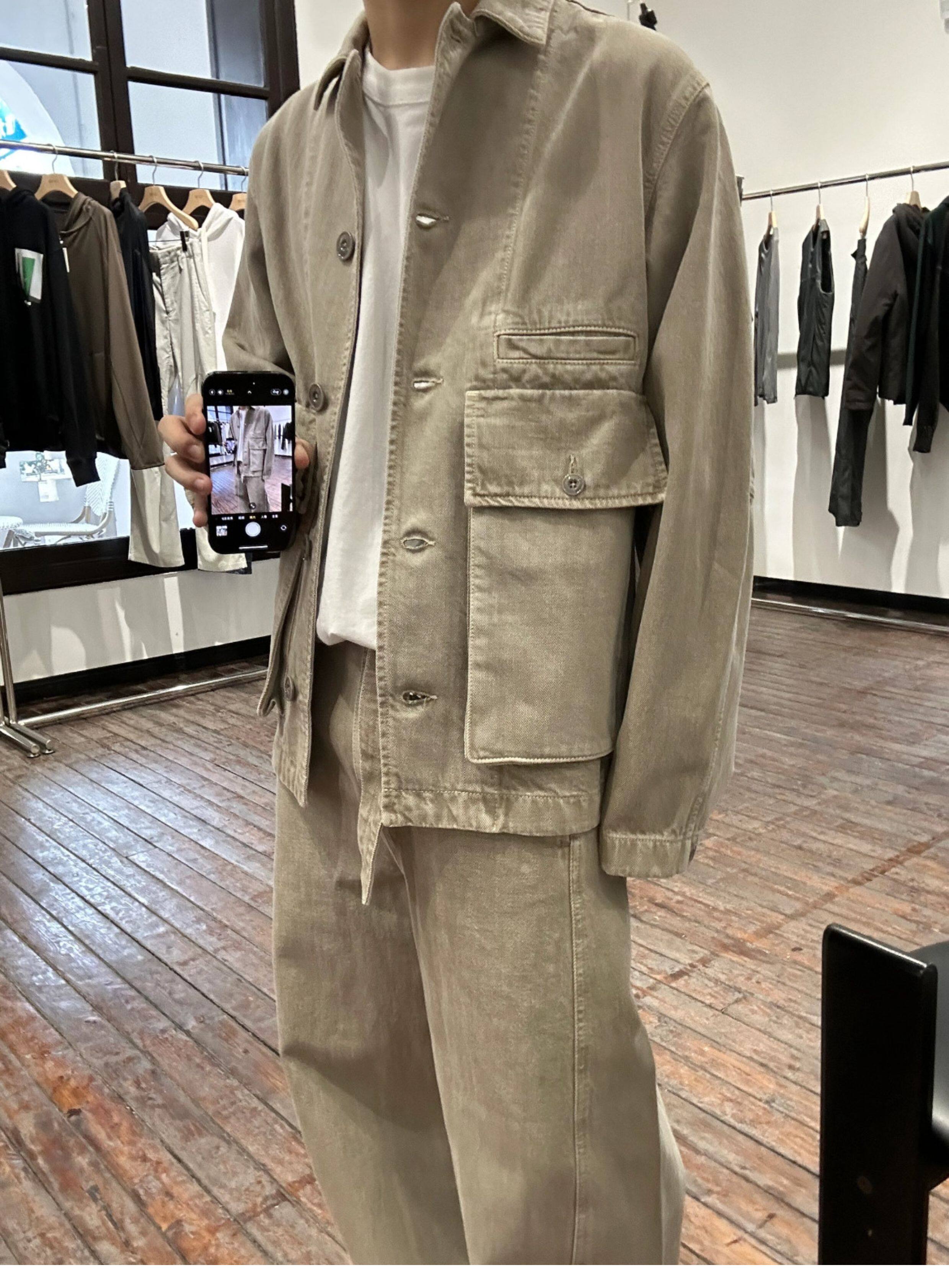 I795 Lema Glacier Gray Boxy Jacket Flap Pocket Pants Jacket Winter Men's Autumn and Winter Ready-To-Wear Dyeing