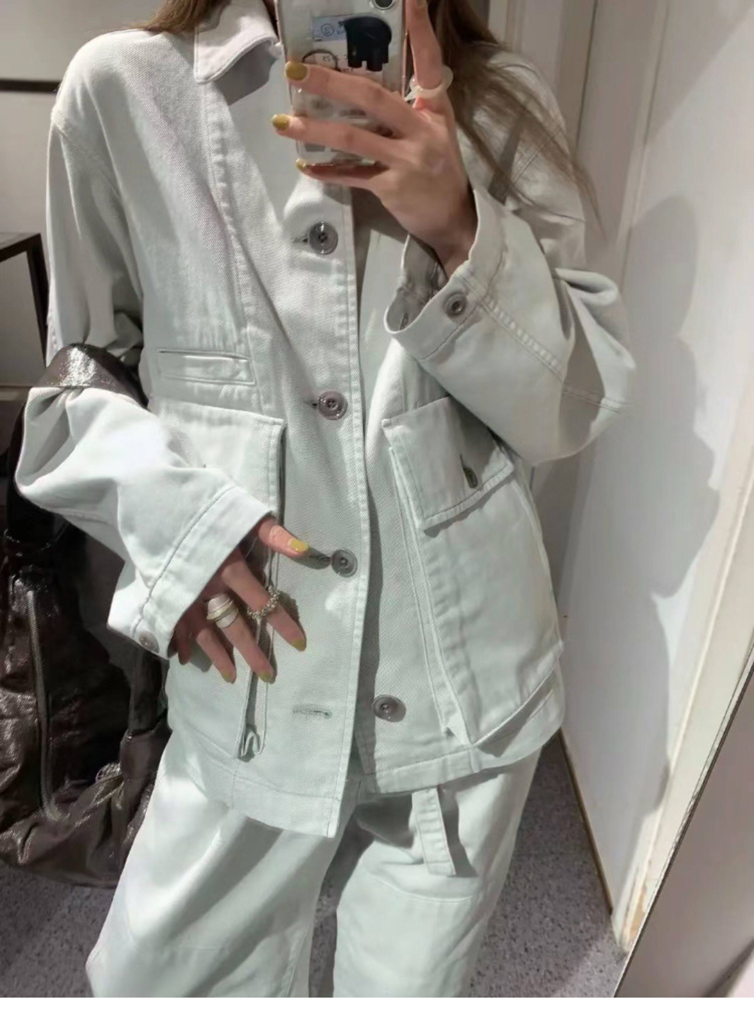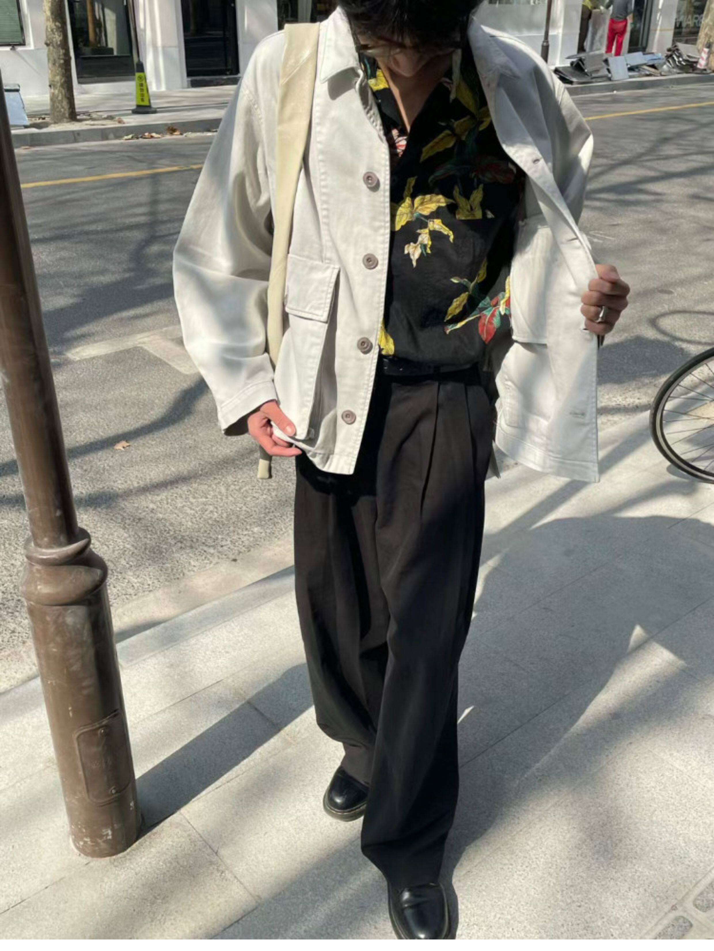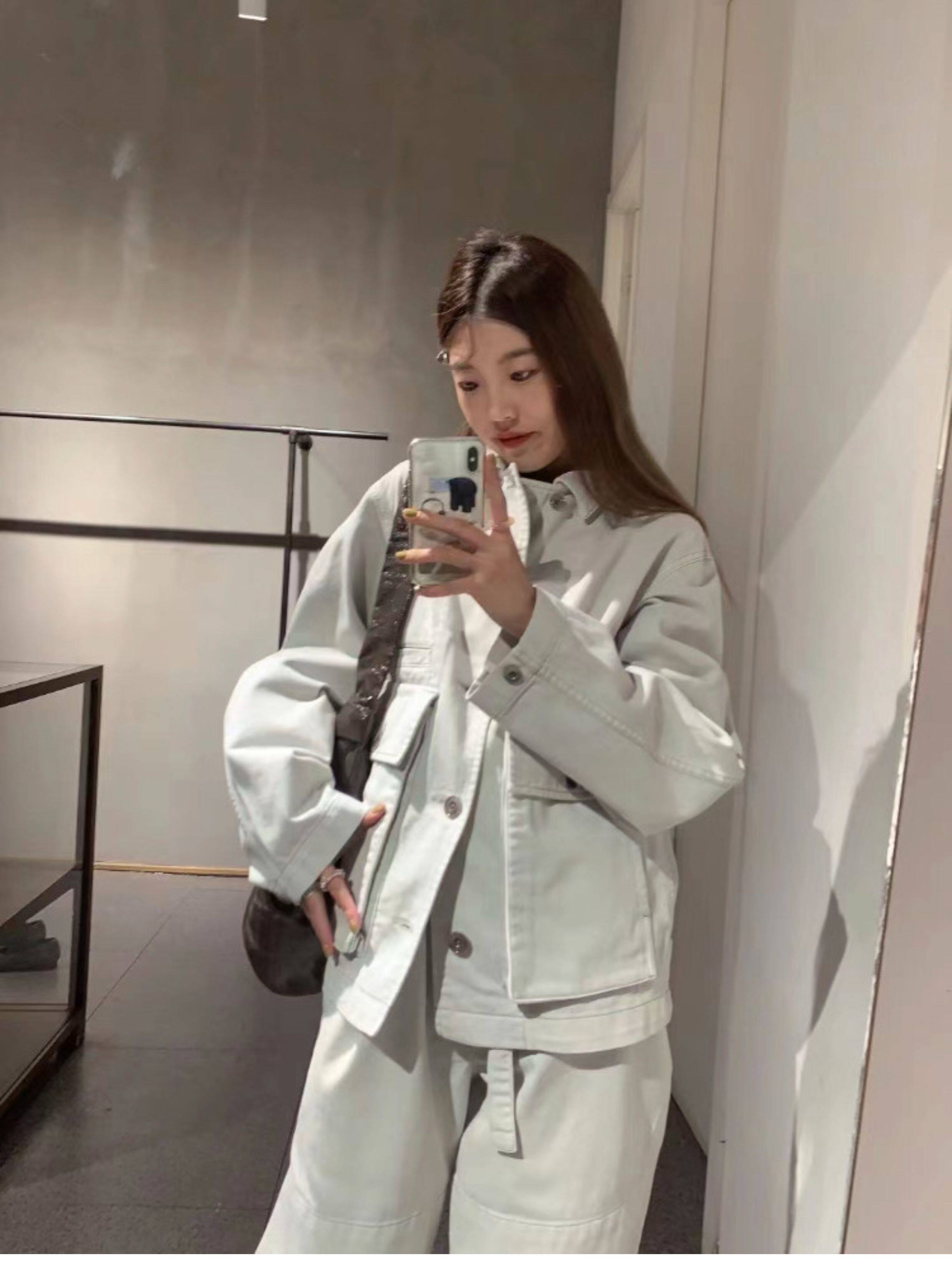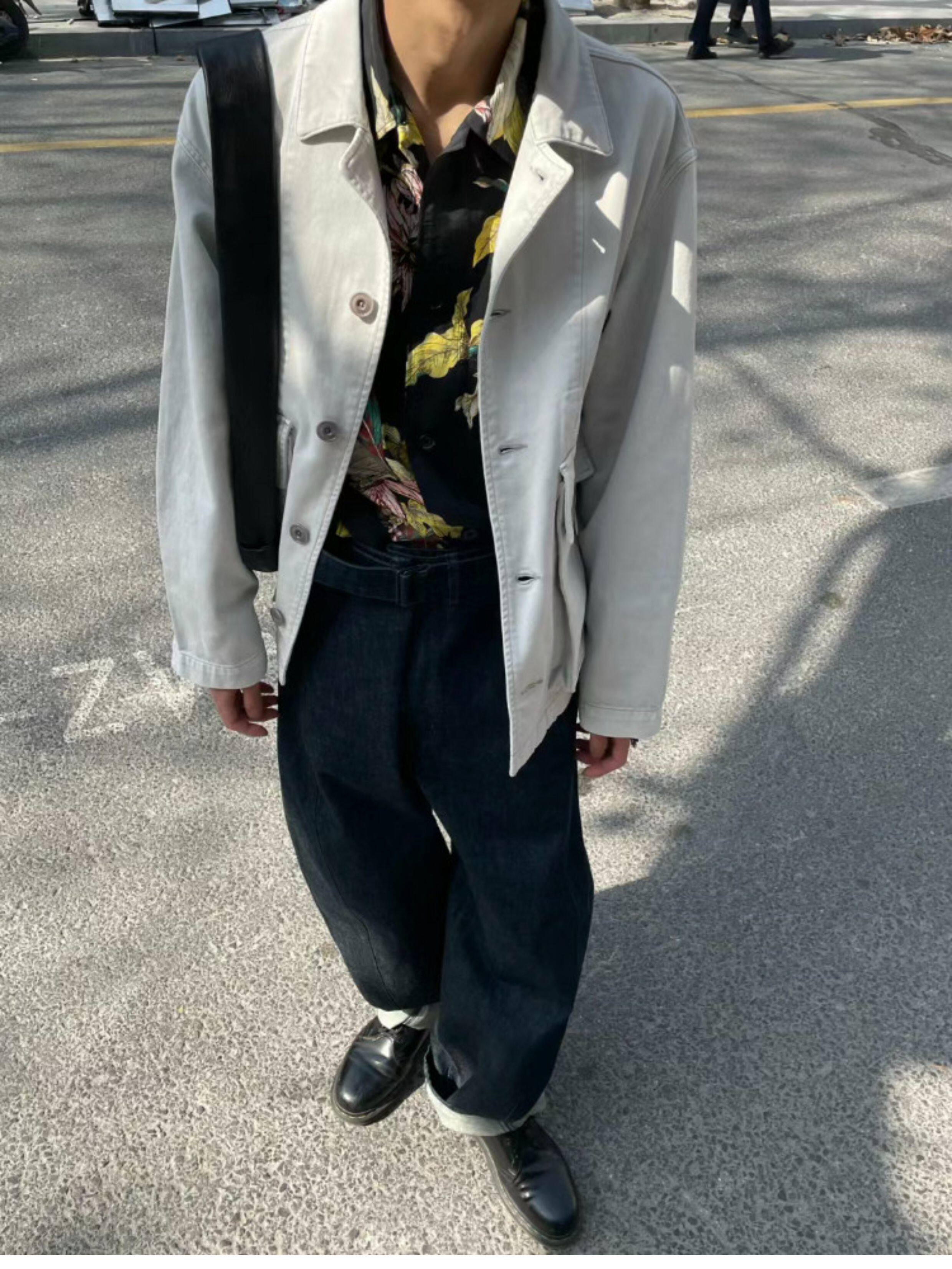 I795 Lema Glacier Gray Boxy Jacket Flap Pocket Pants Jacket Winter Men's Autumn and Winter Ready-To-Wear Dyeing
