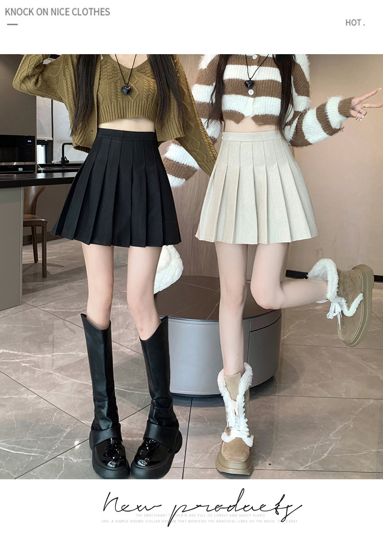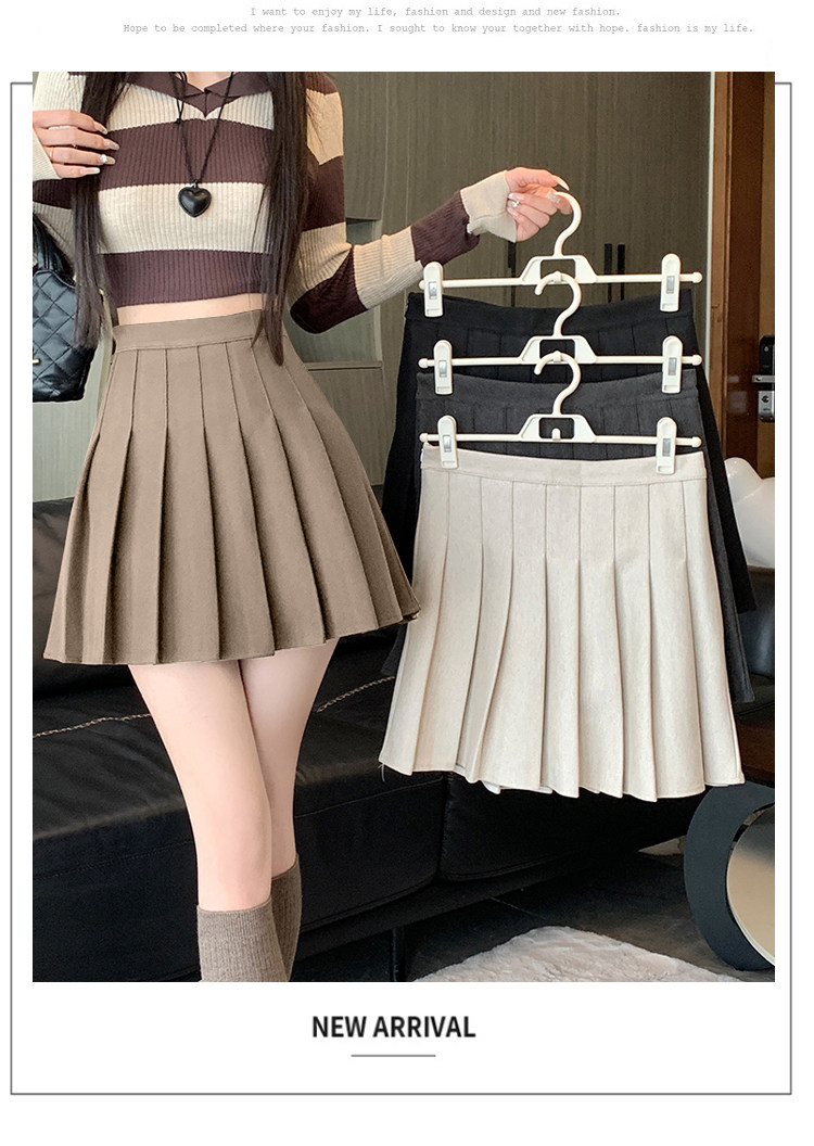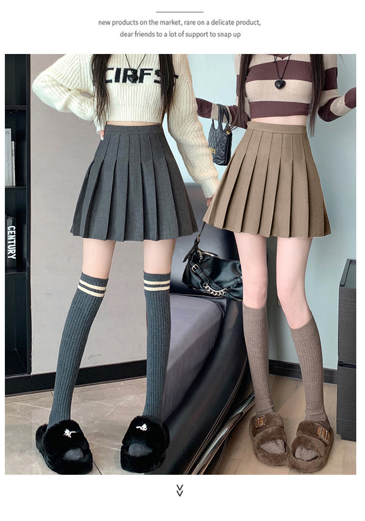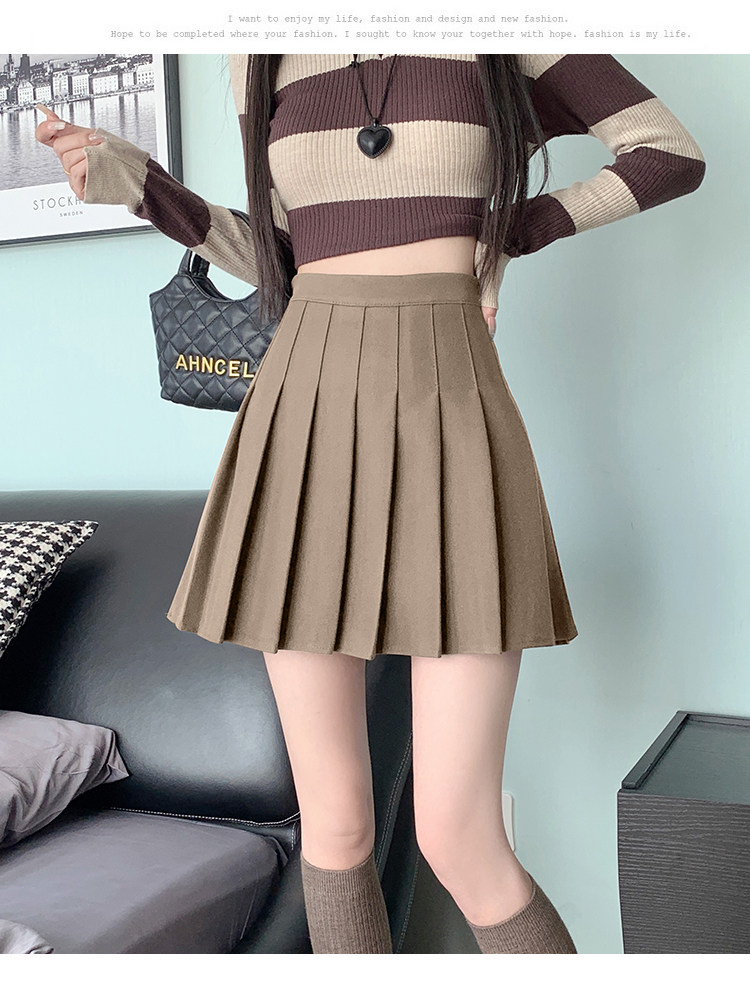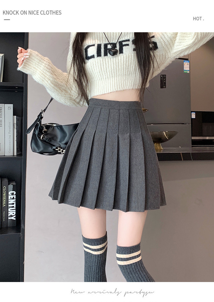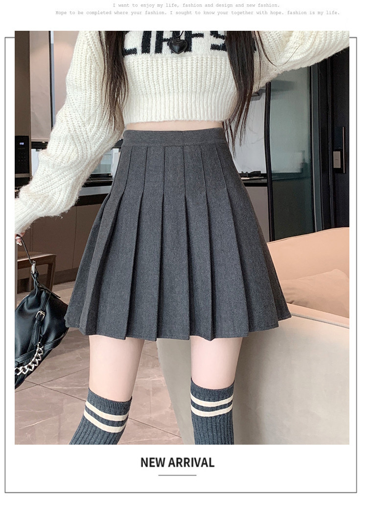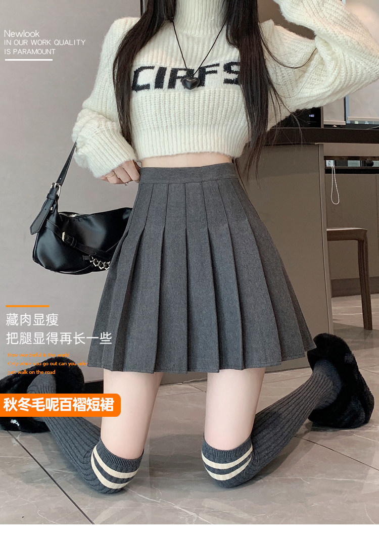 Gray Pleated Skirt for Women 2025 New Spring, Autumn and Winter High-Waisted A-Line Slimming Jk Short Skirt Petite Woolen Skirt