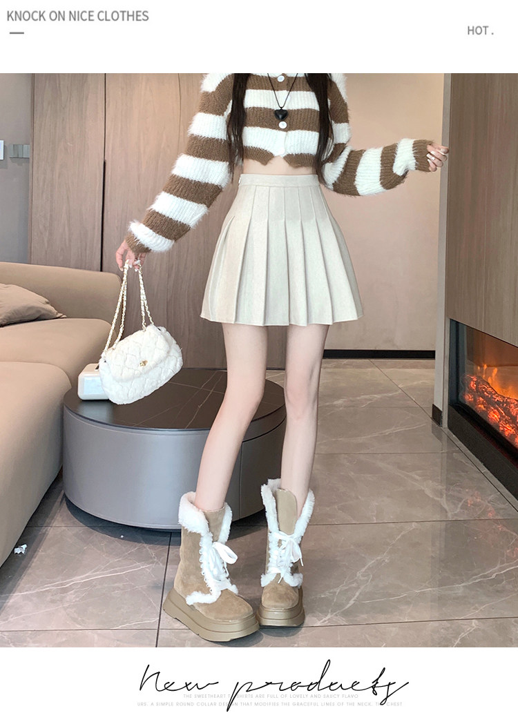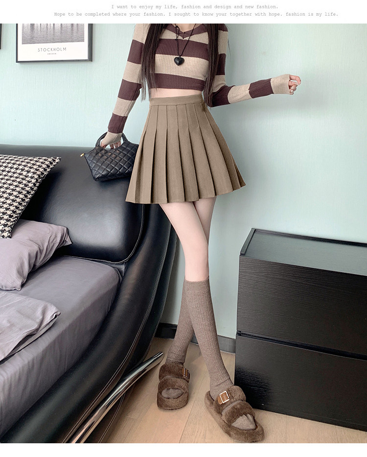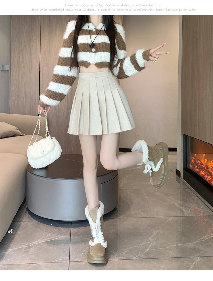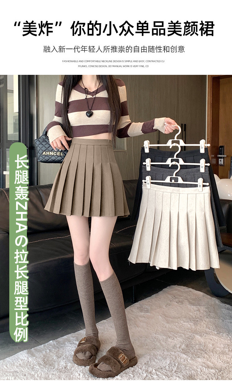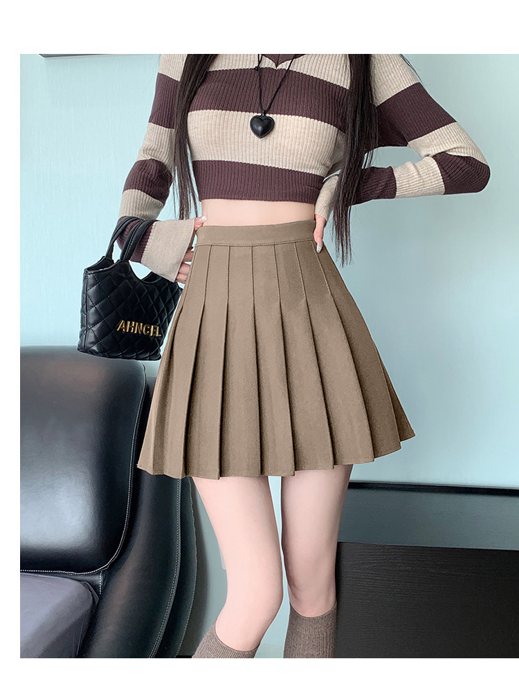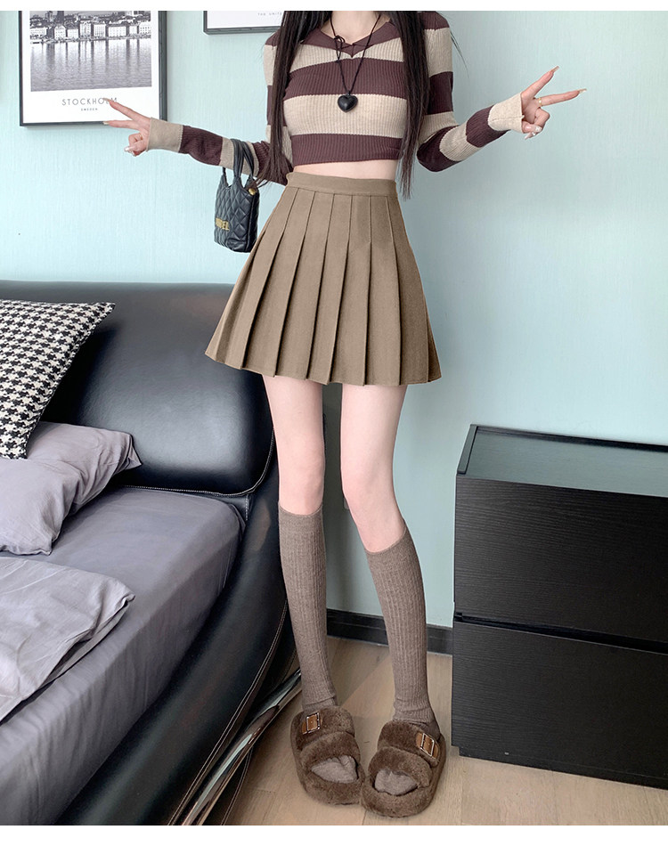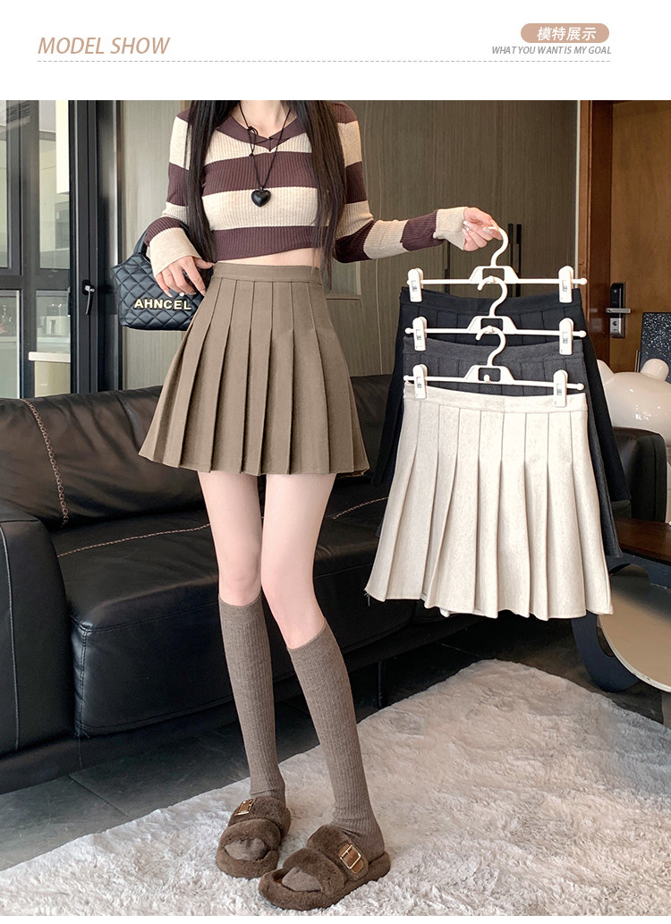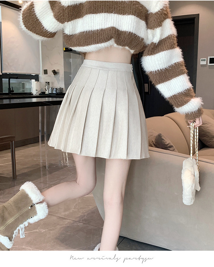 Gray Pleated Skirt for Women 2025 New Spring, Autumn and Winter High-Waisted A-Line Slimming Jk Short Skirt Petite Woolen Skirt