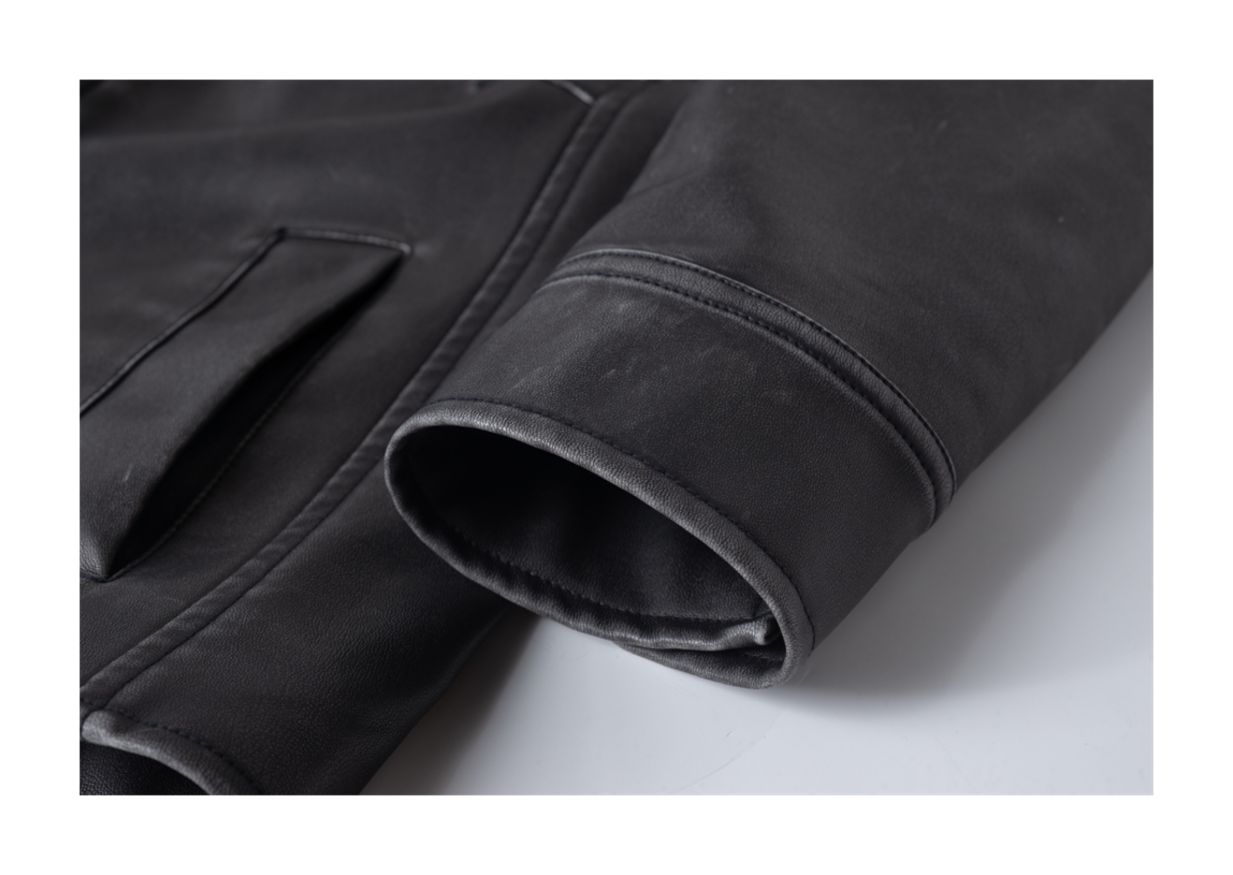 Teamgeek Washed Vintage Leather Biker Rock Jacket with Shoulder Pads, Zipper, Short Slim Fit for Women