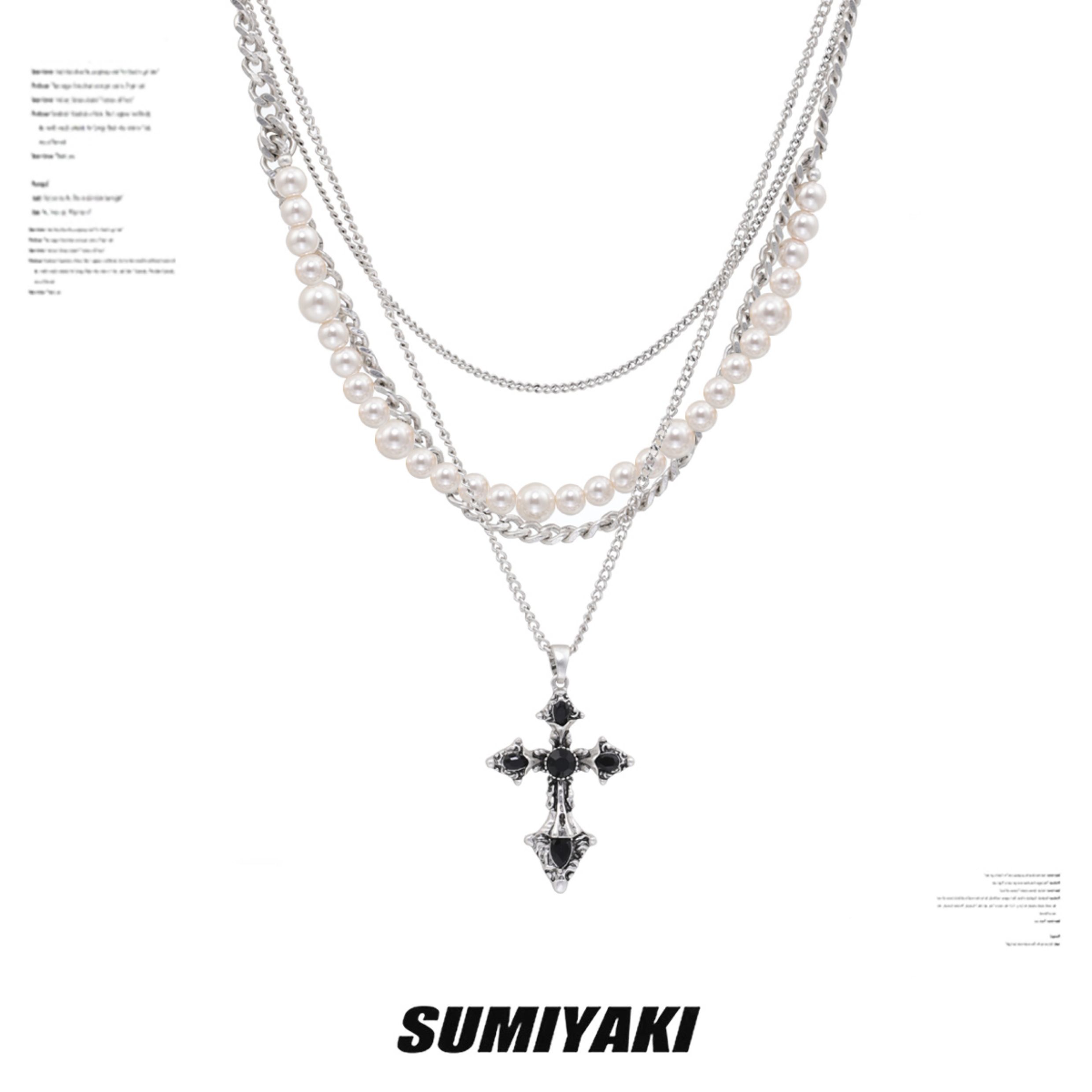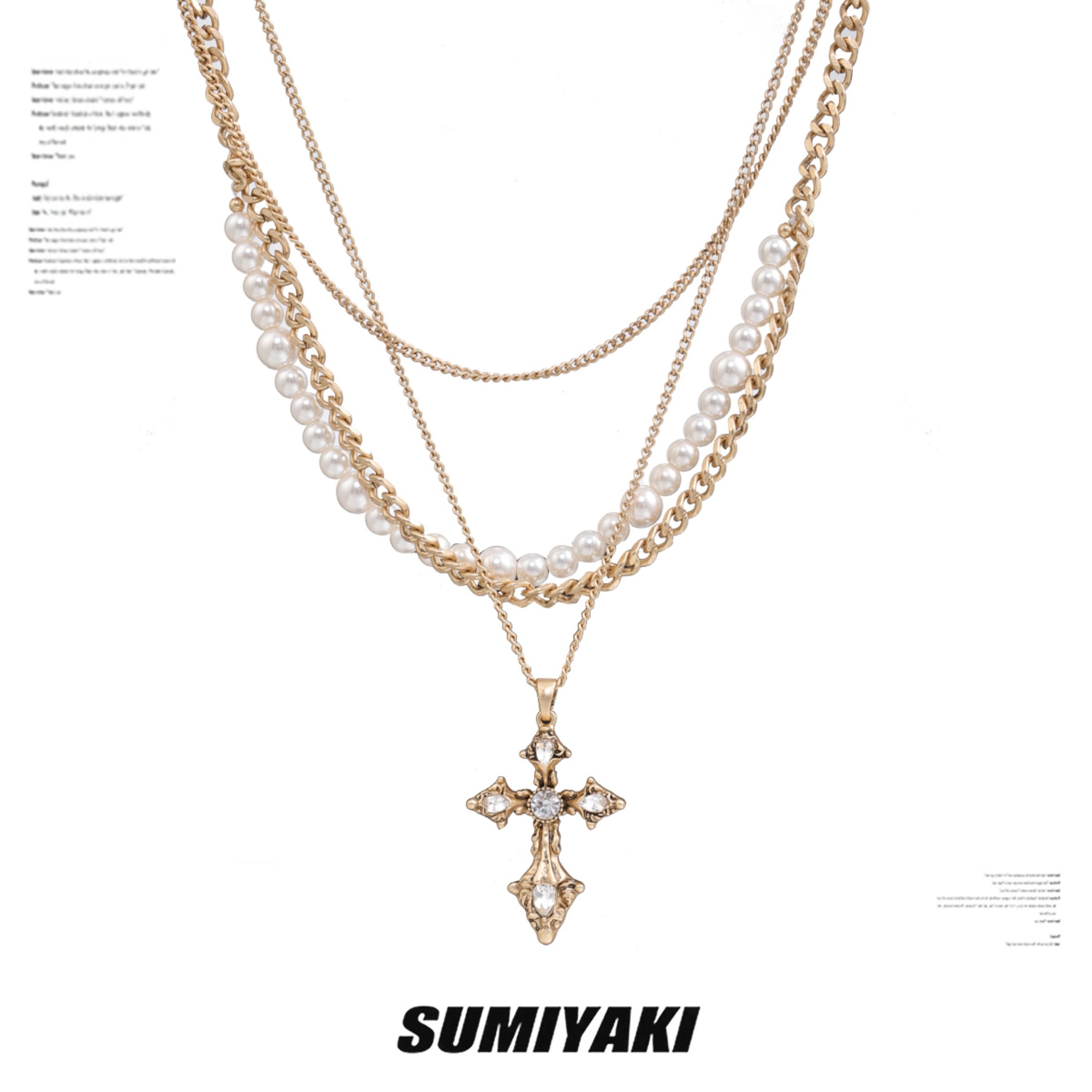 Sumiyaki American Baroque Pearl Cross Necklace High-End Multi-Layered Sweater Chain Gift