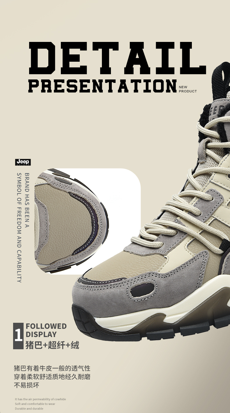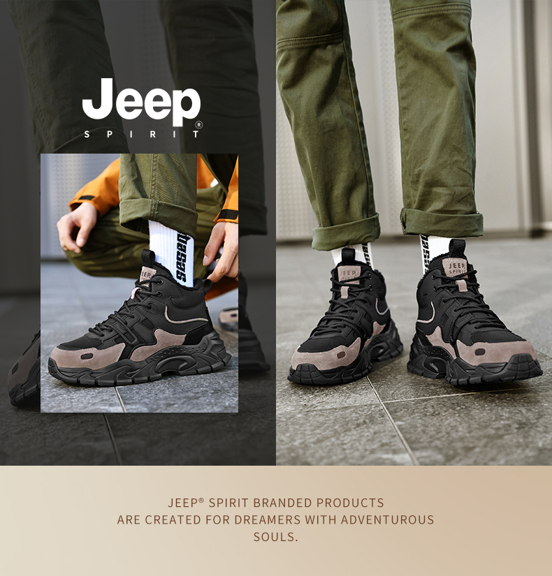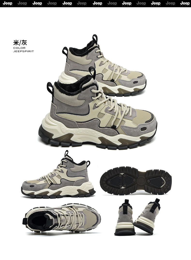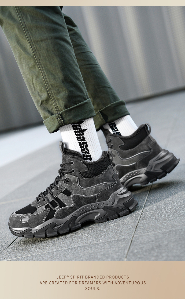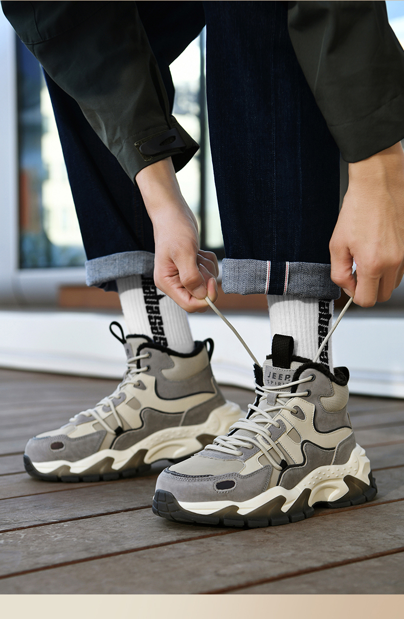Jeep Men's Shoes Winter Warm Cotton Shoes with Fleece and Thickened Men's 2025 New Model Northeast Men's Snow Boots