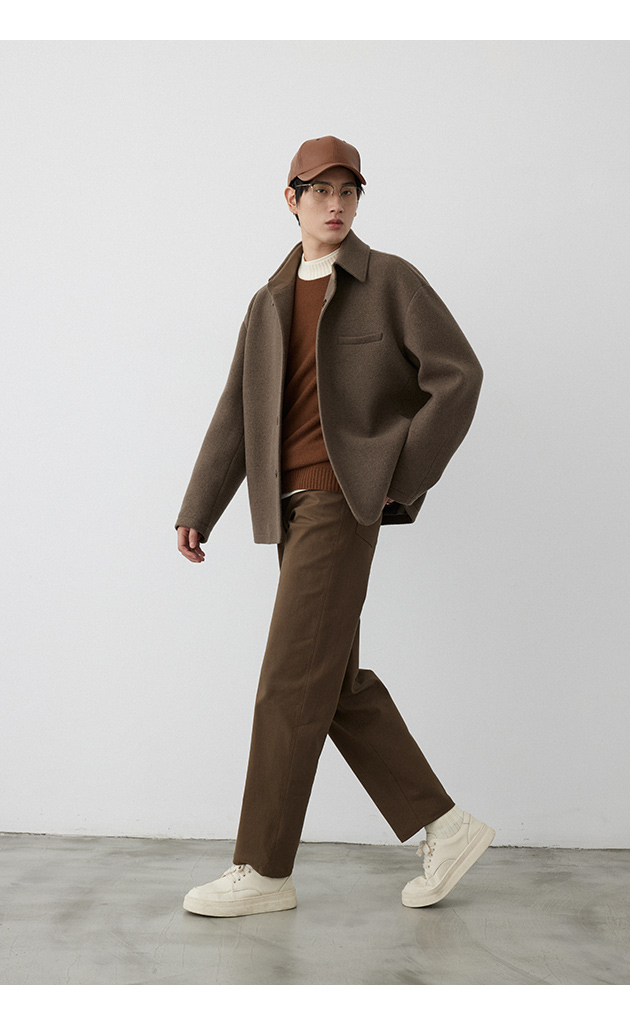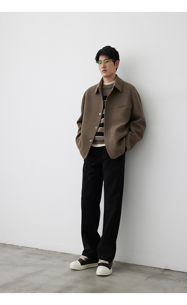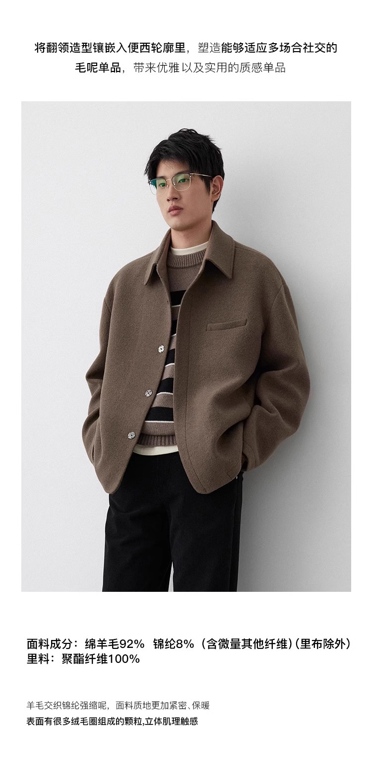 OSENS Wool Interwoven Strong Shrinkable Wool Terry Particles Stereo Texture Casual Suit Laps woolen Outwear Men