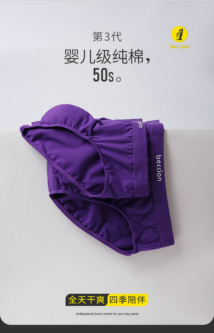 3 Pieces of Men's Briefs, Sexy Silk Crotch, Antibacterial and Antibacterial, Loose and Breathable, Pure Cotton, Young Student Underwear