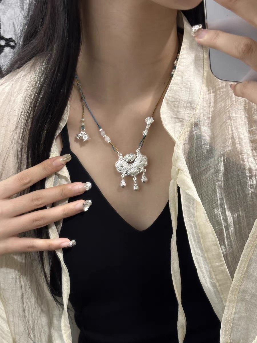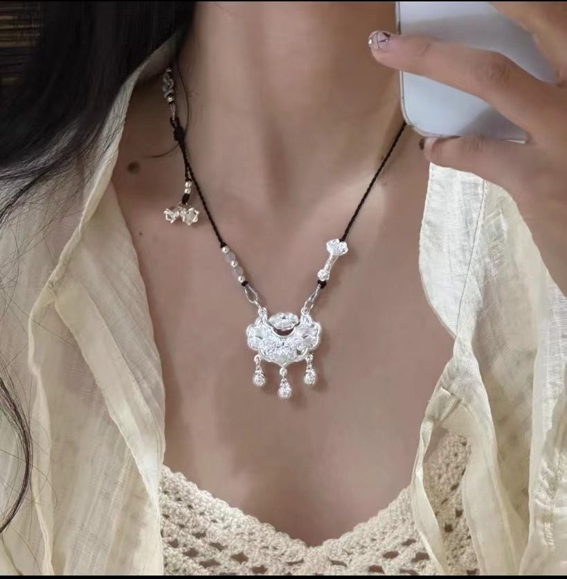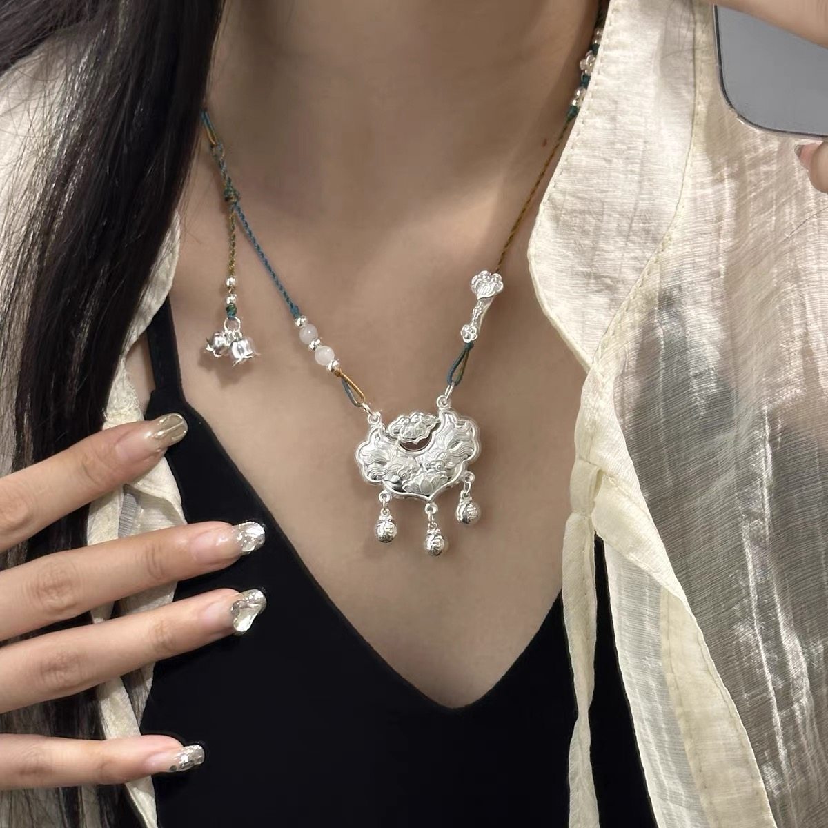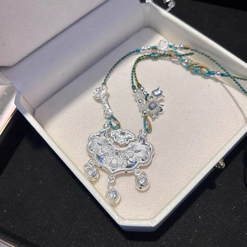 999 Pure Silver Pisces Carp Pendant, Pure Silver Peace and Prosperity Longevity Lock Necklace, Ethnic Girlfriend Jewelry Gift