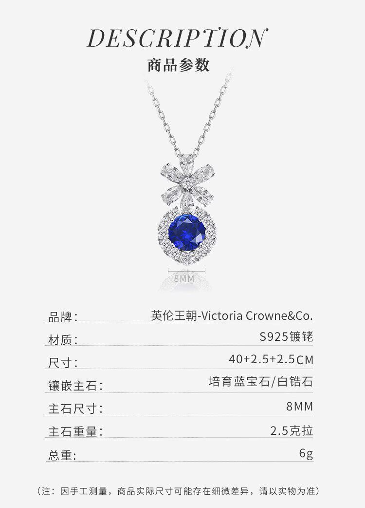 Victoria Crowne British Dynasty Sapphire Necklace Full Diamond Clavicle Chain Necklace High-End Birthday Gift