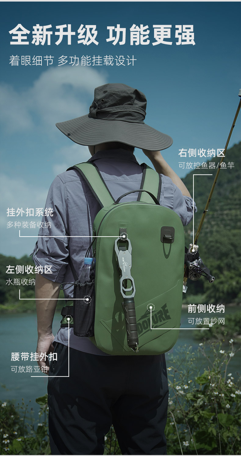Youdu Luya Waterproof Backpack for Fishing, Outdoor Large-Capacity Lightweight Hiking and Mountaineering Backpack, Professional Airtight Bag