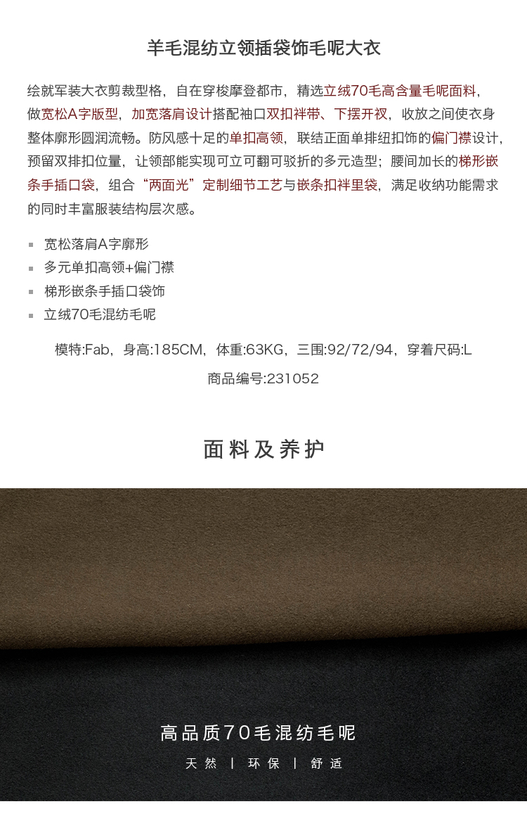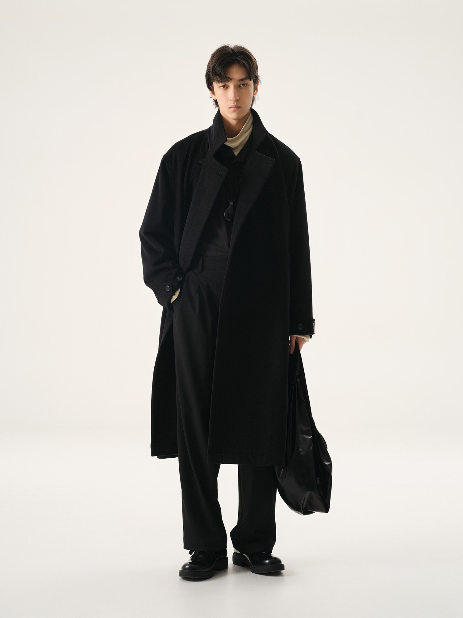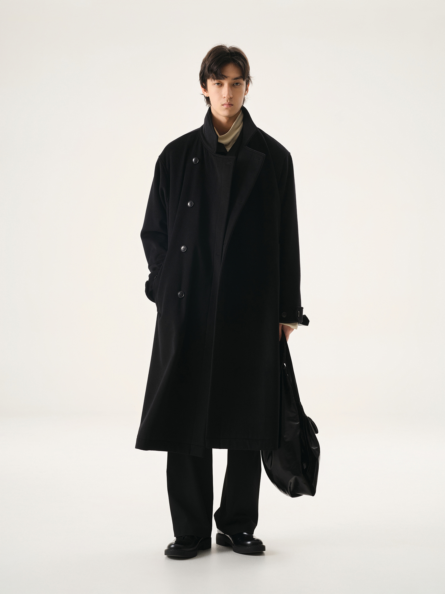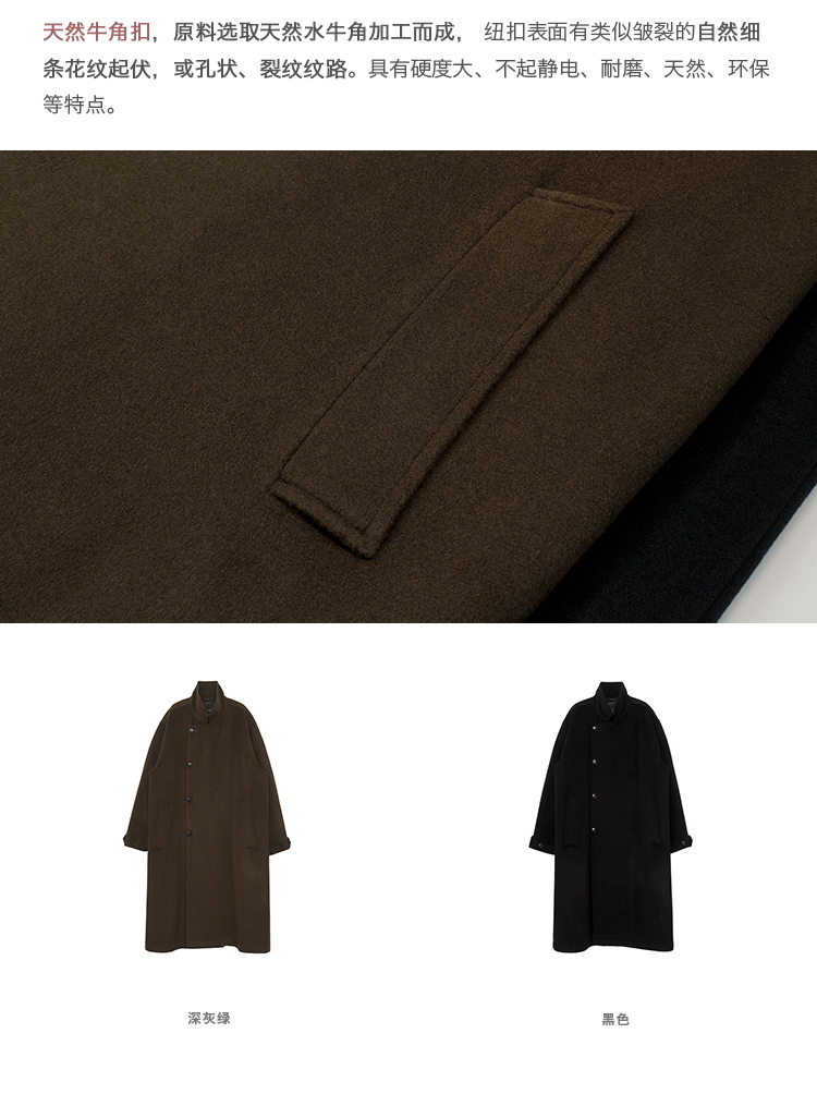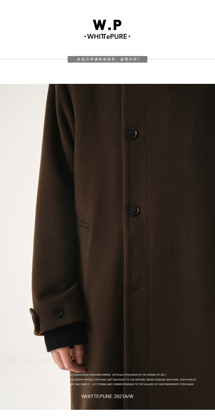 【Whitt Epure】Wp Shirakawa Stand-Up Collar Woolen Outwear Long Woolen Outwear for Men in Winter