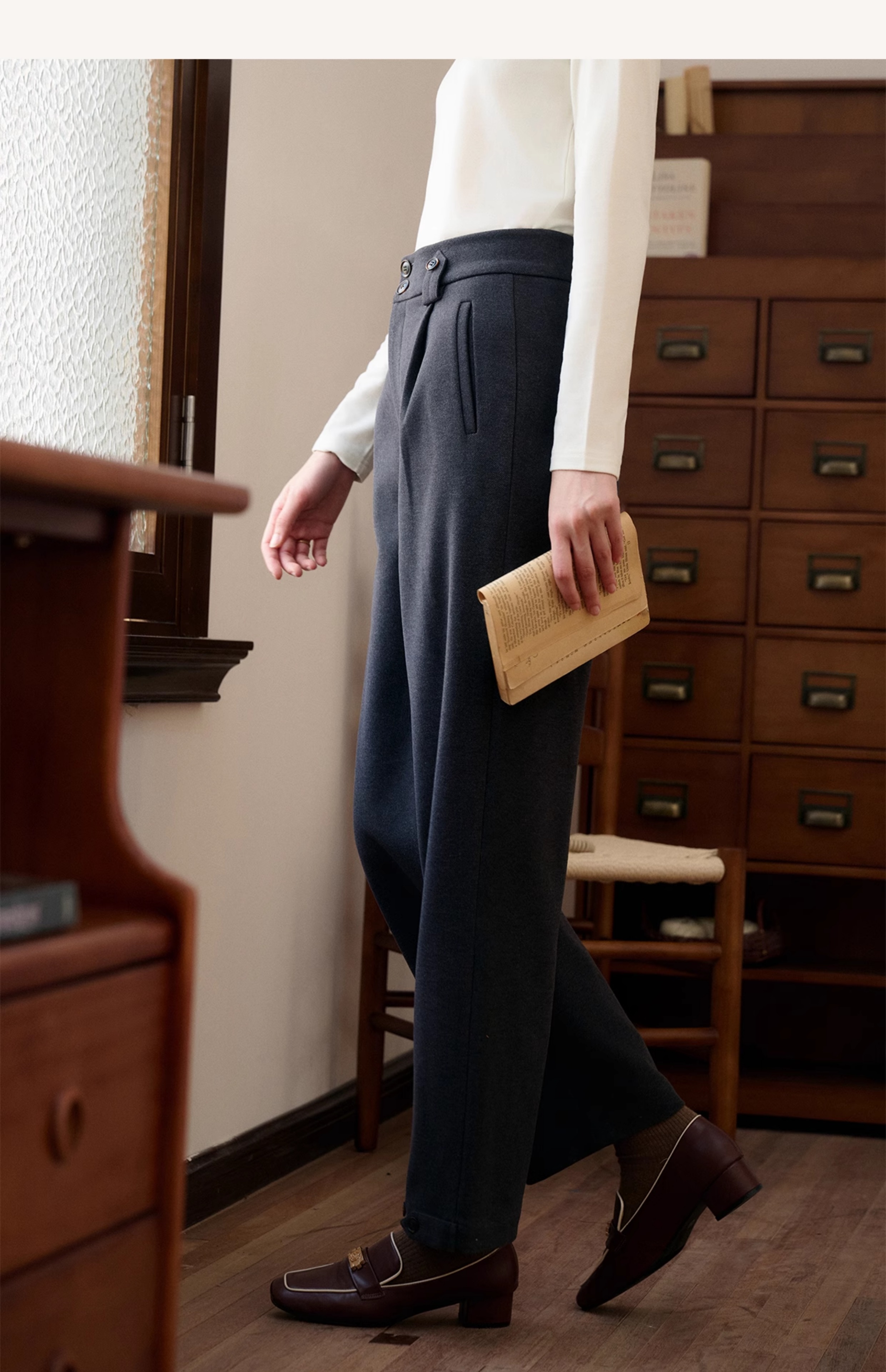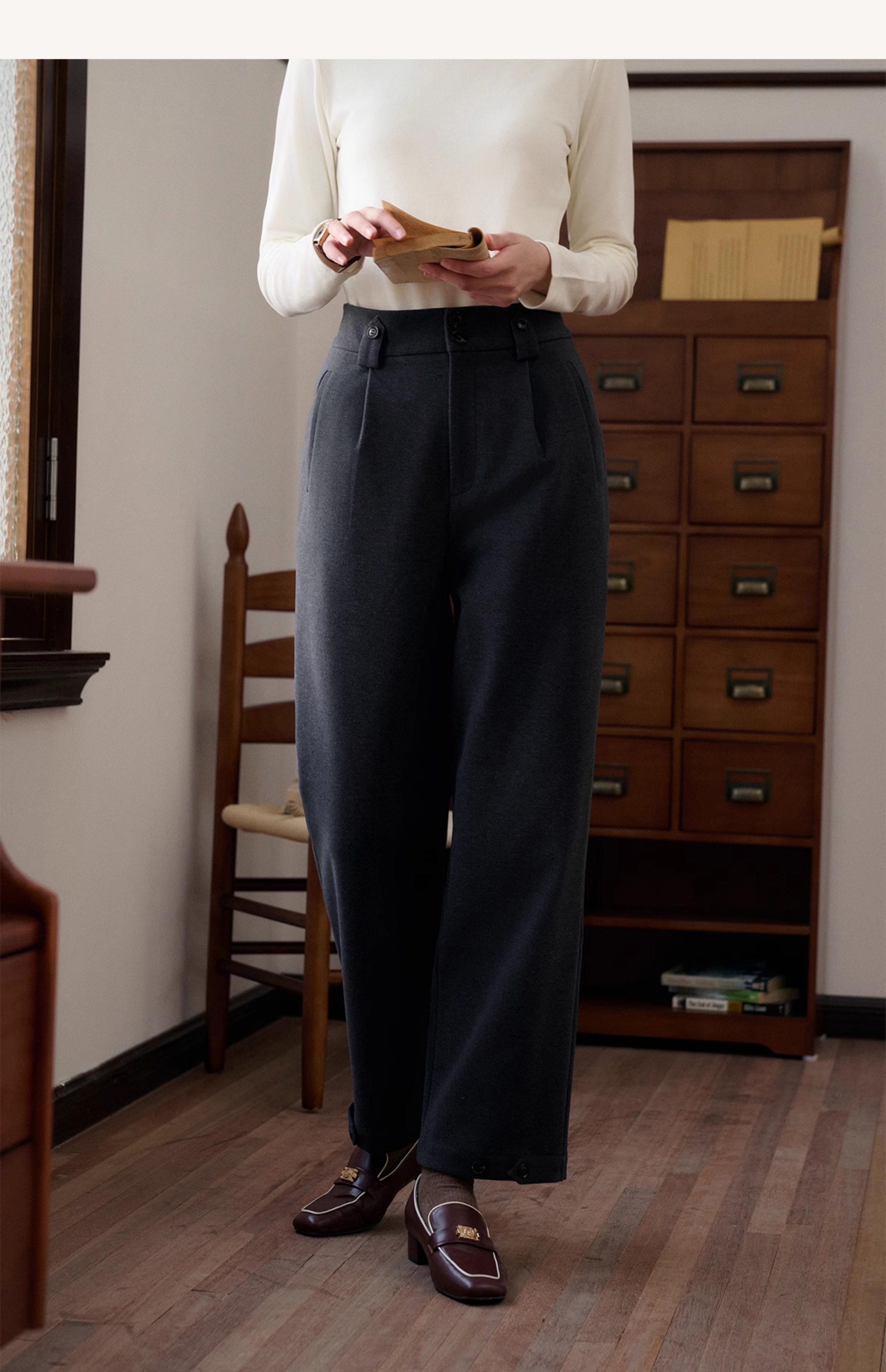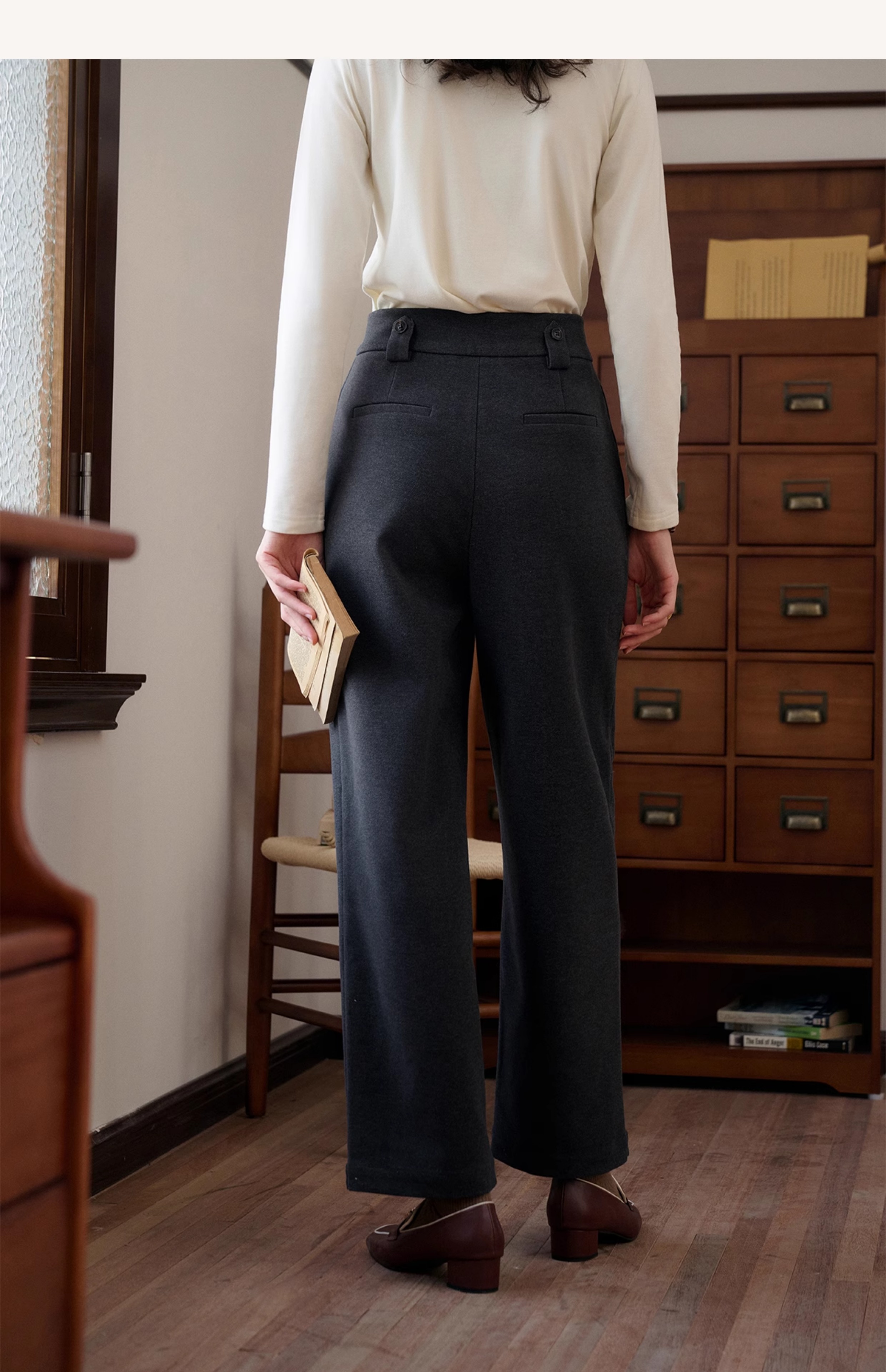 Simpleretro Classic Versatile Straight-Leg Cropped Casual Pants for Women Thick Trousers