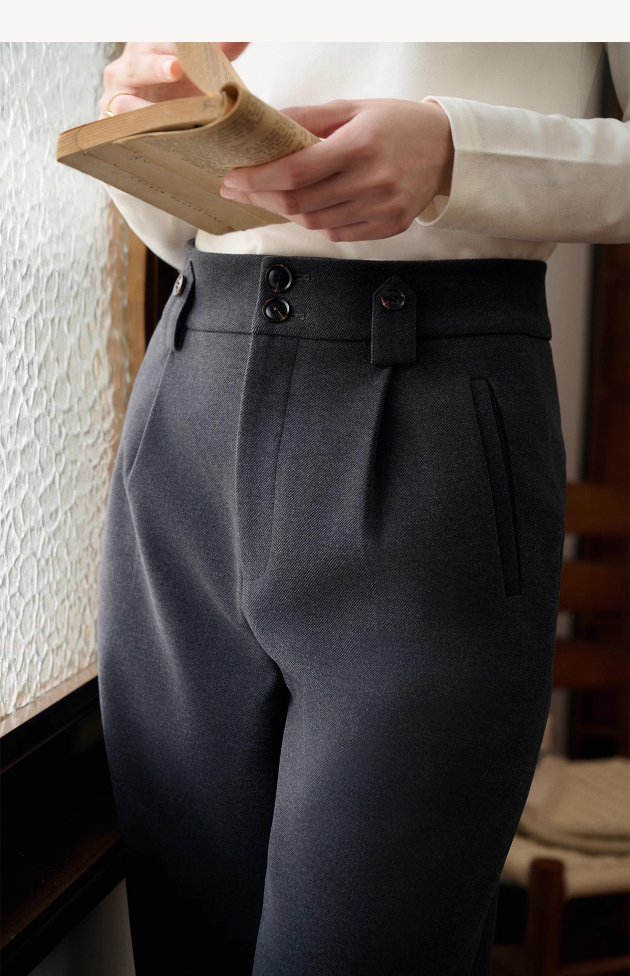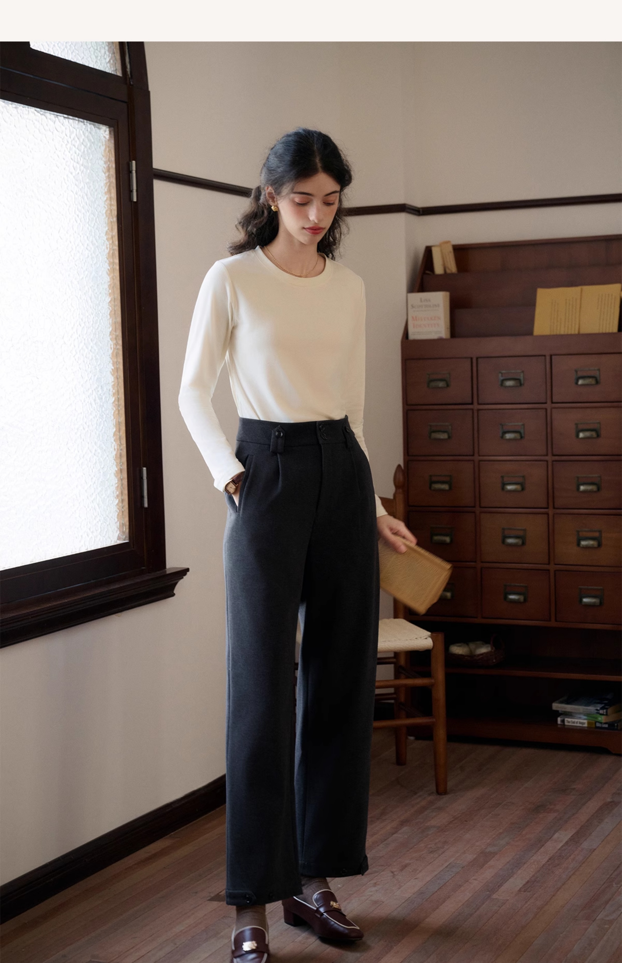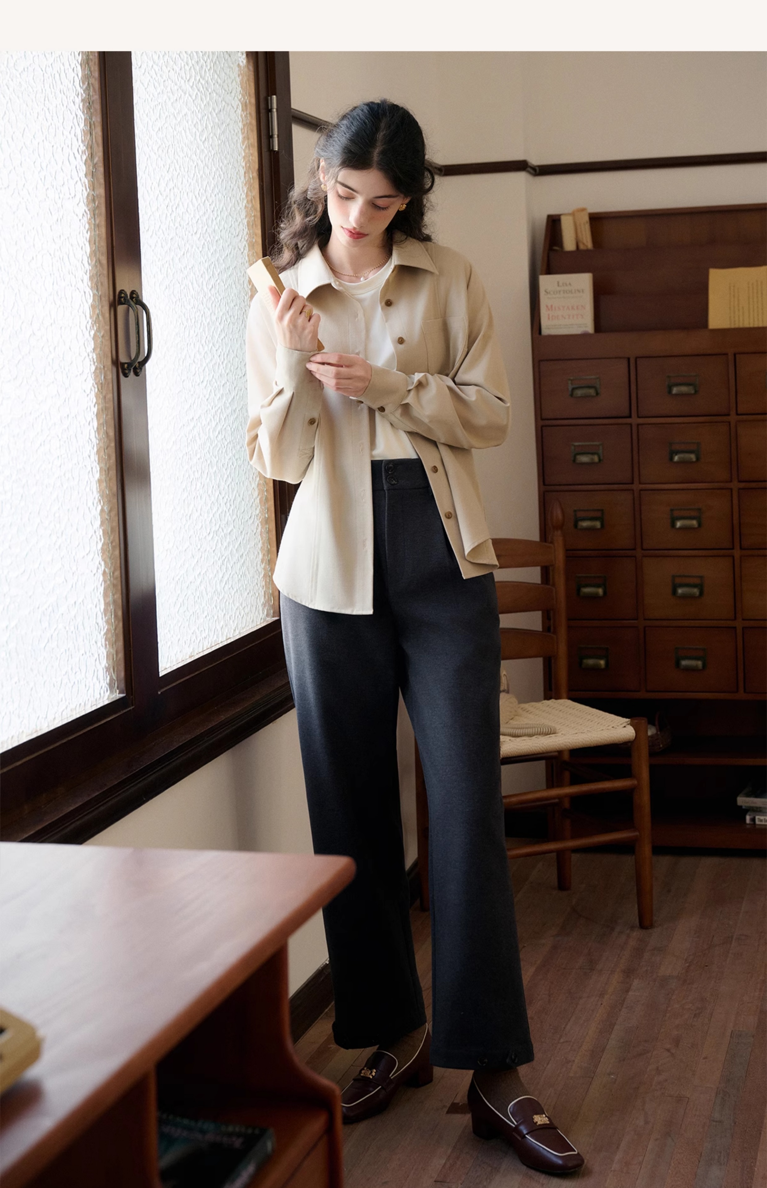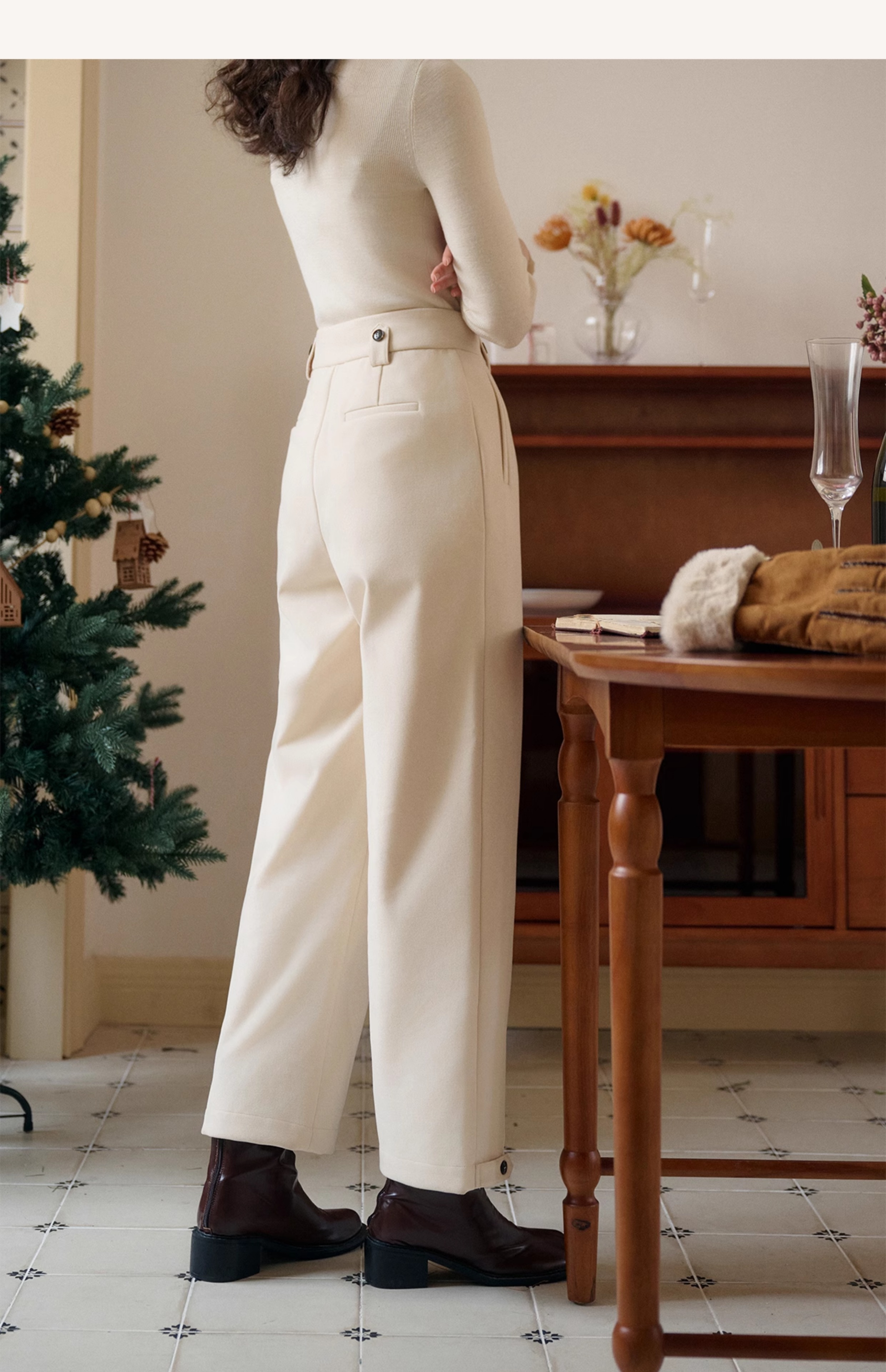 Simpleretro Classic Versatile Straight-Leg Cropped Casual Pants for Women Thick Trousers