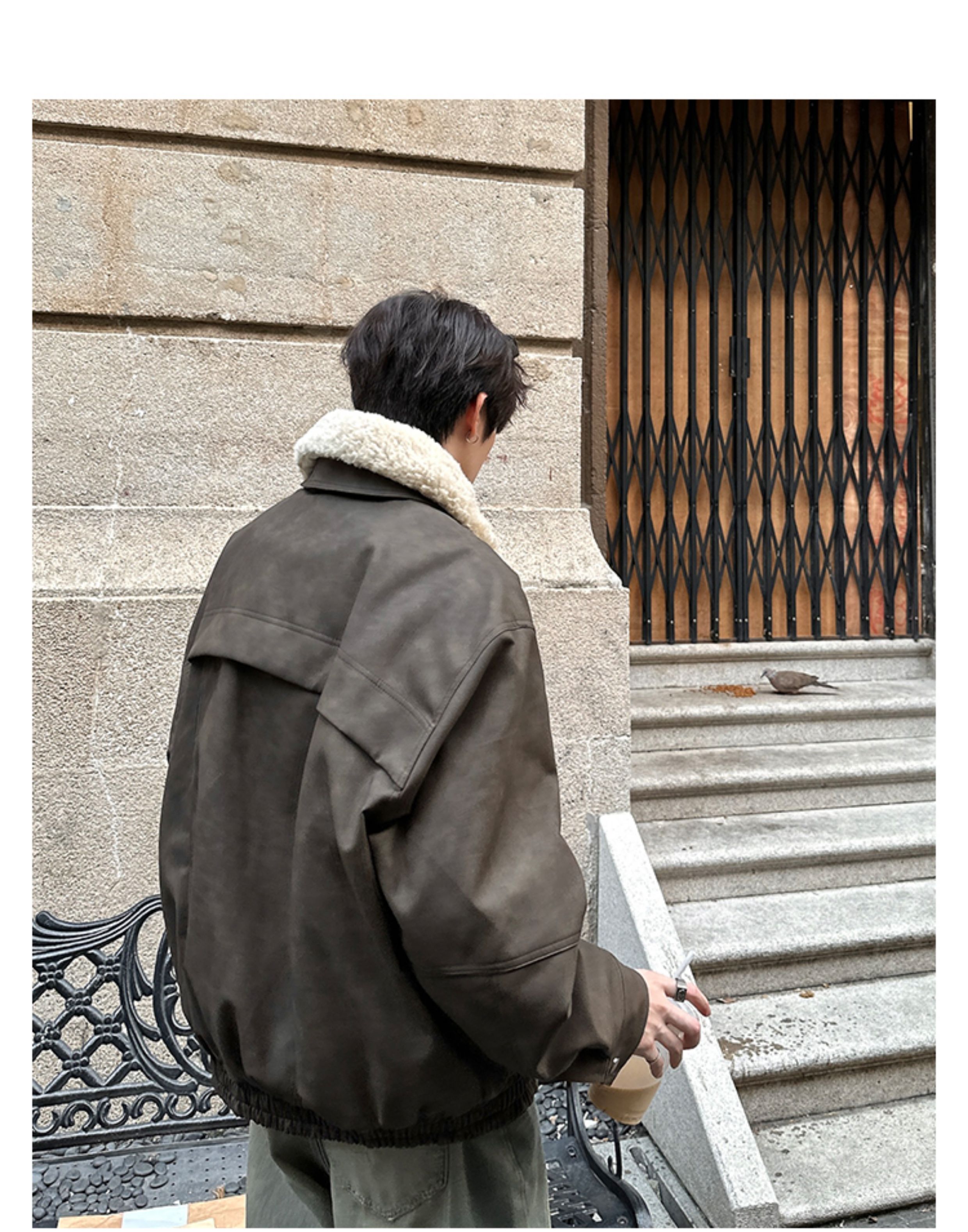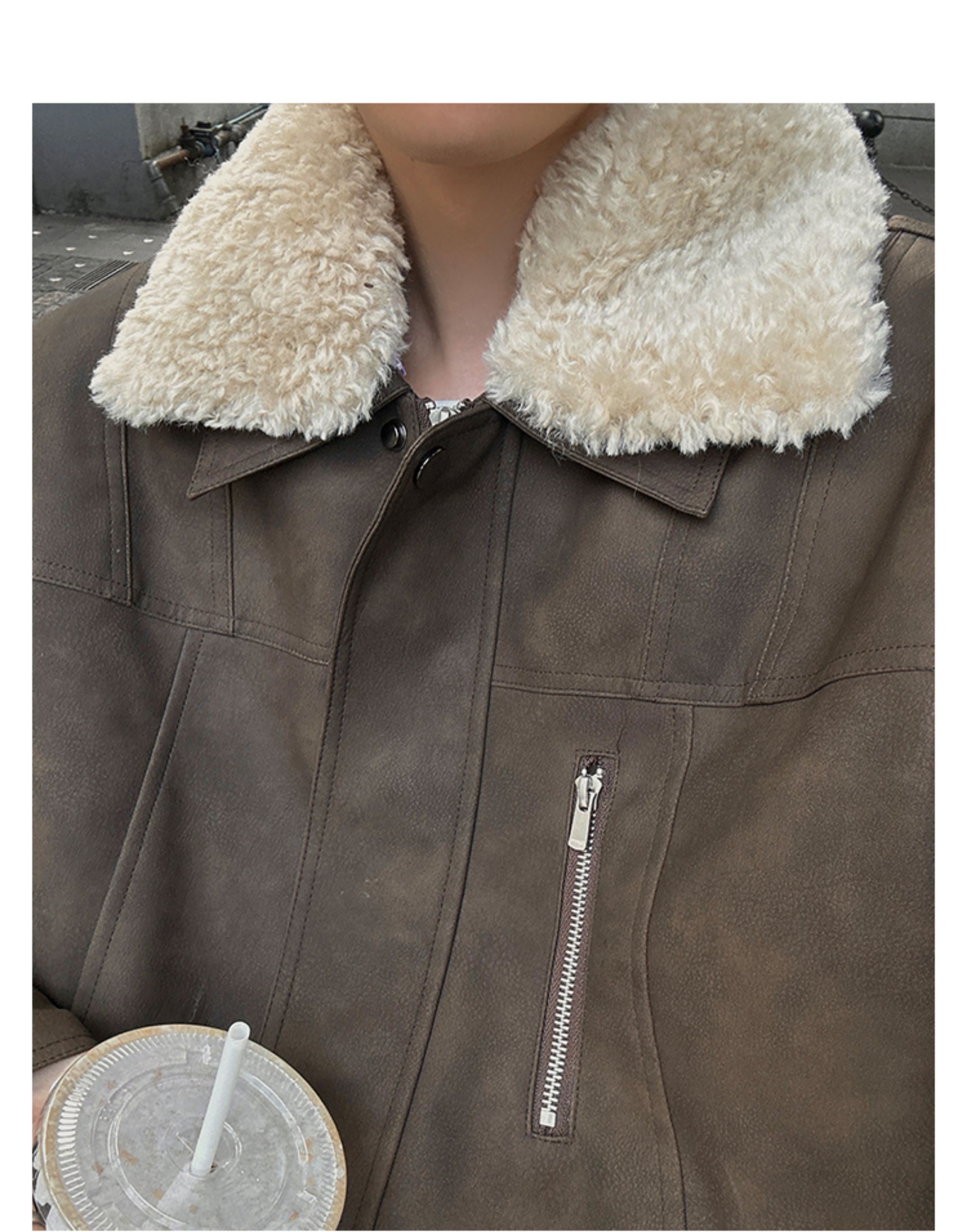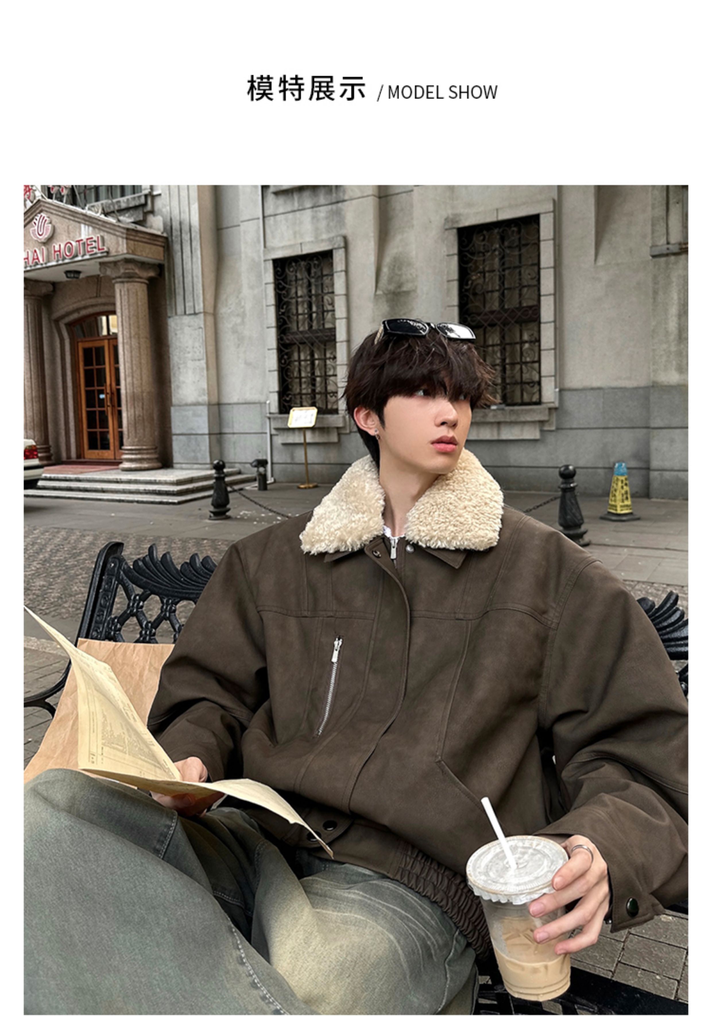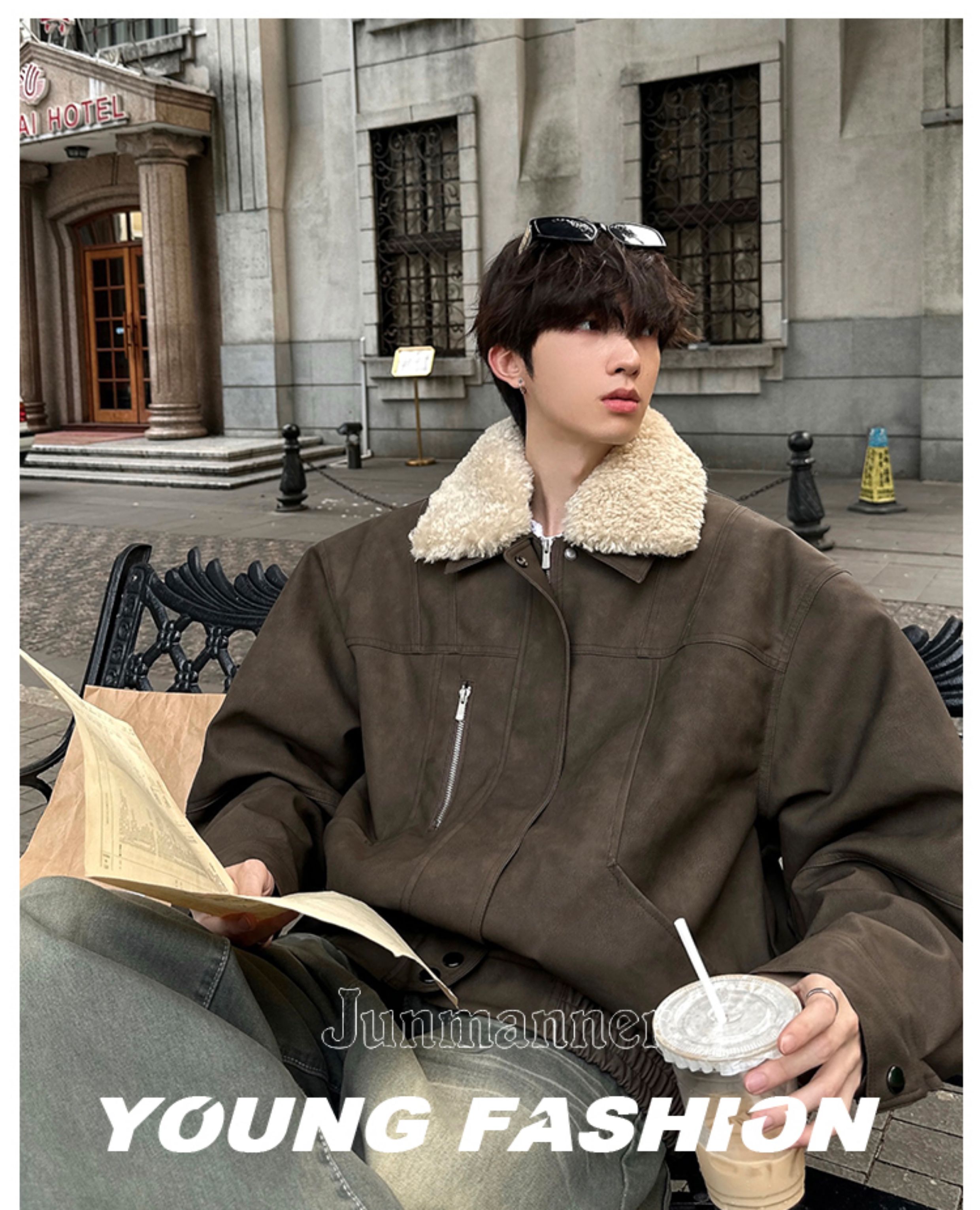 Junmanner Stand-Up Collar Loose Cotton Coat for Men Winter Warm Lamb Wool Fur Integrated Jacket Thickened Coat