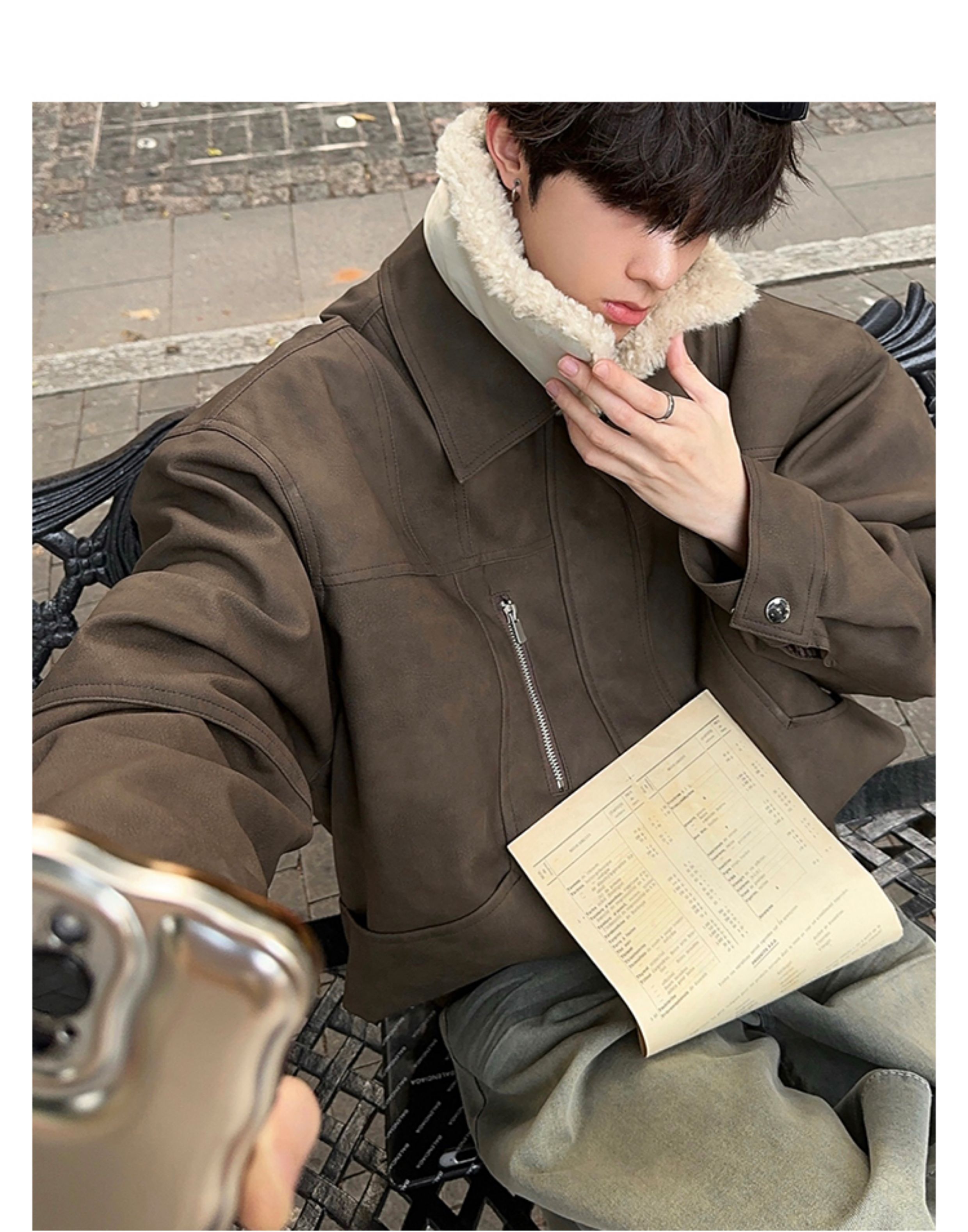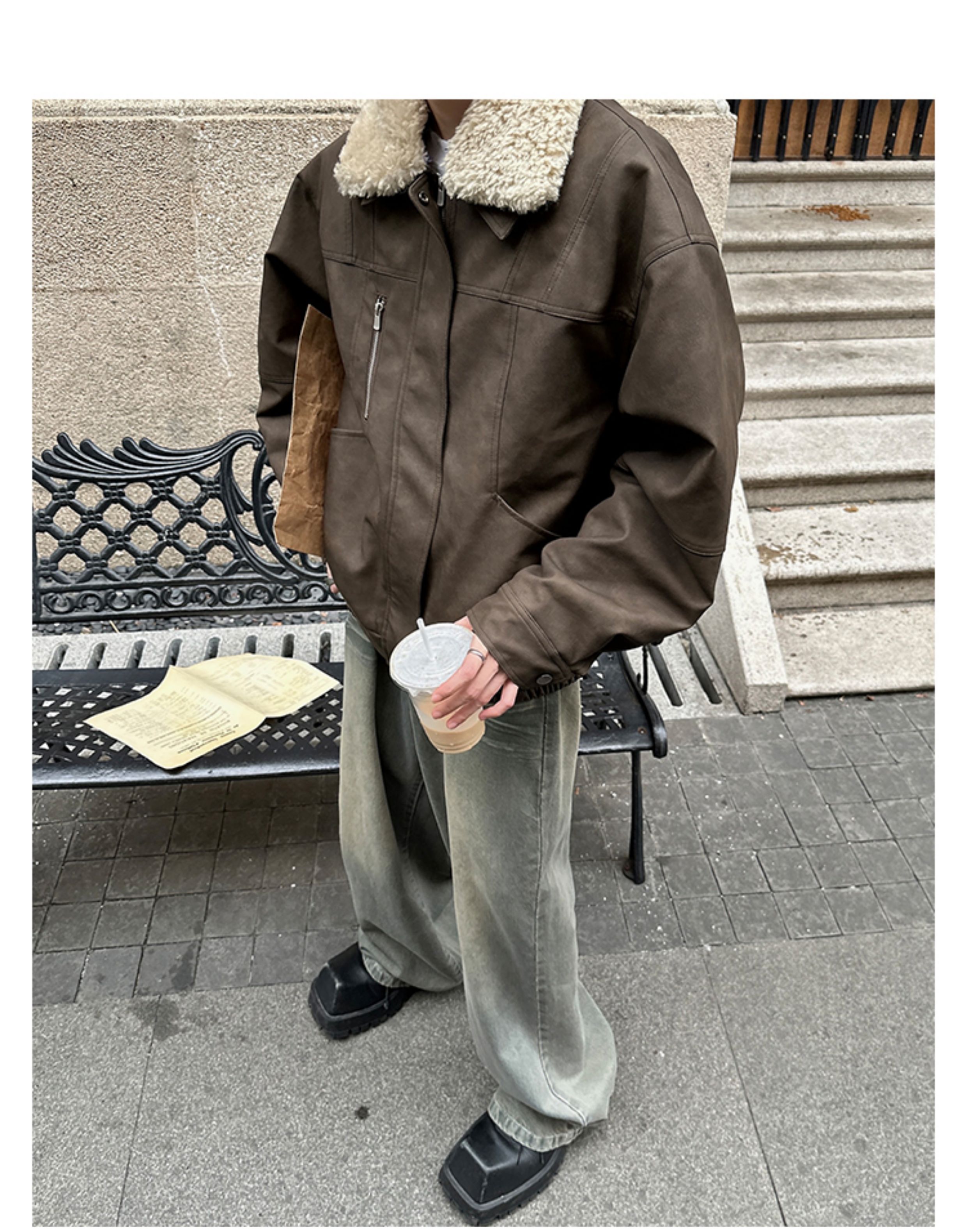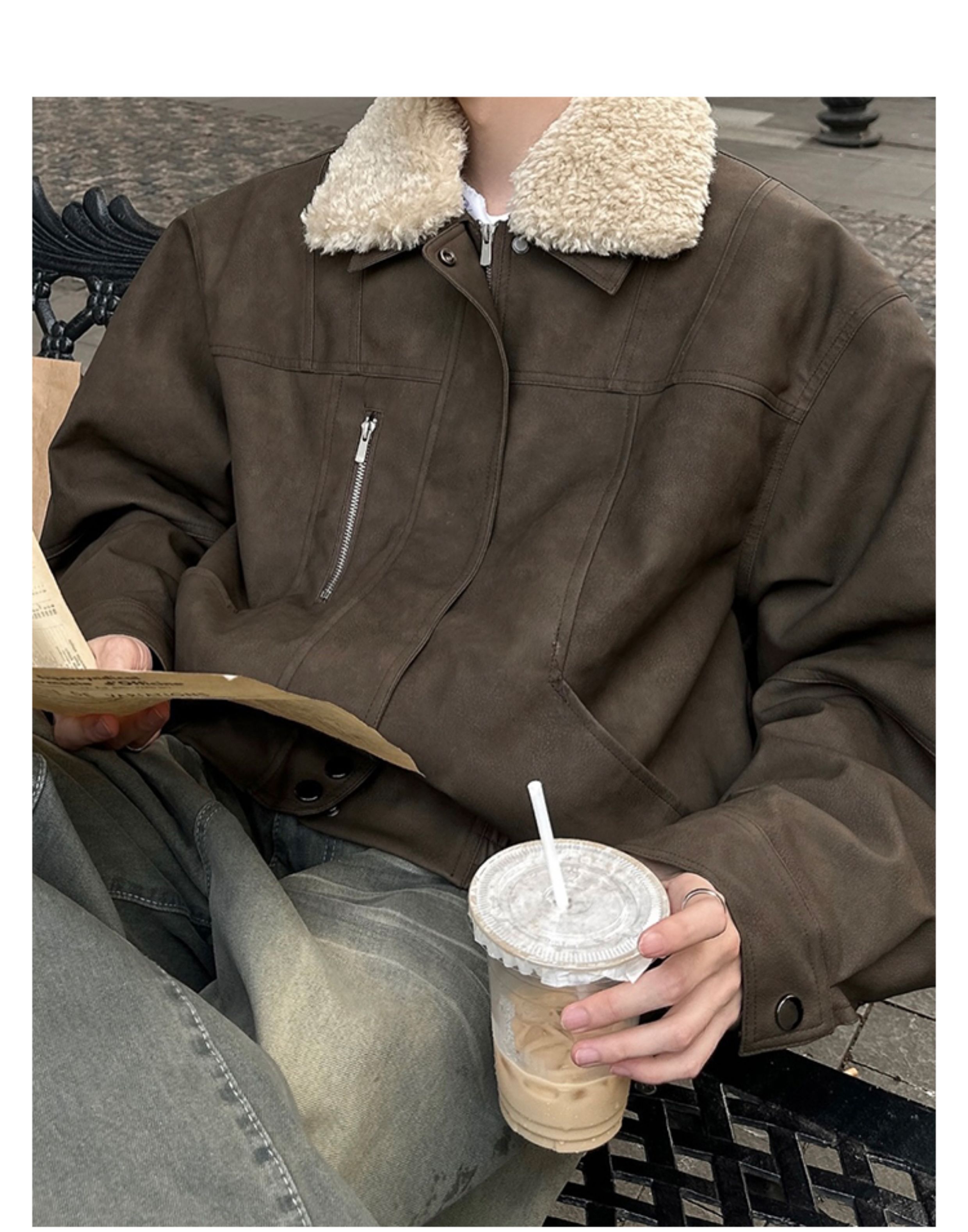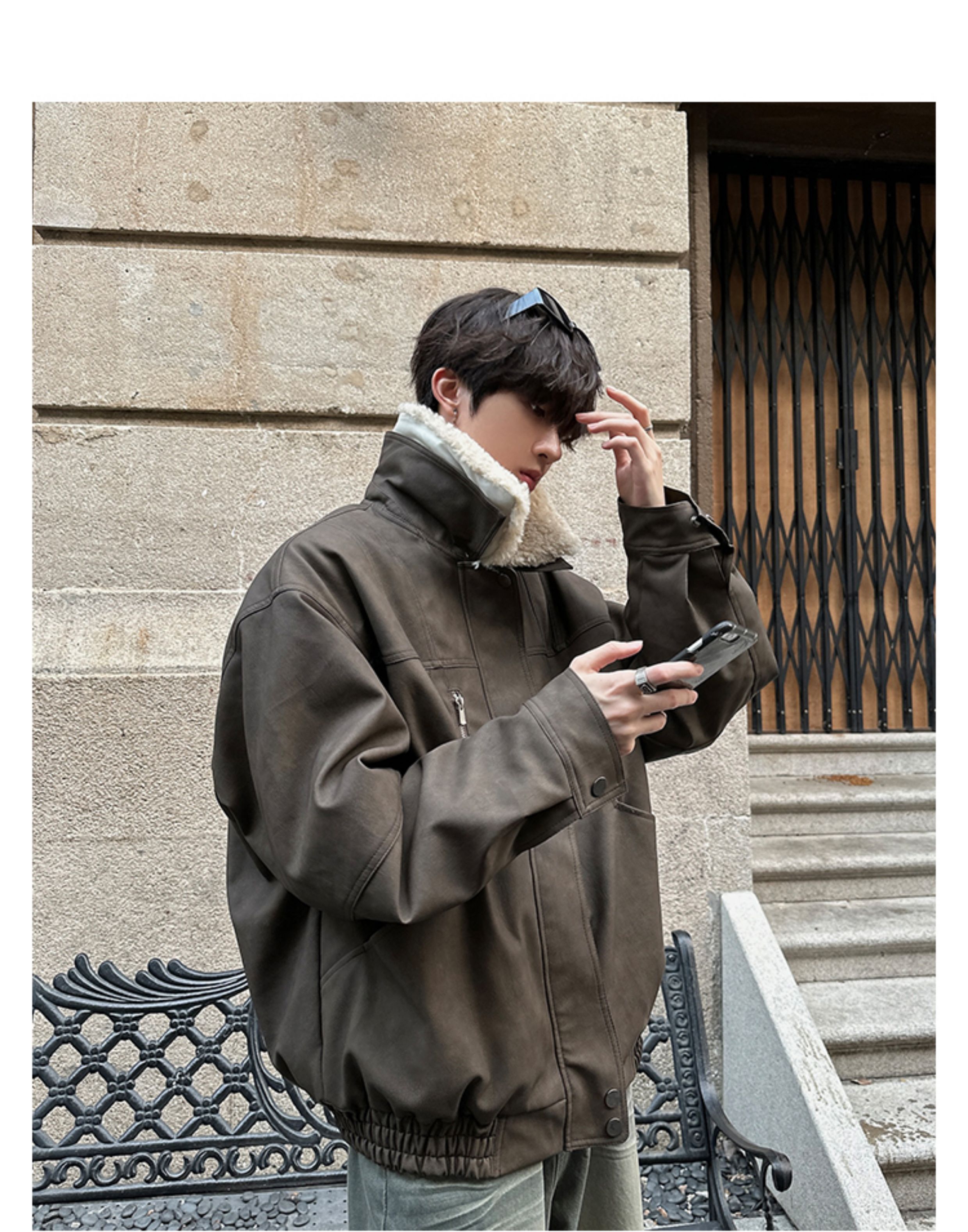 Junmanner Stand-Up Collar Loose Cotton Coat for Men Winter Warm Lamb Wool Fur Integrated Jacket Thickened Coat