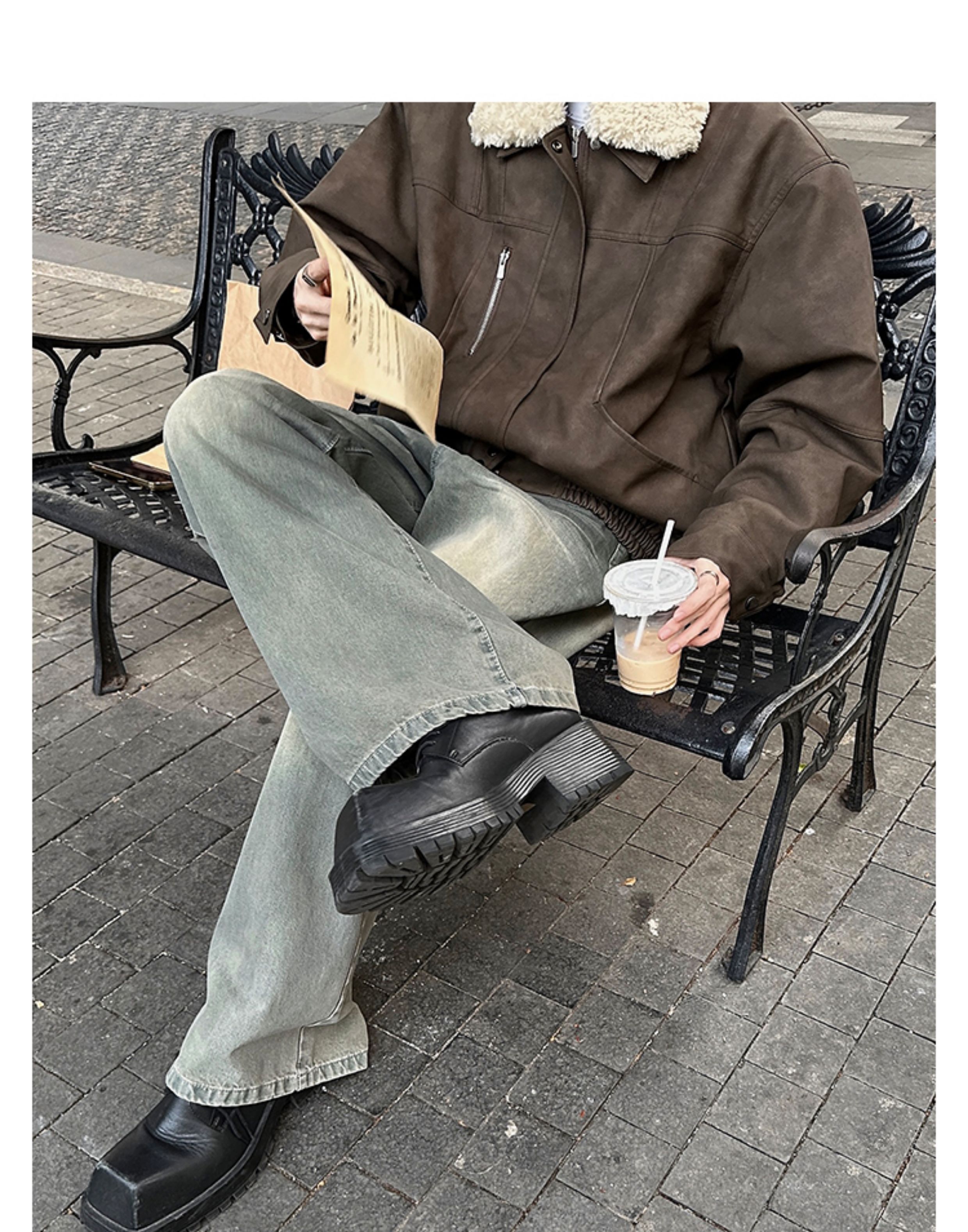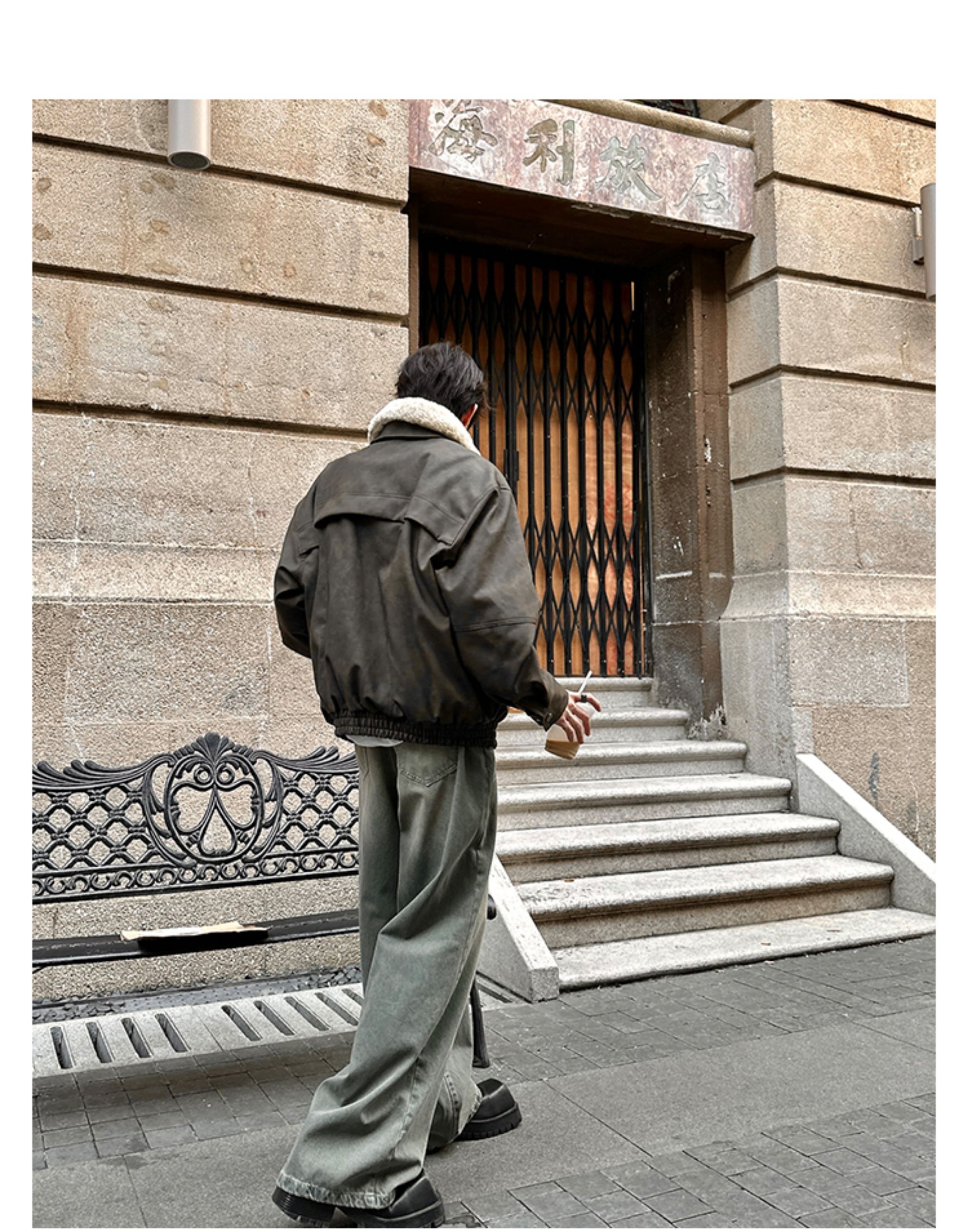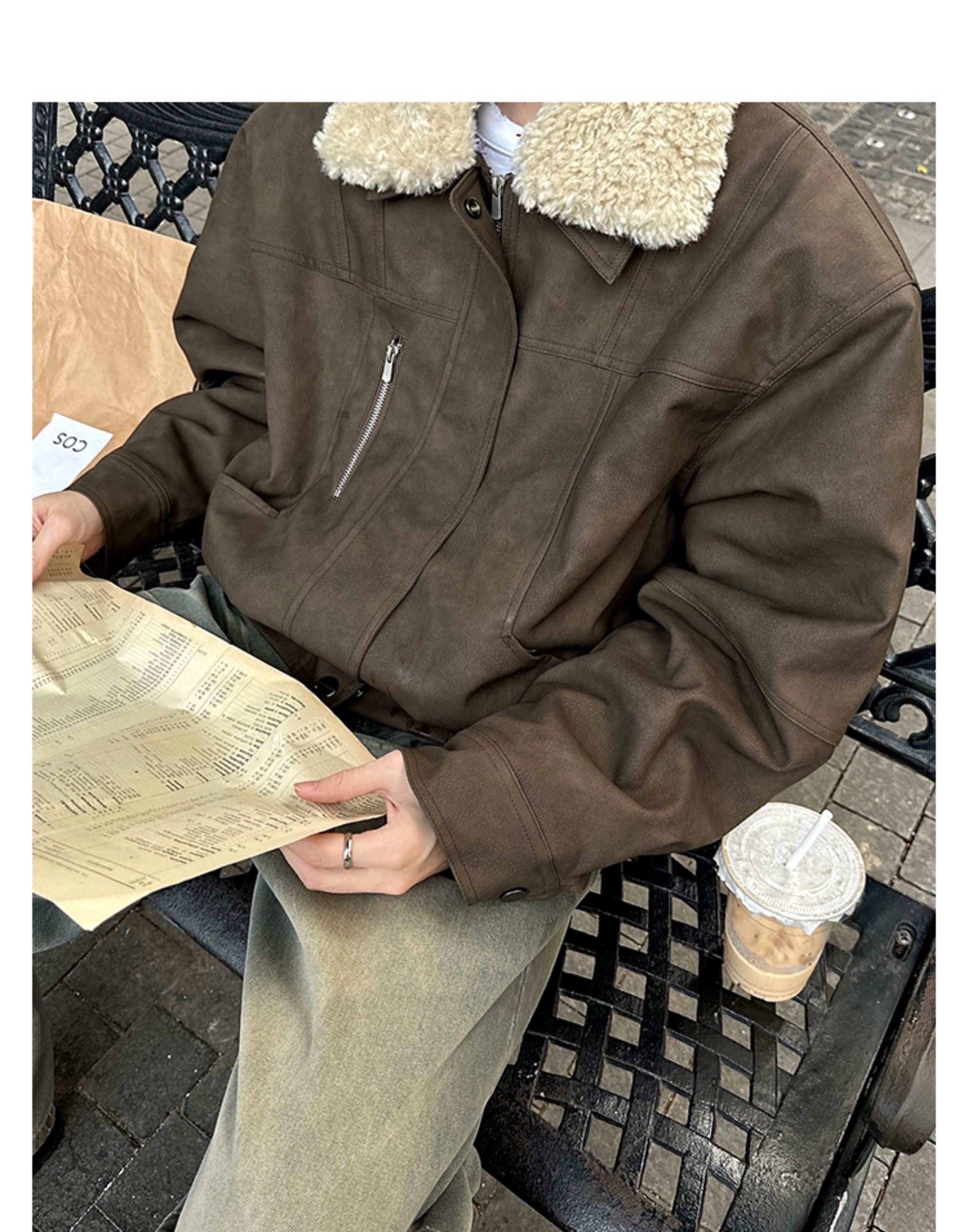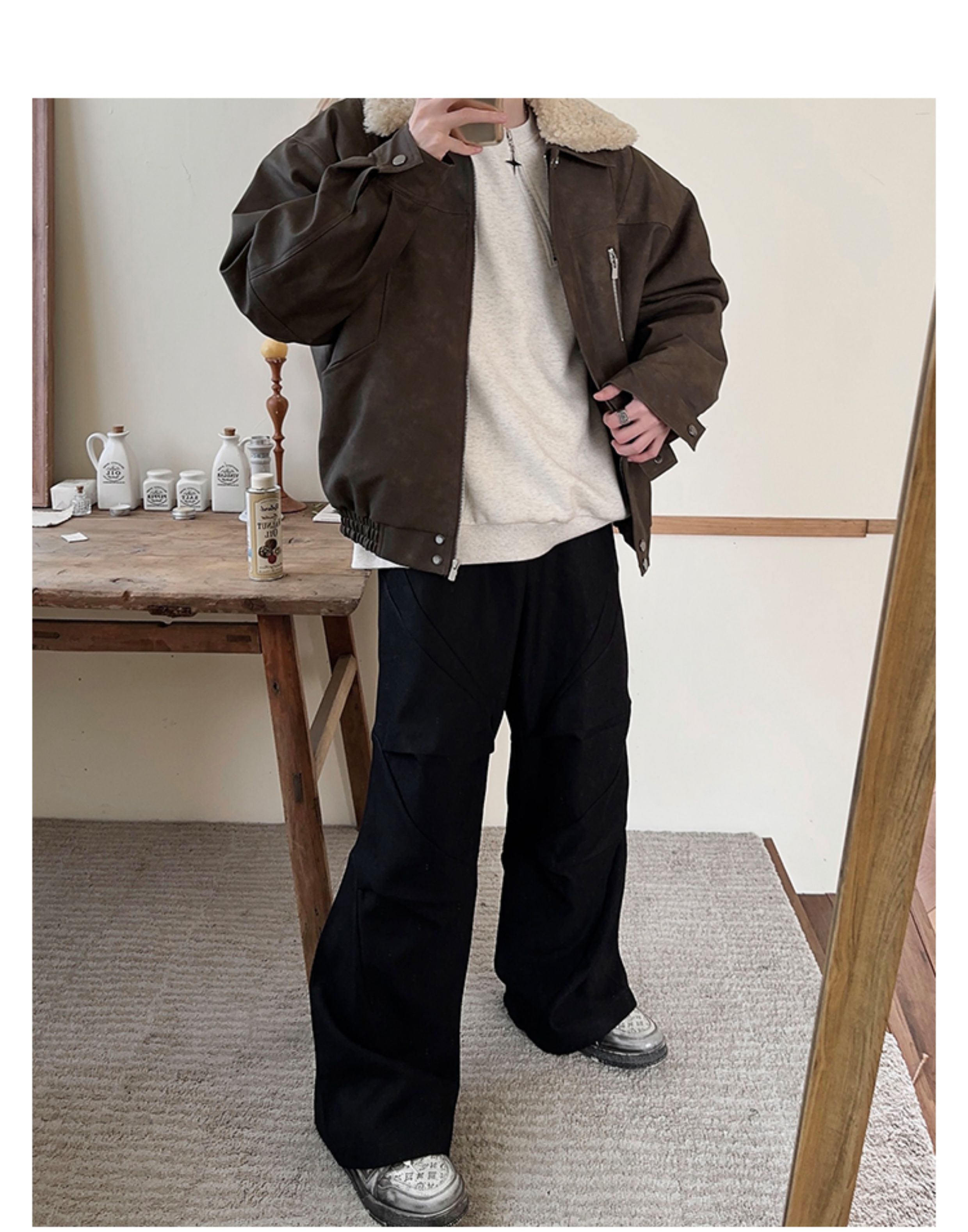 Junmanner Stand-Up Collar Loose Cotton Coat for Men Winter Warm Lamb Wool Fur Integrated Jacket Thickened Coat