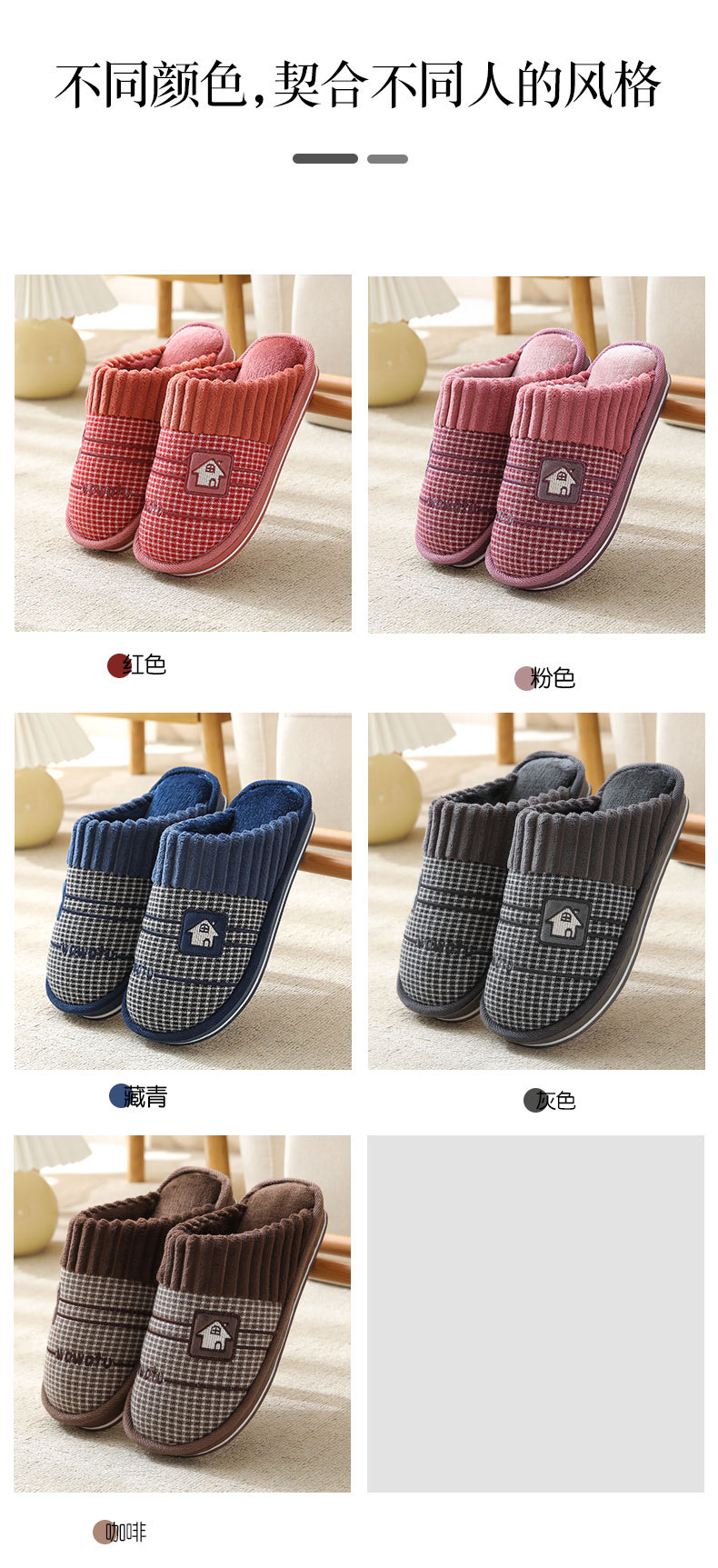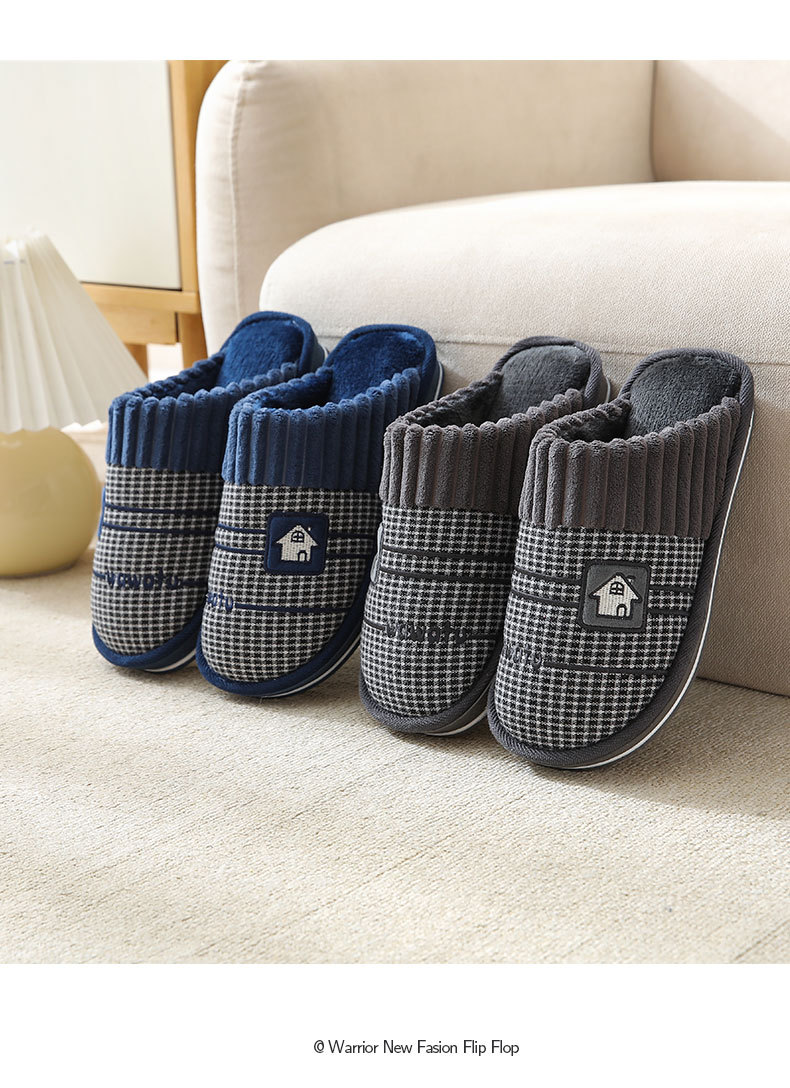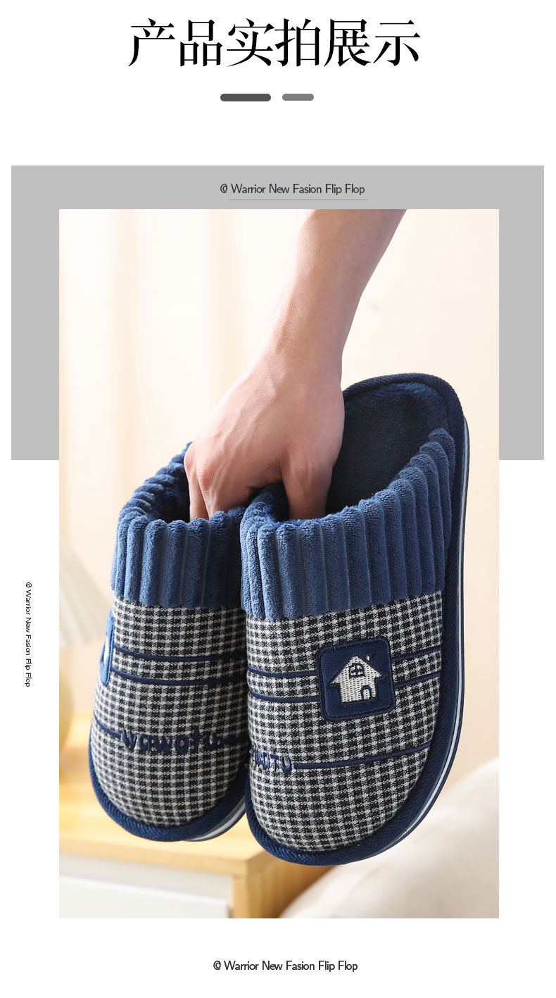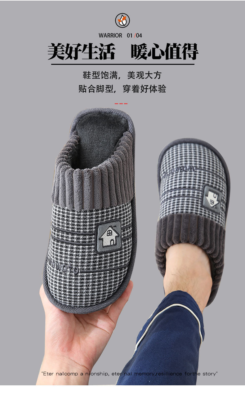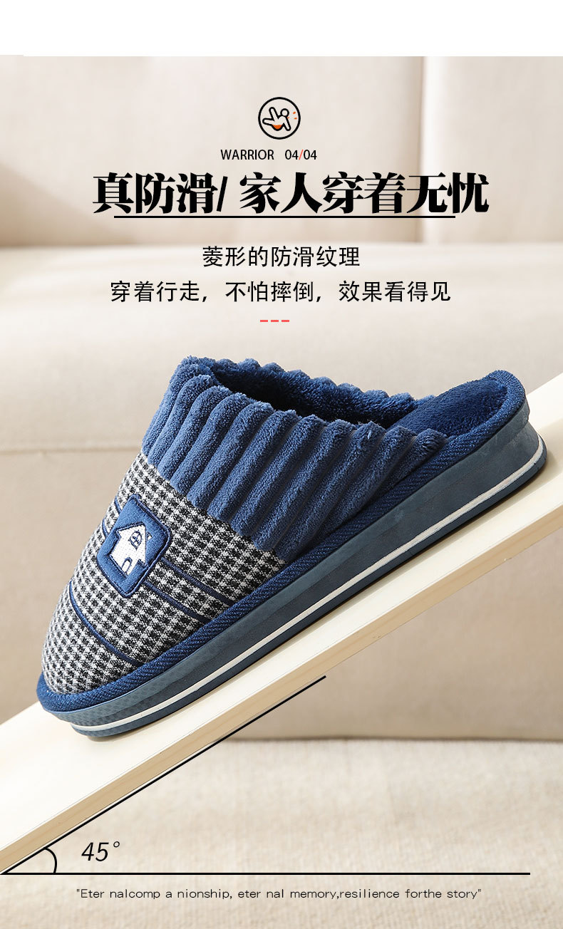 Men's Cotton Slippers for Autumn and Winter, Indoor Home Use, Fleece-Lined, Warm, Northern Home Use, Indoor Non-Slip, Large Size 4546